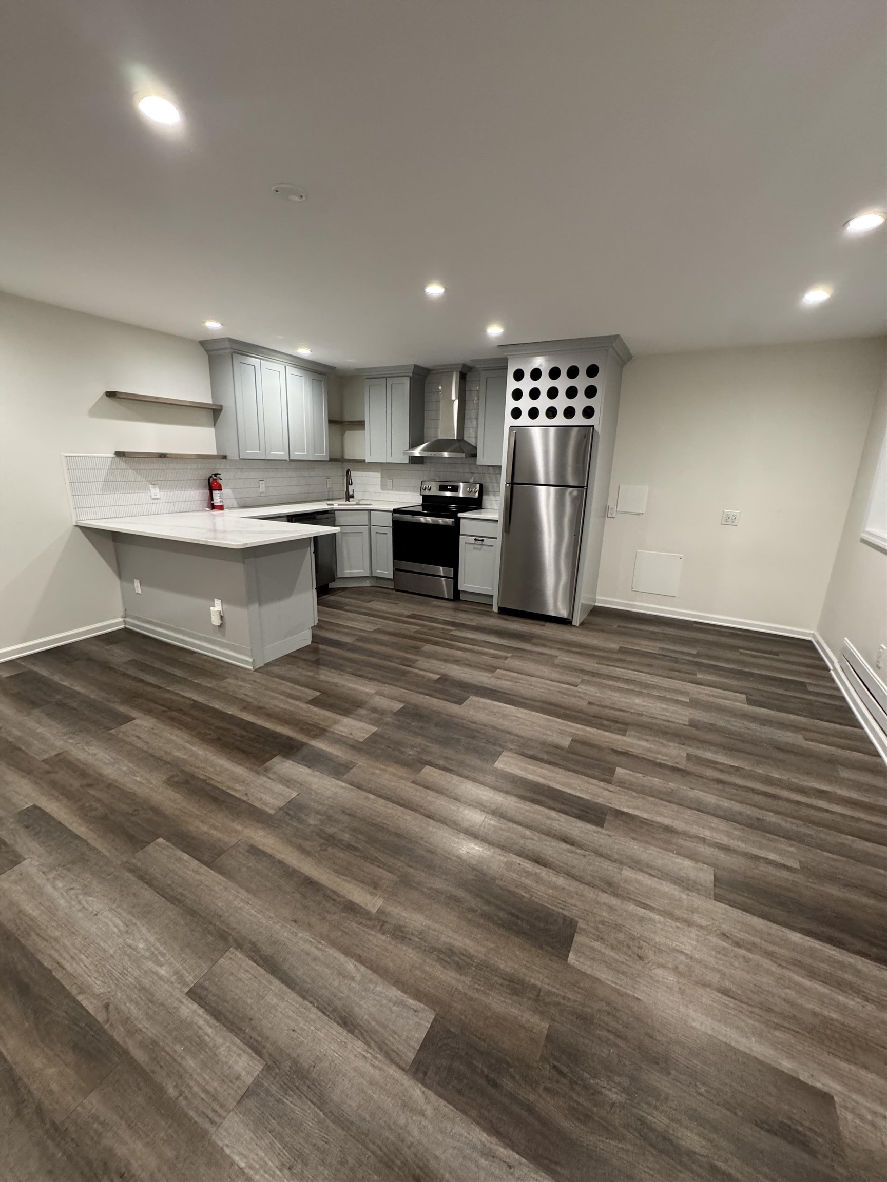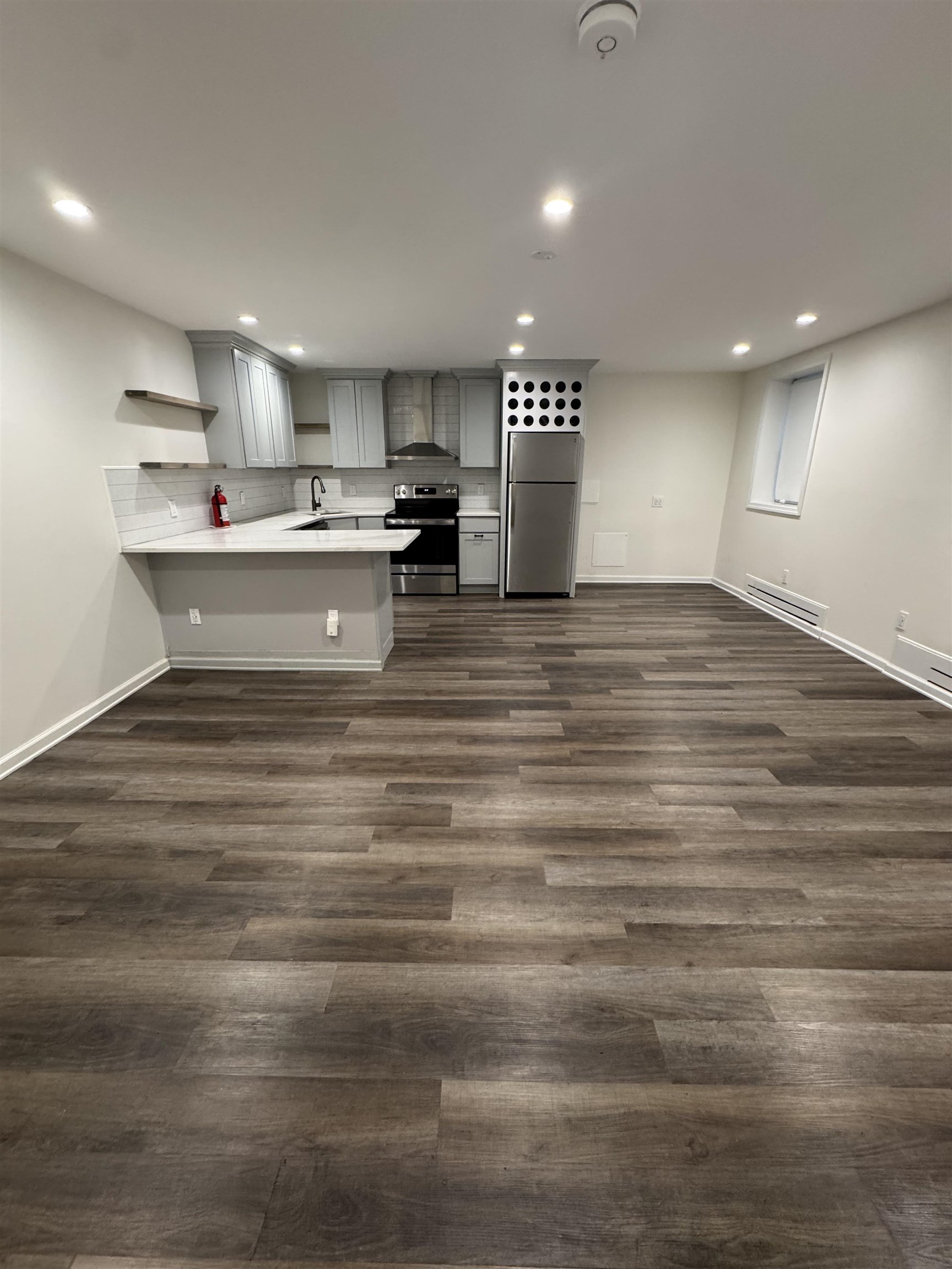 Welcome to this ground floor newly renovated, contemporary 1 bedroom unit located in vibrant Jersey City heights! Situated just across the street from the Congress St. lightrail/Hoboken elevator and around the corner from the NYC bus making your commute a dream! Featuring an open floorplan with SS appliances, built in wine rack, generous closet space w/custom cabinetry, recessed lighting and custom blinds. Laundry facilities conveniently located on the same floor. Within minutes of Riverview Fisk Park with a weekend farmer’s market & outdoor yoga, the Pershing Field Athletic Ctr. restaurants, cafes, schools and houses of worship. Pet friendly! Heat & h/w included!