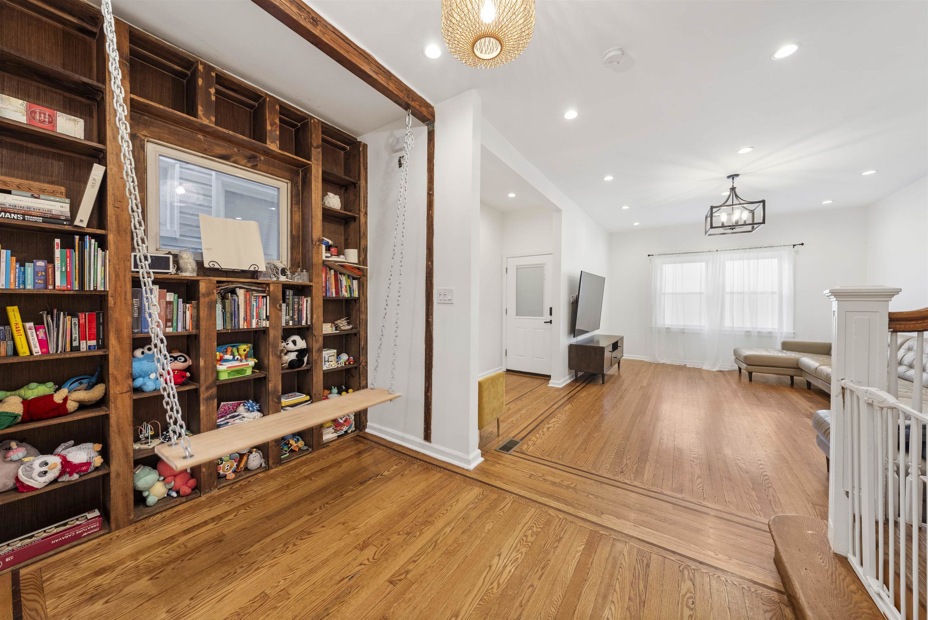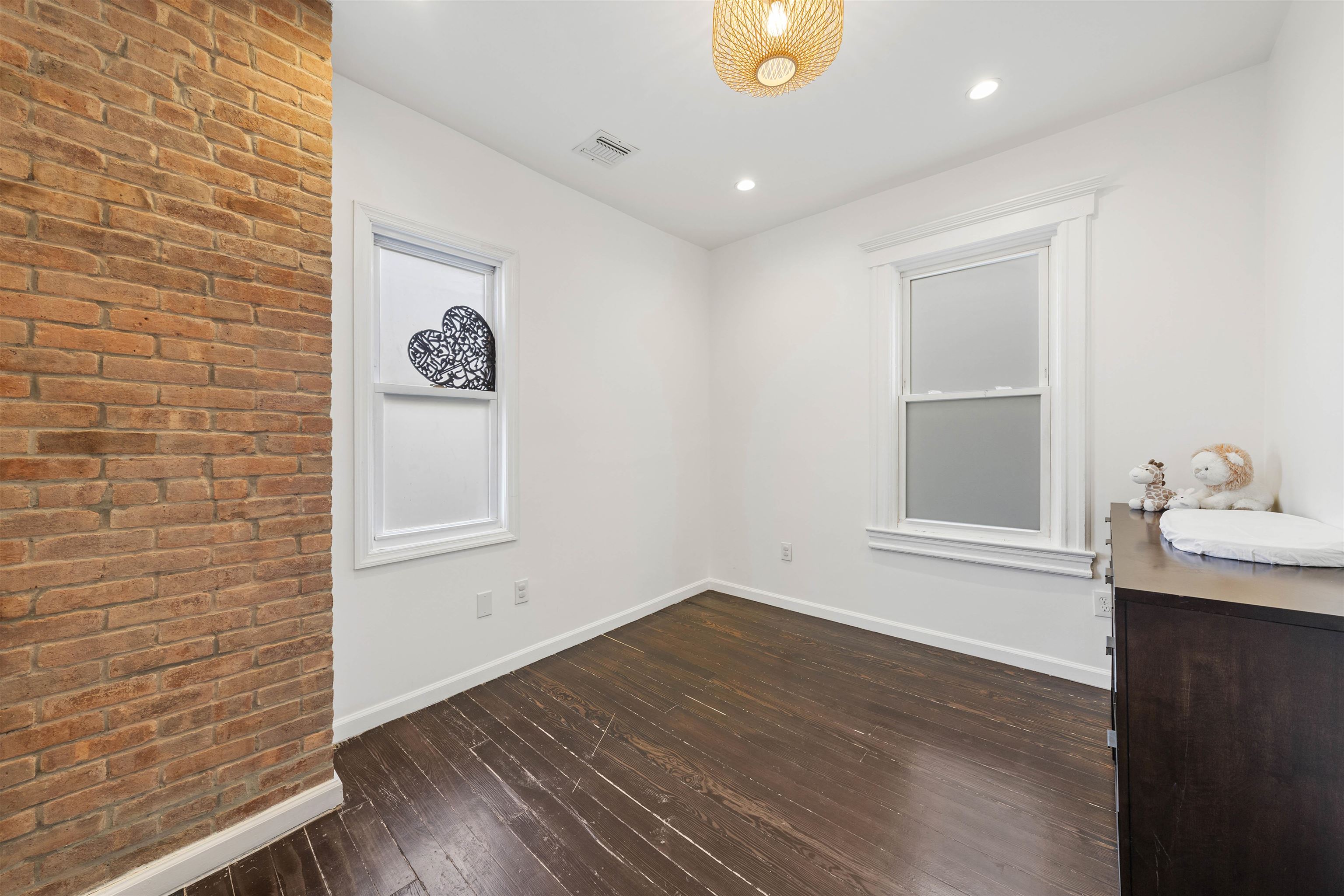 This is an exquisite and truly one of a kind One family home rental! Renovated only a few years ago. Beautiful and unique finishes all throughout. As you enter you are welcomed to an ample and very spacious living room, beautifully kept with lots of sunlight, a very bright space. Hardwood floors all throughout. Enjoy a reading area with a customed made wall library and an inside swing, that’s right! Another unique feature adding a special touch to this part of the home. Modern Dining room, fantastic for family gatherings with exposed brick adding a rustic touch to this room. Gourmet Kitchen fully equipped with granite countertops with an elegant style. For convenience you will find one bedroom with its private full bath on the main level. 2nd level offers 3 bedrooms including the primary bedroom, lots of space and a full bath. Private backyard use and 1 car parking, private driveway. This modern and stylish rental is a commuters dream! About a mile away from the Journal Sq Path station and bus stops around the block to different towns providing an easy commute to NYC and other parts of NJ. Minutes away from great selections of vibrant restaurants and cafes. Close to parks, schools and so much more! All Utilities are included. Don’t miss this opportunity and book your appointment today!!
