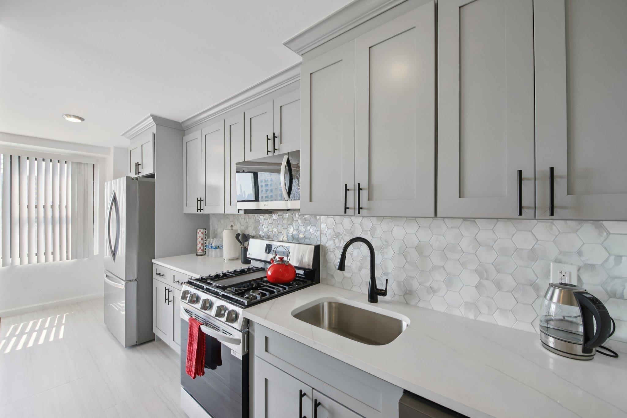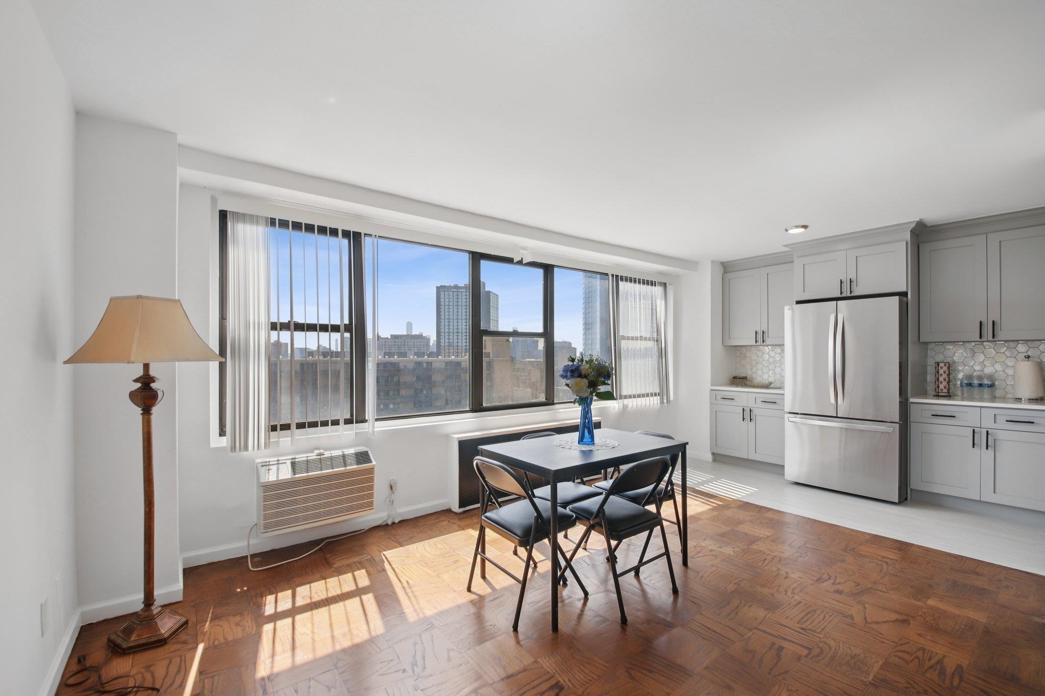 This beautifully renovated 2-bedroom condo in the prestigious St. John’s Condominiums offers a sun-filled corner unit on the 11th floor with stunning views of Jersey City and NYC. It features restored real hardwood floors throughout, a completely overhauled bathroom with all new tiling, a remodeled kitchen with new appliances, cabinets, and fixtures, and spacious bedrooms with ample closet space, blending charm with practicality. The building provides excellent amenities including 24/7 security, doorman, pool, gym, meditation garden, laundry, and gated assigned parking (1 space for a low monthly fee). Includes heat, hot water, and cooking gas. Located in Journal Square, it’s close to shopping, restaurants, schools, transit stops, and just four blocks from the PATH and train stations, making it an ideal urban retreat! Call today!