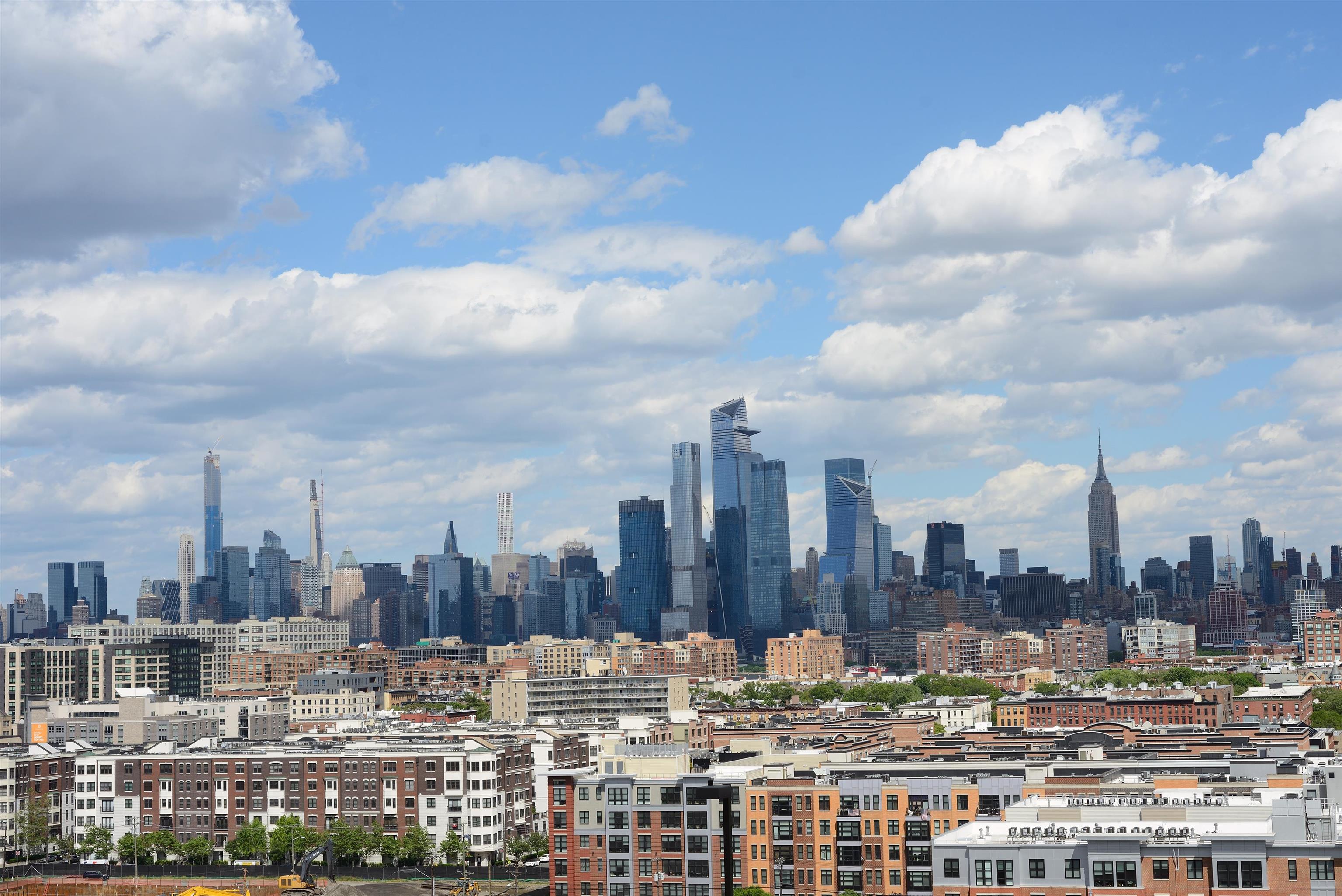 Towering over Hoboken , this 2 bedroom, 2 full bath CORNER residence with it stunning NYC Skyline views from you private balcony, is a dream space. HOA/Maintenance includes: TAXES, Electric, AC/Heat, hot/cold water and common exp. This home offers polished hardwood floors, solid wood entry and closet doors, large open living space, tons of closet space, private balcony and sharp details. The extra wide kitchen offers a bold subway tile backsplash, smooth quartz counter top, shaker cabinets with polished hardware and stainless steel appliances. The primary bedroom offers double sized closet and en-suite bathroom with a floating vanity and sliding glass door walk-in shower. The second bedroom offers a large closet and western sunset views. The guest bathroom is smartly designed offering a porcelain sink, modern fixtures and a glass privacy panel doorless shower, also wheelchair accessible. Combined with brilliant views, this full-service building includes terrific amenities and a coveted location, just minutes to NYC via transportation or a few blocks to Hoboken. Benefit from 24-hour concierge service, outdoor pool, residents lounge, gym, dry cleaner, deli, ON SITE DAYCARE CENTER and on-site parking for $160p/m. Virtually staged.
