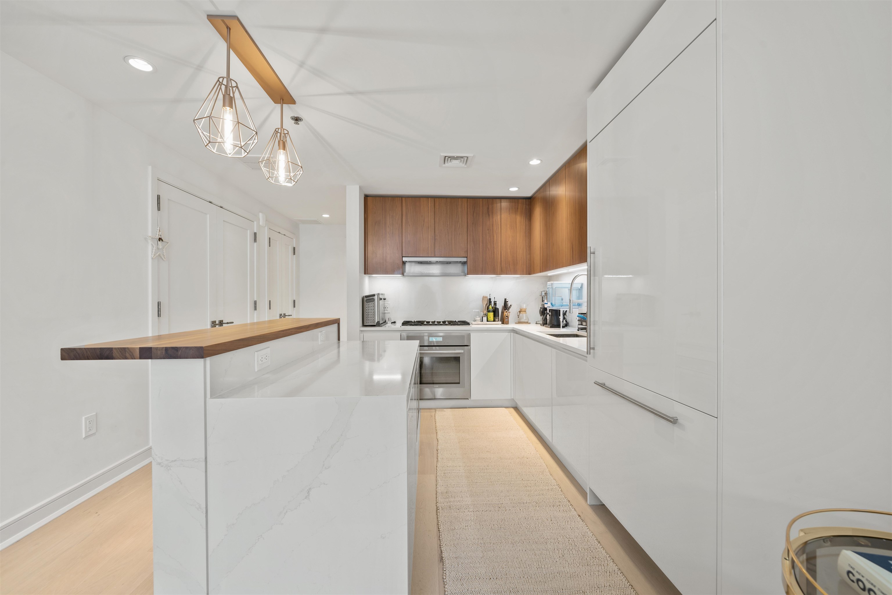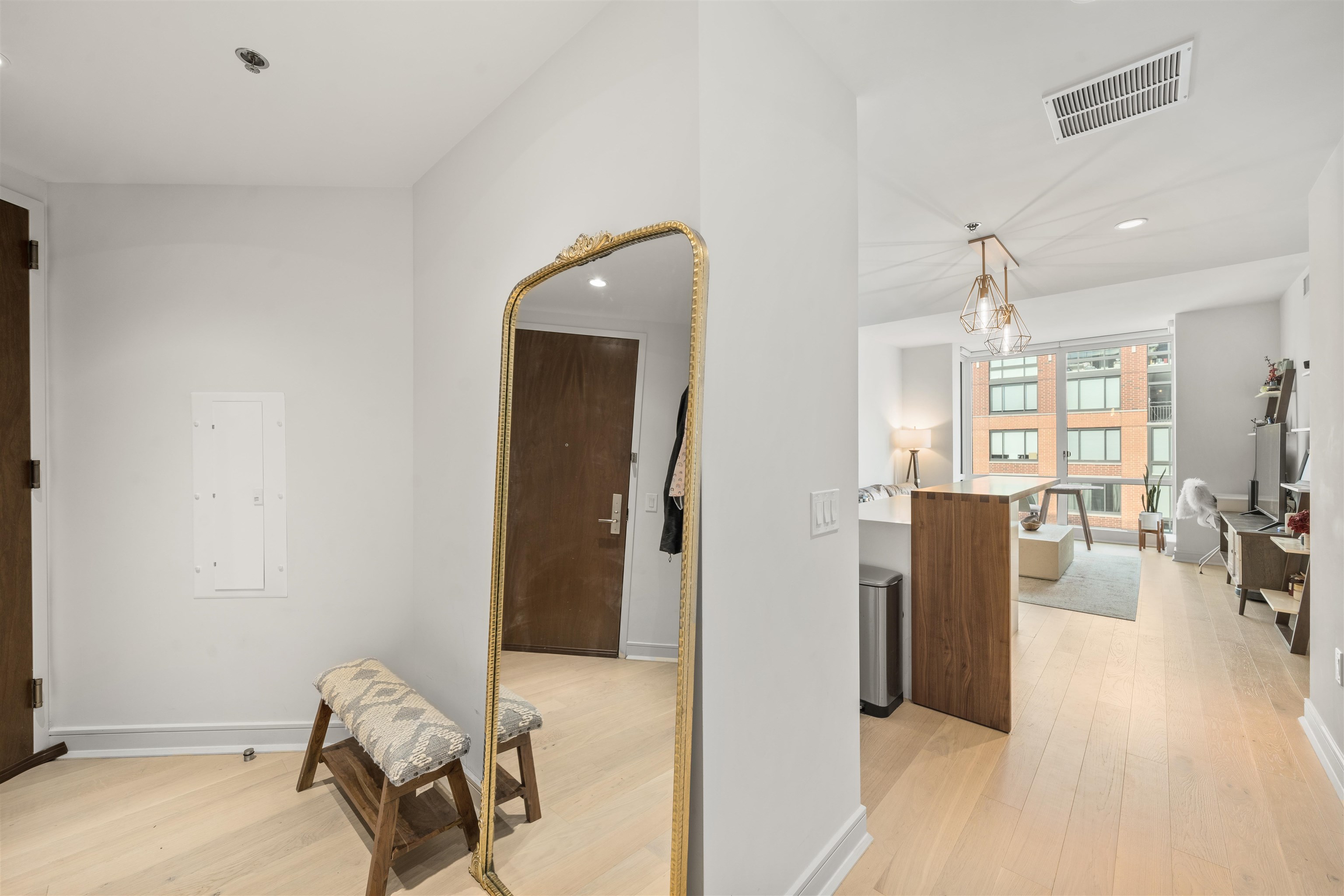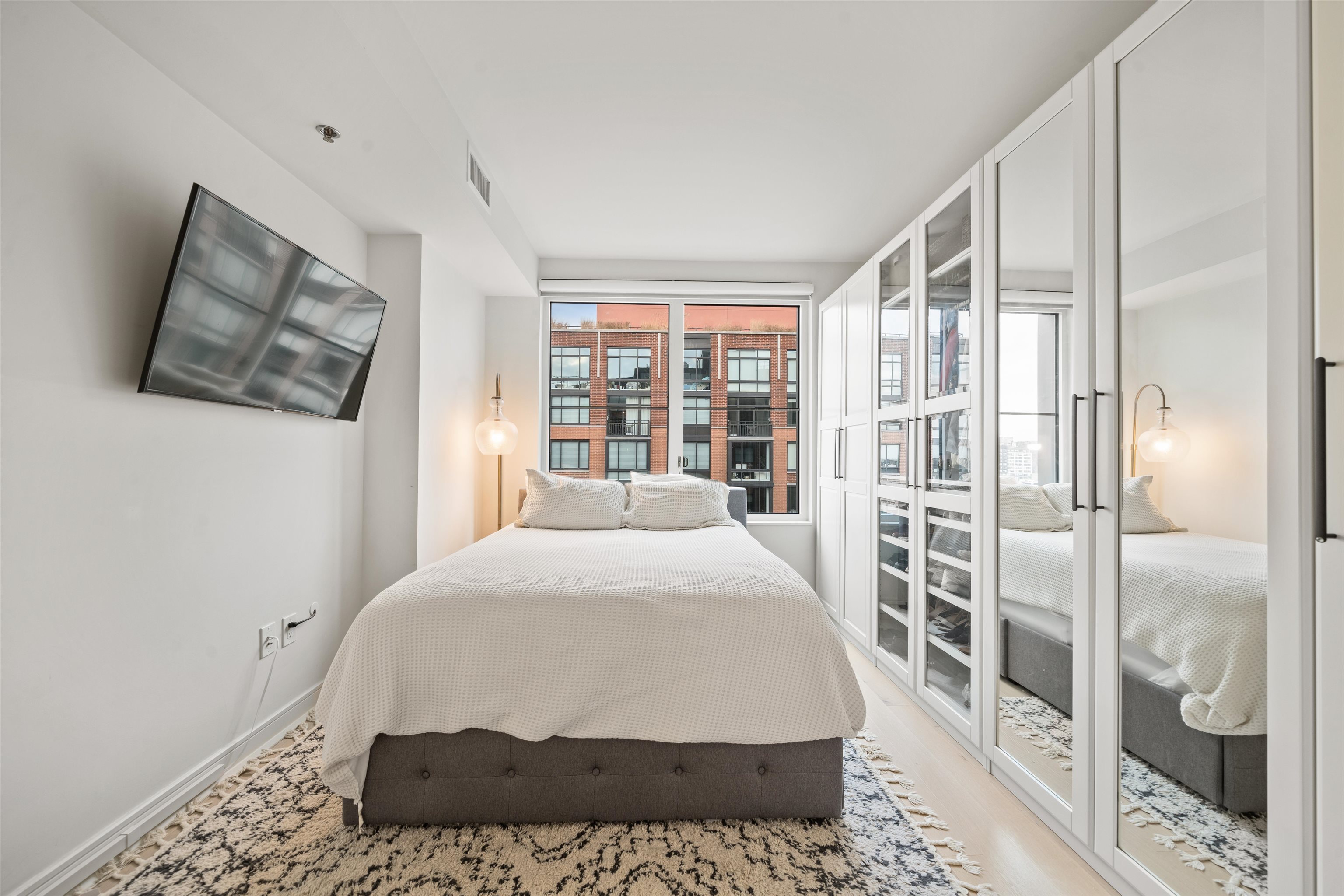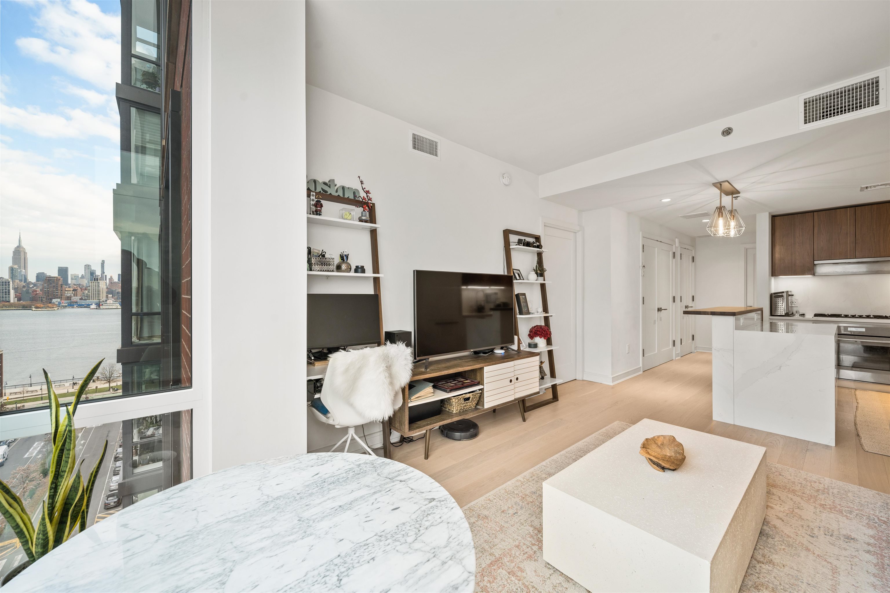 Stunning 1 bed, 1.5 bath home in 1000 Maxwell, Toll Brothers’ newest Gold Coast building. Northwest sunset views and partial east NYC/river views provide the open floor plan with sun all day long. The chef’s kitchen includes stainless steel Thermador and Bosch appliances, a breakfast island, quartz countertops and walnut cabinetry custom crafted by Scavolini. The spacious bedroom has custom built-in cabinets, a walk-in closet, and spa-like ensuite bath with matching walnut vanity. The home also features a half bath for guests, 5″ white oak flooring, central AC, and an in-unit washer/dryer. The community’s luxury amenities include 24/7 concierge and security, a gym, pool, playroom, rooftop deck with BBQ grills, community room, workspace and shuttle service to and from the Path. This boutique building of just 58 homes is conveniently located near the NYC Ferry, bus stop, shops, restaurants, and everything that uptown Hoboken has to offer. Move in ASAP.