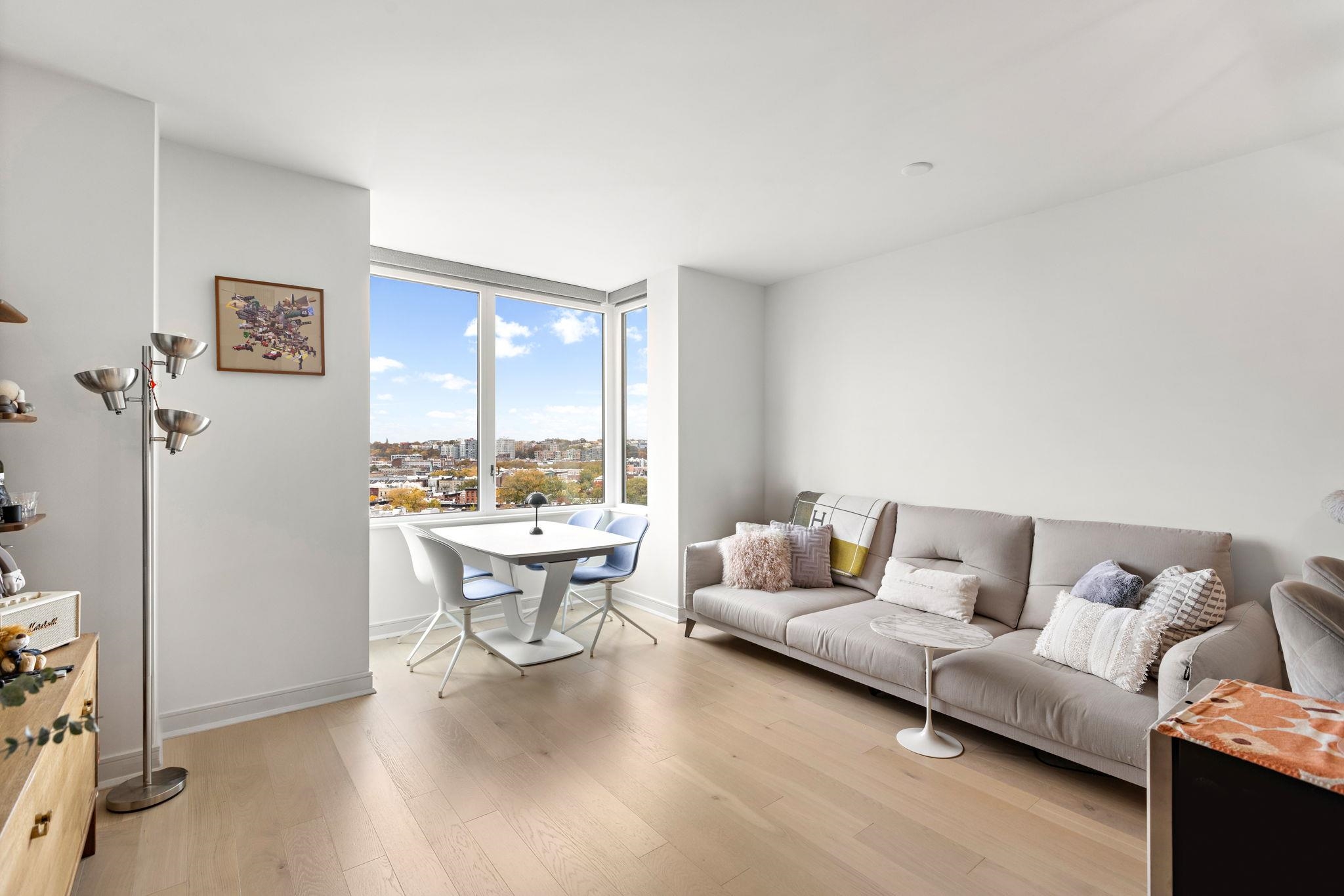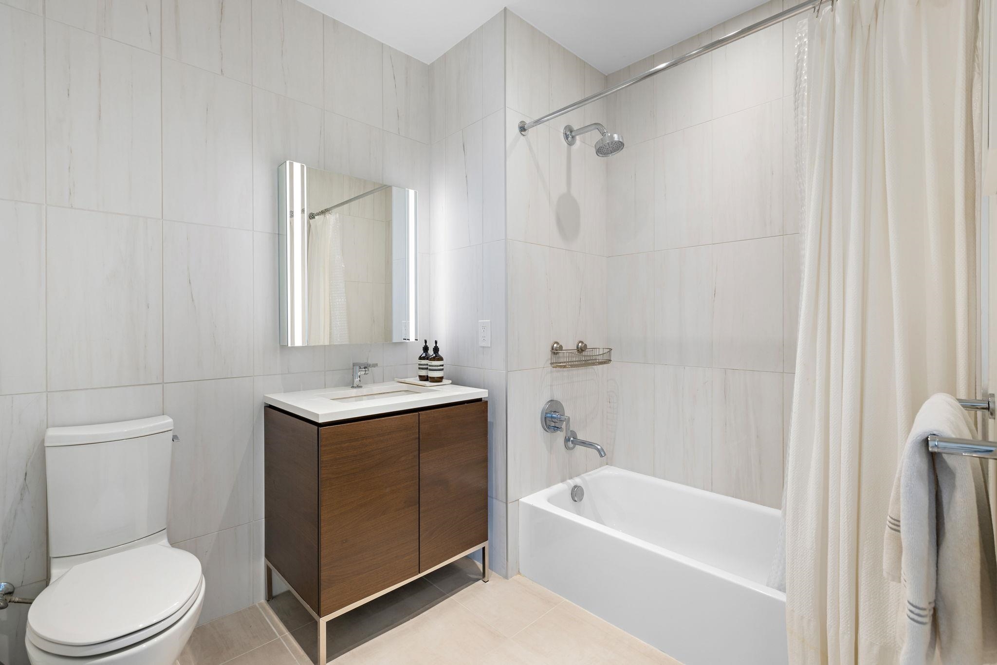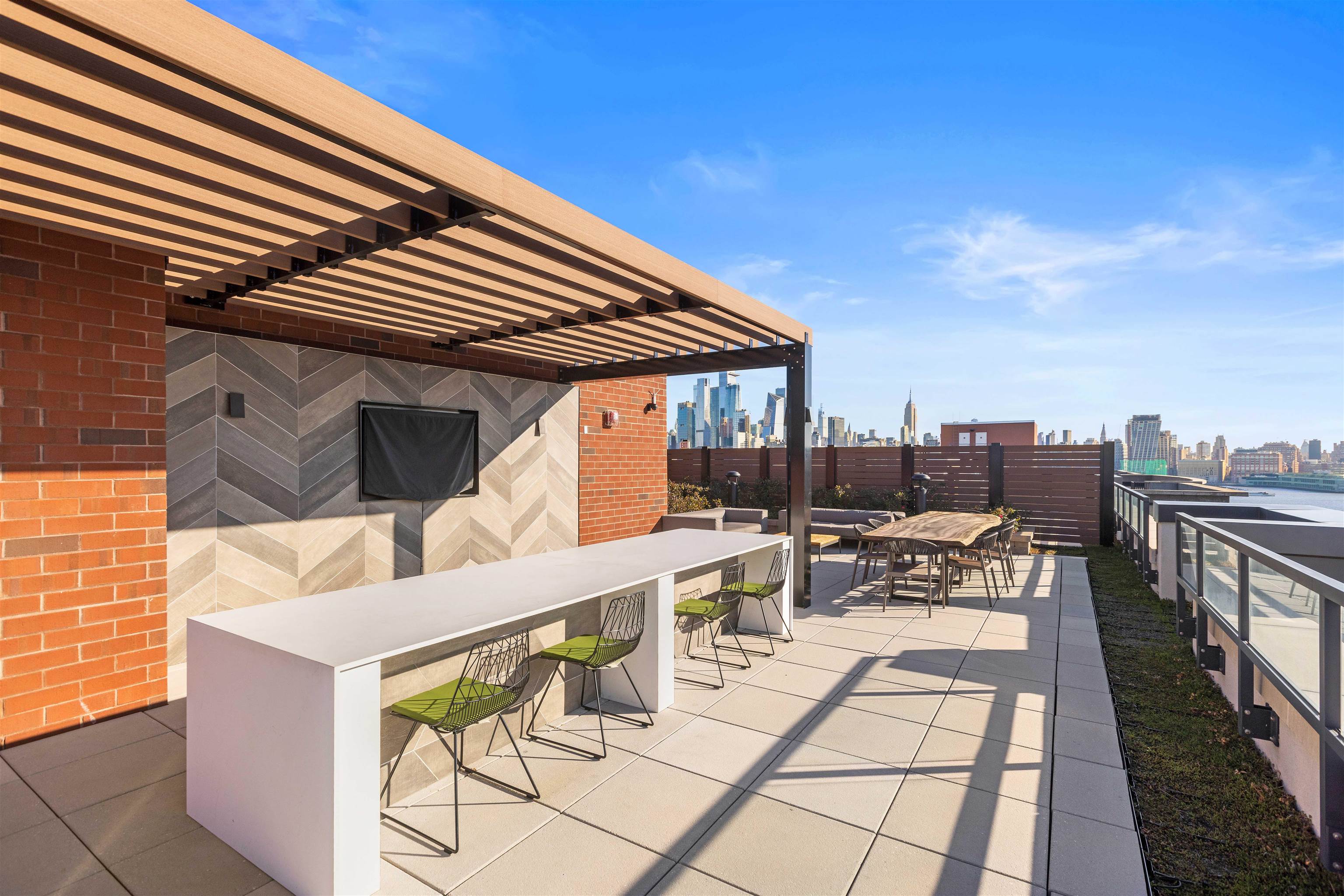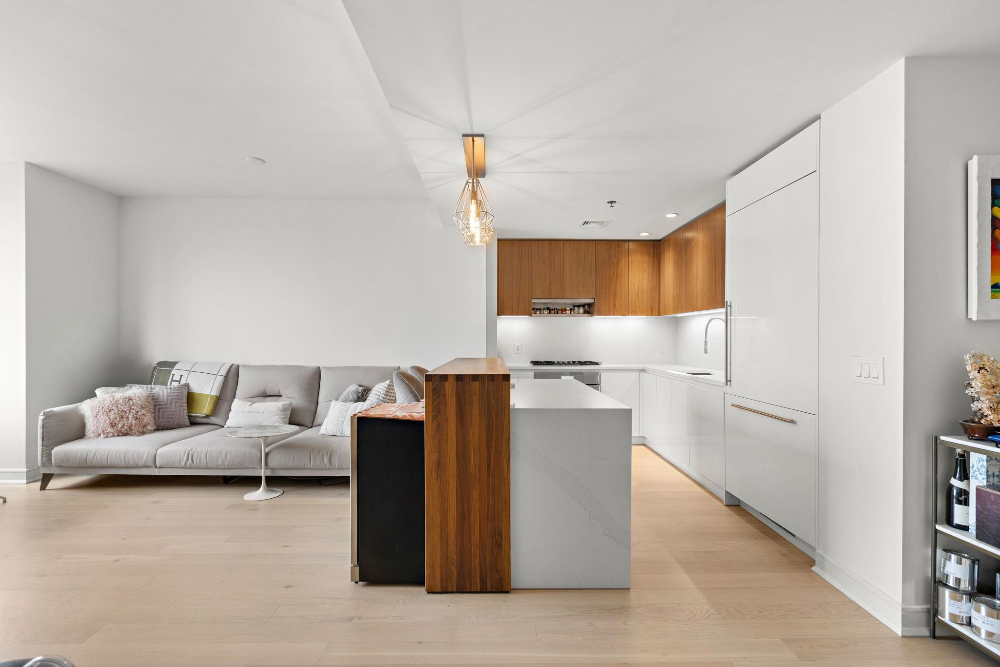 Welcome home to this stunning 1 bed, 1 bath condo in the luxury community of 1000 Maxwell, Toll Brothers’ newest Hoboken building. The chef’s kitchen includes stainless steel appliances, modern walnut cabinetry with quartz countertops, and a breakfast island. It sits in a sunny, south-facing open floor plan with beautiful views of Elysian Park, the Jersey City skyline, and the World Trade Center. The spacious bedroom has south views, a large walk-in closet and a sleek and modern bathroom. The home also features an in-unit washer/dryer, central air, and beautiful hardwood floors throughout. The community’s luxury amenities include 24/7 concierge and security, a gym, pool, playroom, rooftop deck with BBQ grills, community room, and shuttle service to and from the Path. The building is conveniently located near the NYC Ferry, bus stop, shops, restaurants, and everything that uptown Hoboken has to offer.