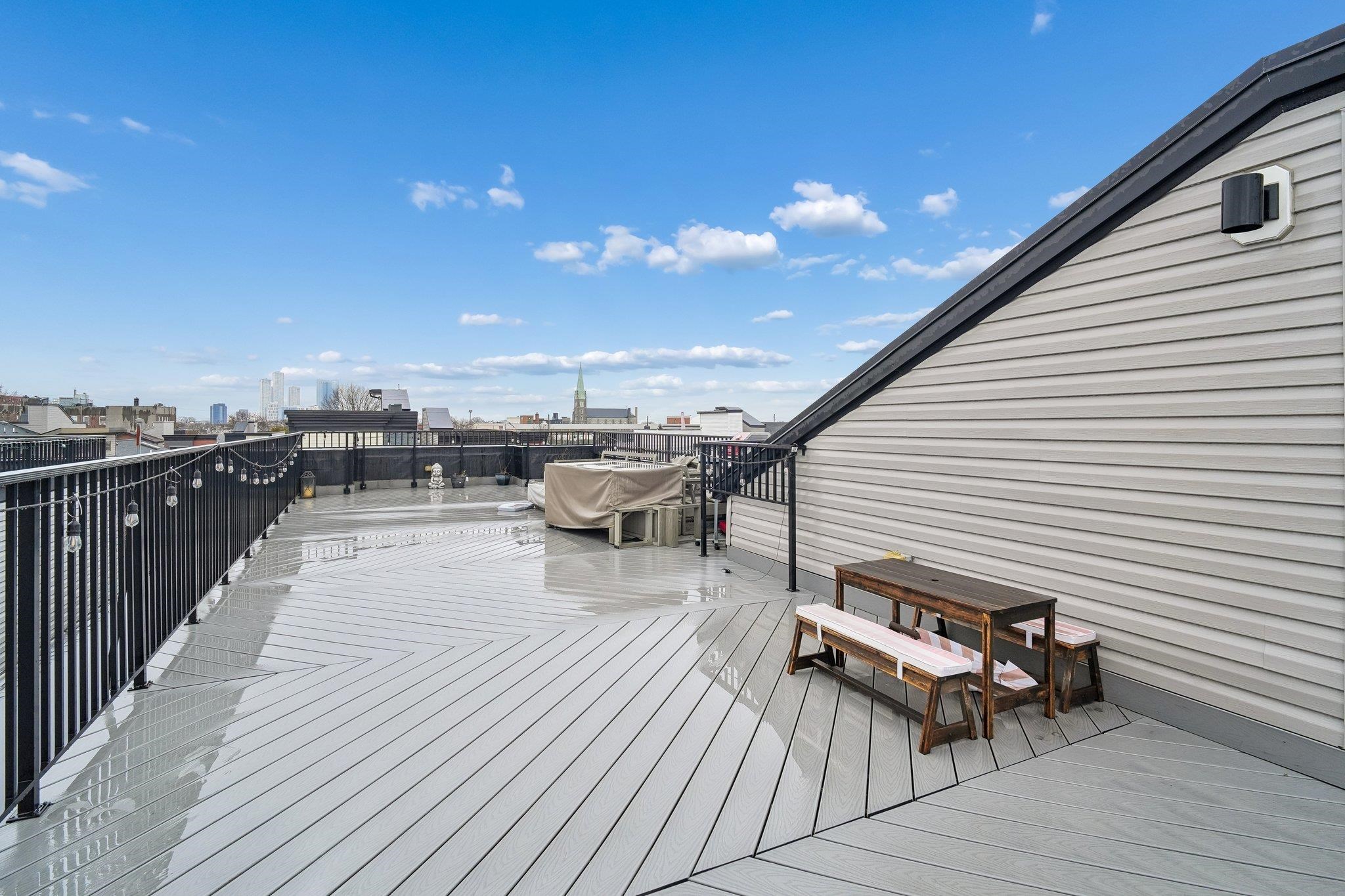Move right into this stunning condo! Featuring three bedrooms, two baths, parking for two cars, wide crown molding, hardwood floors, custom kitchen and an island with quartz countertops, stainless steel appliances and a wine cooler. Gorgeous spa-like baths with multi jets and shower sprays. Pella transom windows for generous natural light, tankless hot water system, central vacuum, camera security and video intercom door bell. Private 750 square foot rooftop terrace with sound speakers, electric, water and gas line increasing your outdoor enjoyment and eastern NYC view and mountain vistas to the west. Located in JC Heights on a residential city street and low HOA. Conveniently close to NYC transportation, bus to Journal Square PATH or a stroll through the park to the Light Rail Station.