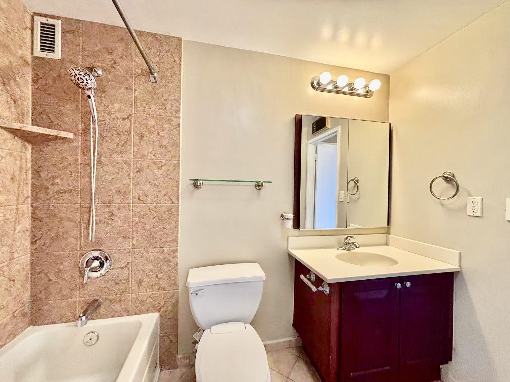 Prime location for commuting and living! Spacious Studio, offering over 700Sf of living space. Corner Unit with stunning open and water view. Beautiful wood flooring. Large eat-in kitchen with stainless steel appliances. Large bathroom has a tub and tiled flooring. Washer/Dryer in unit. ample sunlight and ample storage. Central cooling and heating. Energy saving. 1 covered parking space and many visitor parking spaces. Great amenities included – 24 hr concierge/security, both indoor and outdoor children play areas, fitness center, Party/Game room, tennis court, and outdoor pools. BUS to NYC, train and school at door step. Water and Hot Water are included in the rent. Low utility bill.
