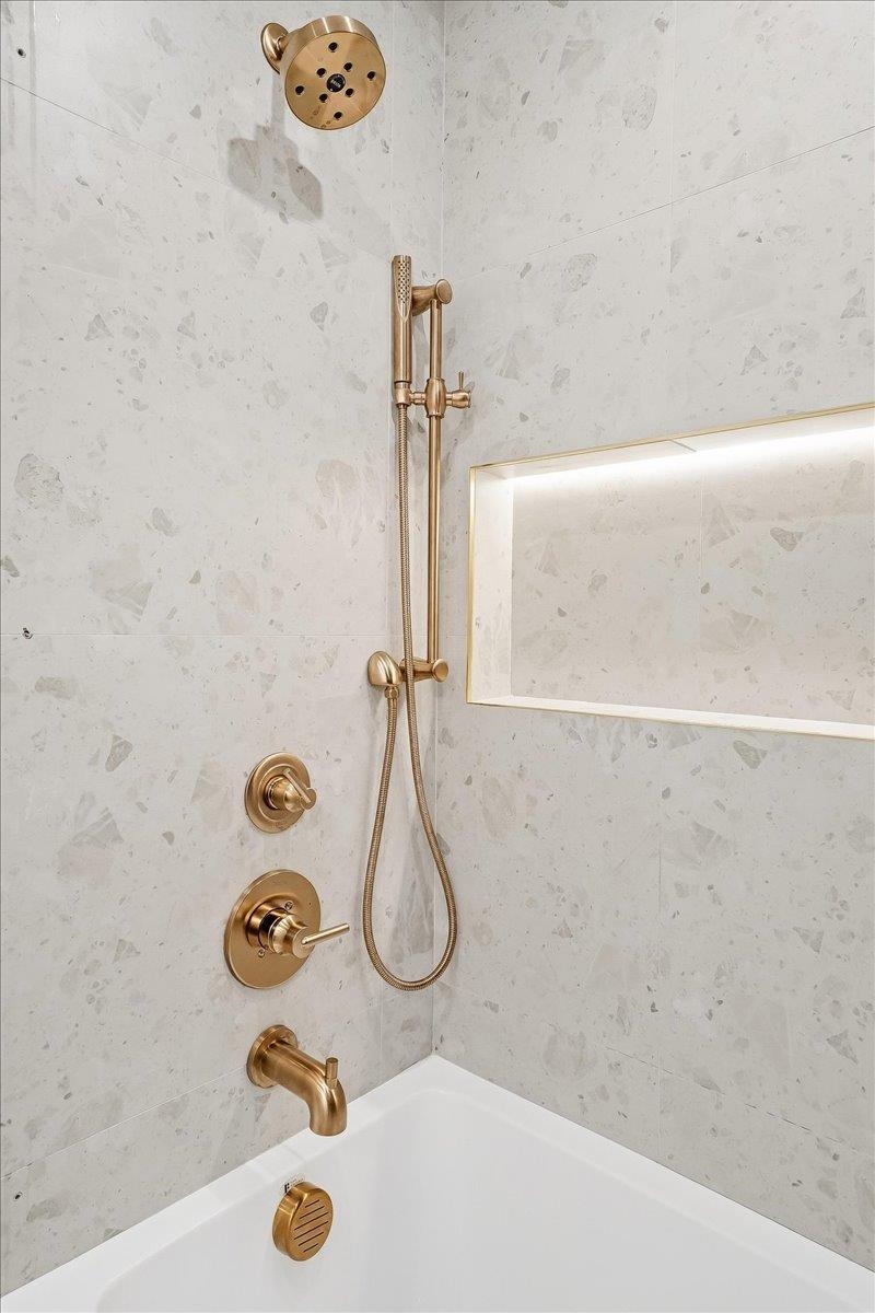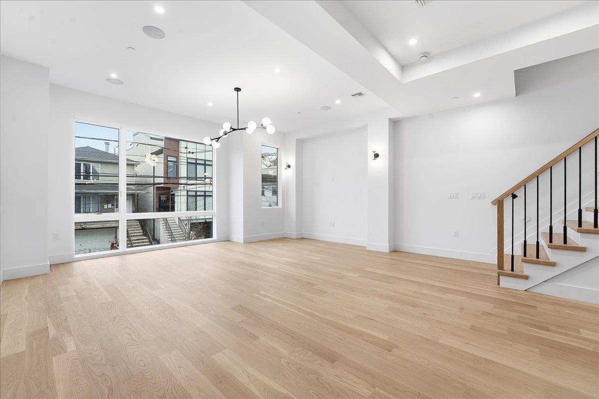 Set amid a striking new four-unit development in The Heights, this 1,600+ sq ft residence redefines modern living, bold style and curated comfort. Spanning two levels with floor to ceiling windows on three sides, this 3 bedroom, 3 bath home also includes a private roofdeck for the elevated indoor and outdoor living. Step into a sun-soaked open floorplan with warm hardwood floors and a slatted modern staircase illuminated by LED treads. The kitchen commands attention with a waterfall white quartz island, seamless backsplash, matte black and natural wood custom cabinetry, and premium stainless appliances including a wine fridge. Matte black pendant lighting and fixtures finish the look, including a pot filler for precision and poise. Retreat to the primary ensuite designed to impress with soft grey wood-panelling, striking light fixture, and a spa-inspired bath. Bathroom finishes include elements like matte black vessel sinks, vertical tile to the ceiling, glass-enclosed multi-spray shower or soaker tub, and accent lighting in the shower niche. Additional upgrades abound with extras like Bose surround sound speakers throughout the home, or the magazine-worthy powder room with floating vanity and artistic wallpaper. Two blocks to Reservoir #3 or Pershing Field Park, and easy access to the 2nd Street Lightrail Station with Hoboken and NYC access, this location offers comfort, community and convenience. Set on a tree-lined street in Jersey City Heights, this quiet neighborhood is known for its artistic community, boutique shops and restaurants, excellent parks and schools and crystal clean Manhattan views.