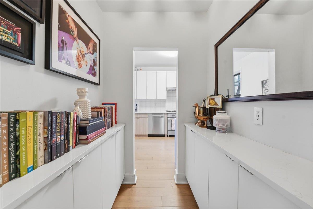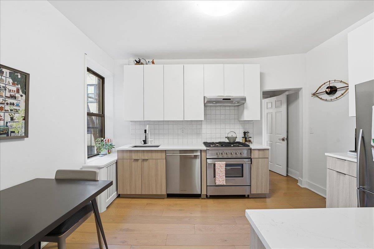 Step into old-world charm and modern living in an exceptionally maintained pre-war building in the heart of Jersey City’s Lincoln Park neighborhood on coveted Kensington Avenue. This recently renovated, spacious, sun-filled two-bedroom, 1.5-bathroom second-floor home blends classic architectural details with modern design. At 933 square feet, you’ll enjoy an eat-in kitchen featuring top-end stainless steel appliances and extensive stone counter space; multiple closets offering ample storage, including a cedar-lined closet and deep walk-in bedroom closets; a large primary bedroom that fits a king-sized bed and a sizeable second bedroom with an adjacent half-bath; stylish lighting fixtures; hardwood floors; high ceilings; and a welcoming front foyer. The floor plan is designed to create a comfortable living space for entertaining, family time, and privacy. Kensington Court recently updated the building’s elevator, on-site laundry room, bike room, and front lobby/mailbox areas. The building is equipped with an app-enabled video entry system for security and convenience. Nearby rental parking can transfer with the unit. Situated in one of the city’s most desirable locations, this home is just steps away from the iconic Lincoln Park, public transportation into NYC, and local restaurants and shops.