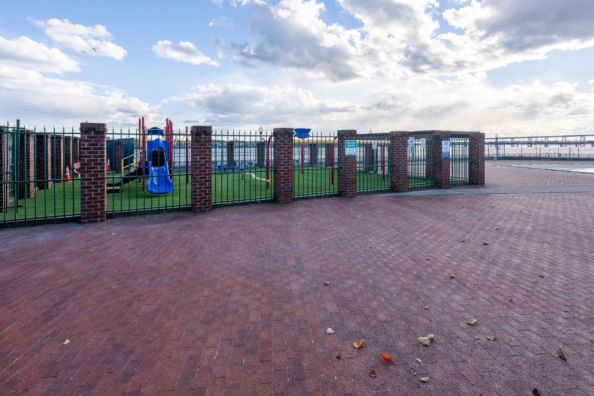 Step into this stunning 2-bedroom, 2-bathroom rental, located on the first floor of the desirable gated Society Hill community in Jersey City. Featuring hardwood floors throughout the living areas this home combines style and comfort. Enjoy peaceful views of the bay from your private terrace, an ideal spot for relaxation or entertaining. The spacious primary bedroom offers an ensuite bathroom and a generous walk-in closet, with a closet organizer. The kitchen is well-equipped with ample counter space, and the sunny dining nook creates a warm, inviting atmosphere. Added convenience of an in-unit washer and dryer and central HVAC. There is also a designated parking spot for one car with ample guest parking. Society Hill residents enjoy a range of amenities, including 24-hour security, an outdoor pool, a community room, a play area, and tennis courts. Experience the perfect blend of comfort and convenience in this lovely rental home. Schedule a tour today!