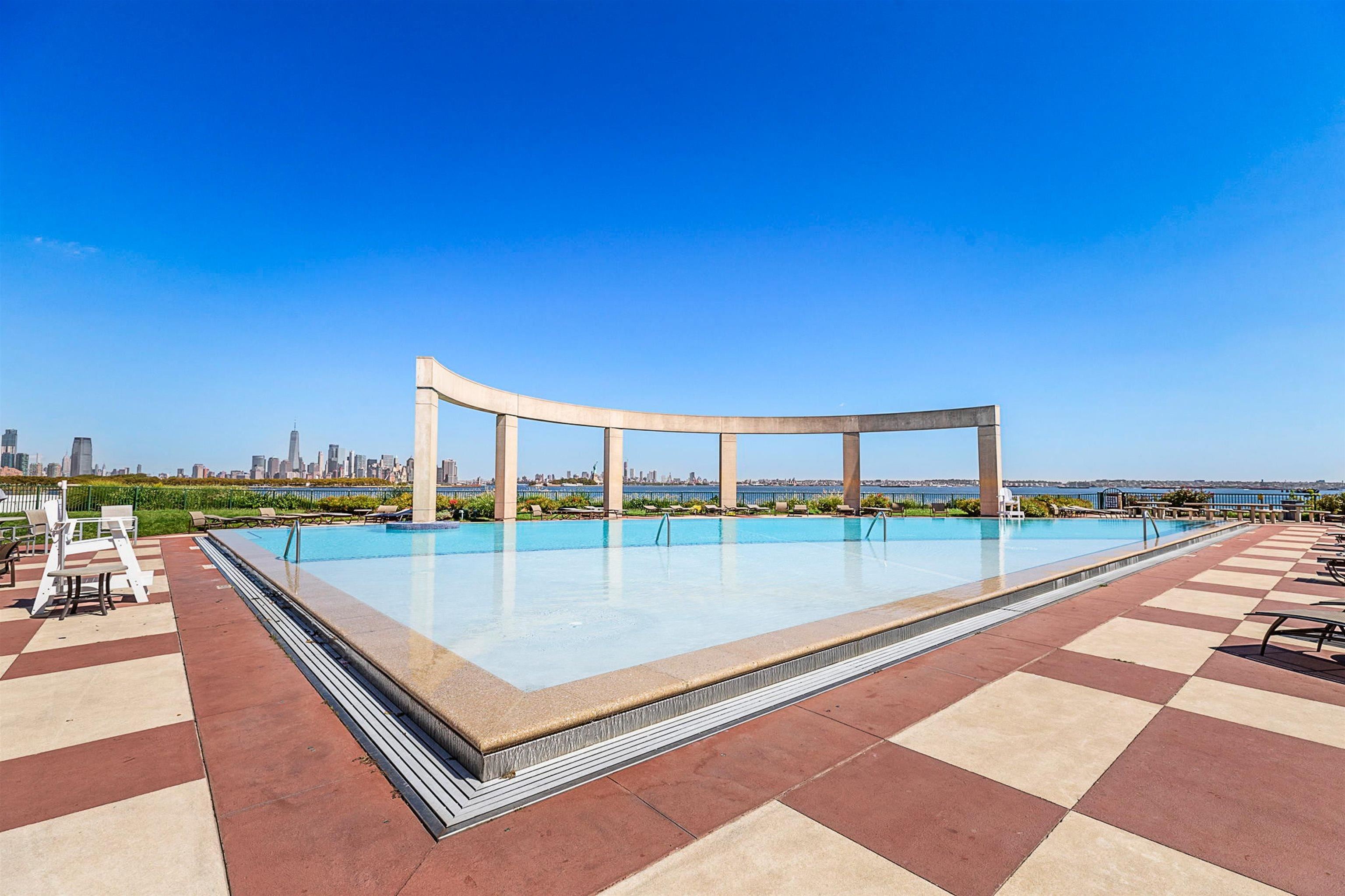 Welcome to Port Liberté! SELLER PAYING FULL-ASSESSMENT. This massive 1-Bedroom, 1-Bathroom (with Private Terrace!) residence offers a thoughtfully designed, functional living space in one of Jersey City’s most-coveted waterfront communities — just a five-minute walk to the Pier 11 Wall Street Ferry. 1-Car Garage Parking is included. Meticulously updated over the years, the home is filled with personal style, color and creativity — making it truly one of a kind. The open-concept Kitchen and Living Room are bathed in natural light and showcase awe-inspiring views of the NYC skyline. French Doors lead into the oversized Bedroom, while a Private Terrace provides the perfect setting to enjoy your morning coffee or evening relaxation with extraordinary views of the Hudson River and Manhattan’s Financial District; also included is a full-size Washer/Dryer and a walk-in cedar closet. Community amenities include two Outdoor Pools, Tennis/Basketball Courts, a 4,600-square-foot Fitness Center (with Saunas, Locker Rooms, Massage Room) as well as a Playground, Clubhouse, and Dog Park — all within a 24-Hour secured, gated neighborhood. Additional on-site conveniences include a NY Waterway Ferry terminal with service to Lower Manhattan, a shuttle to the Grove Street PATH Station (servicing both 33rd Street and World Trade Center) and two outstanding dining options: Felina Steak restaurant and the Stork Club Rooftop; with its unique blend of character, modern updates and resort-style living, this Port Liberté home offers both comfort and style in an unbeatable location. SELLER PAYING FULL-ASSESSMENT.