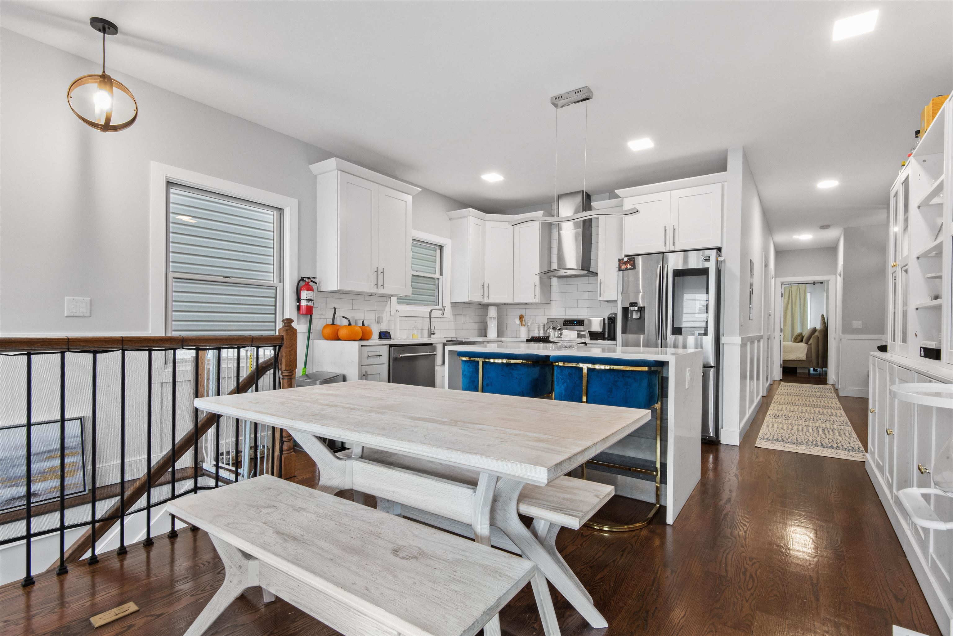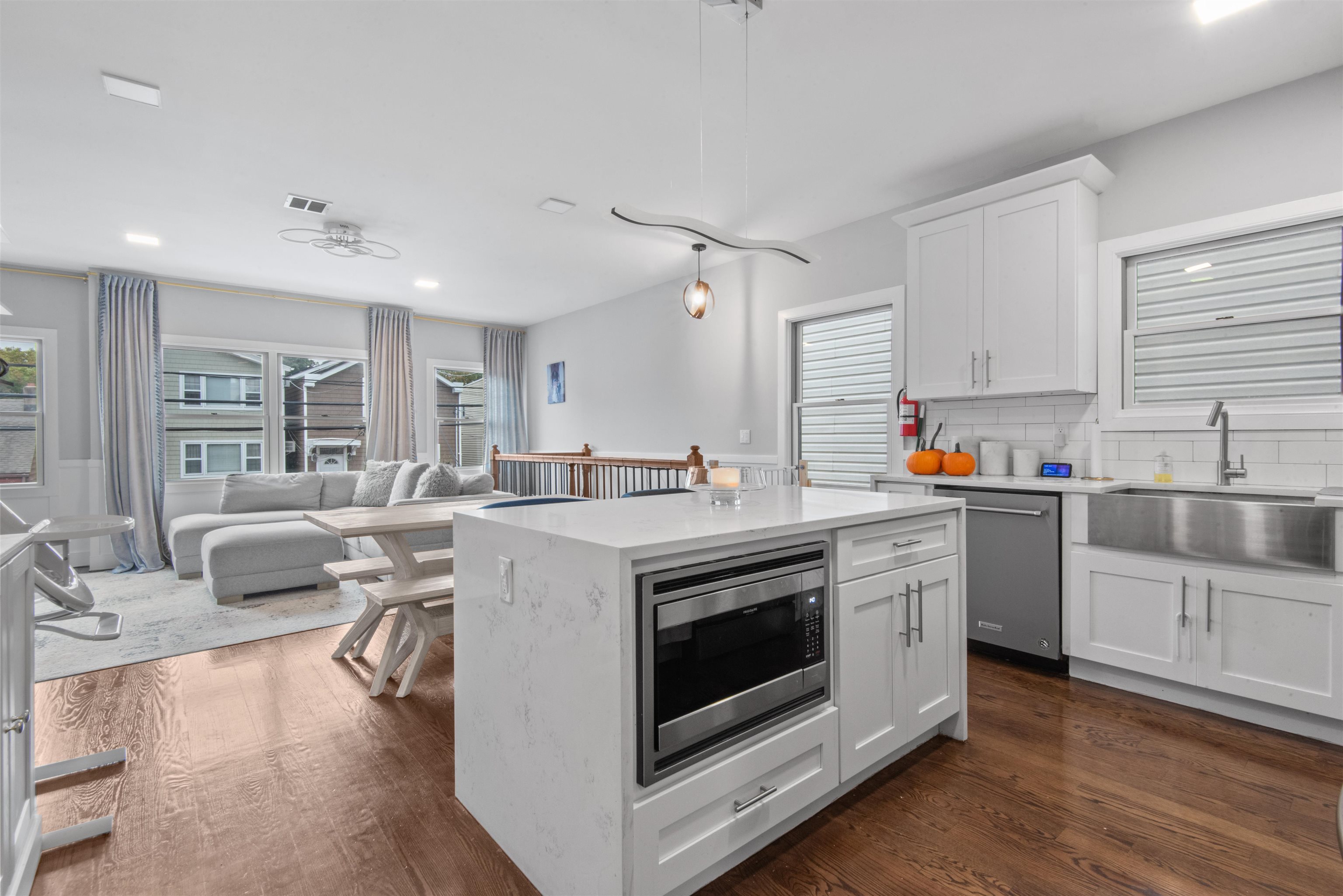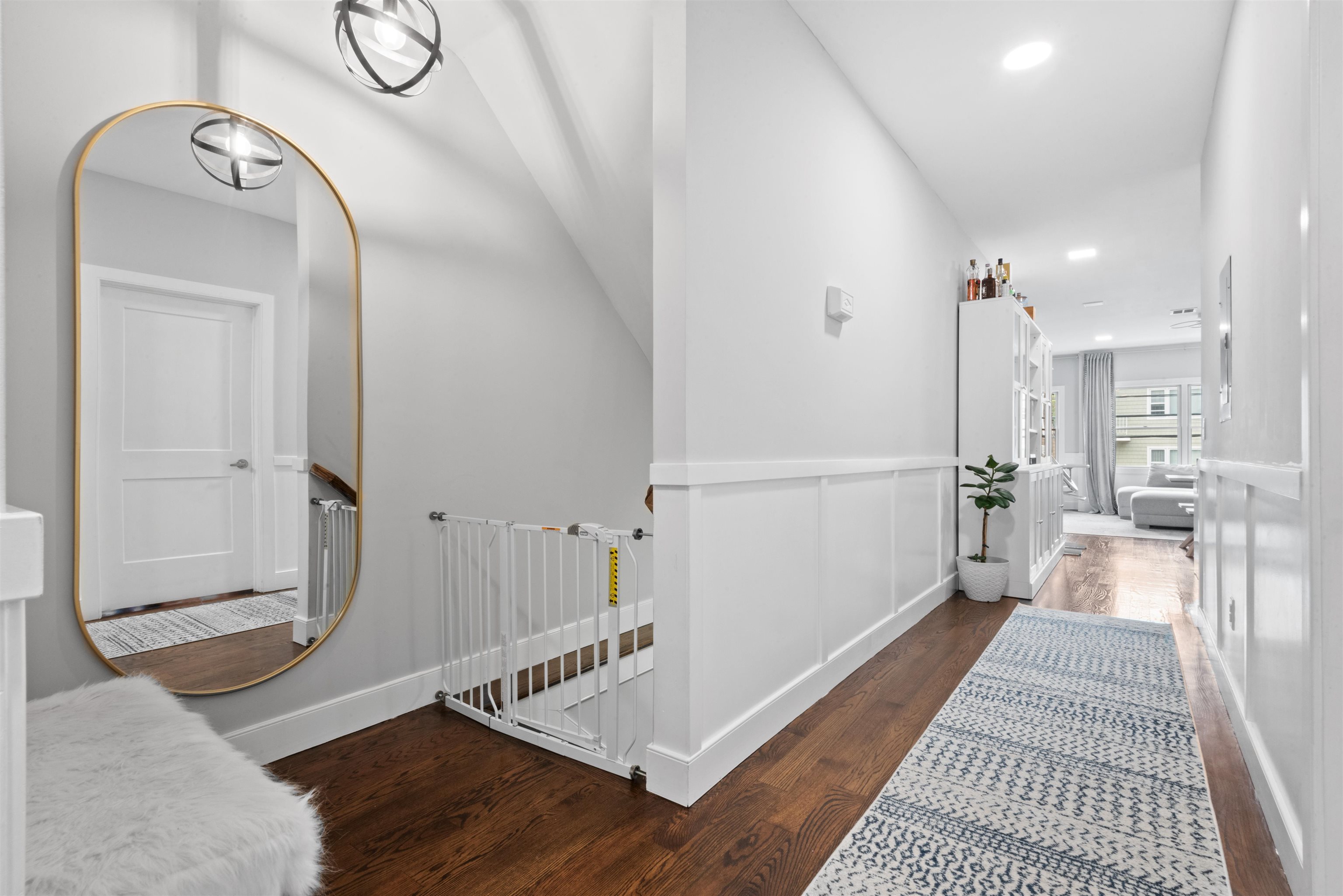 This DUPLEX home was built in 2019 and offers approximately 1,835 sq ft of living space, featuring 3 bedrooms and 2.5 bathrooms. The main level, accessible via a private entrance, includes a living room, dining area, kitchen, 3 bedrooms, and 2 bathrooms. This floor boasts a south-facing open concept design that fills the space with natural sunlight, highlighting the hardwood flooring. The upscale kitchen is equipped with smart home appliances and is powered by Alexa. The lower level features a large 18′ x 19′ family/bonus room, which leads out to your PRIVATE backyard. This floor has direct access to the garage, in addition to ample storage. Additional amenities include an in-unit washer & dryer, central air conditioning, exterior security cameras, and one tandem garage parking spot included with the monthly rent. The surrounding area offers parks, restaurants, and convenient access to commercial amenities along Central Ave., as well as nearby bus routes to Manhattan and the Journal Square PATH. Available 11/15/25. No pets.
