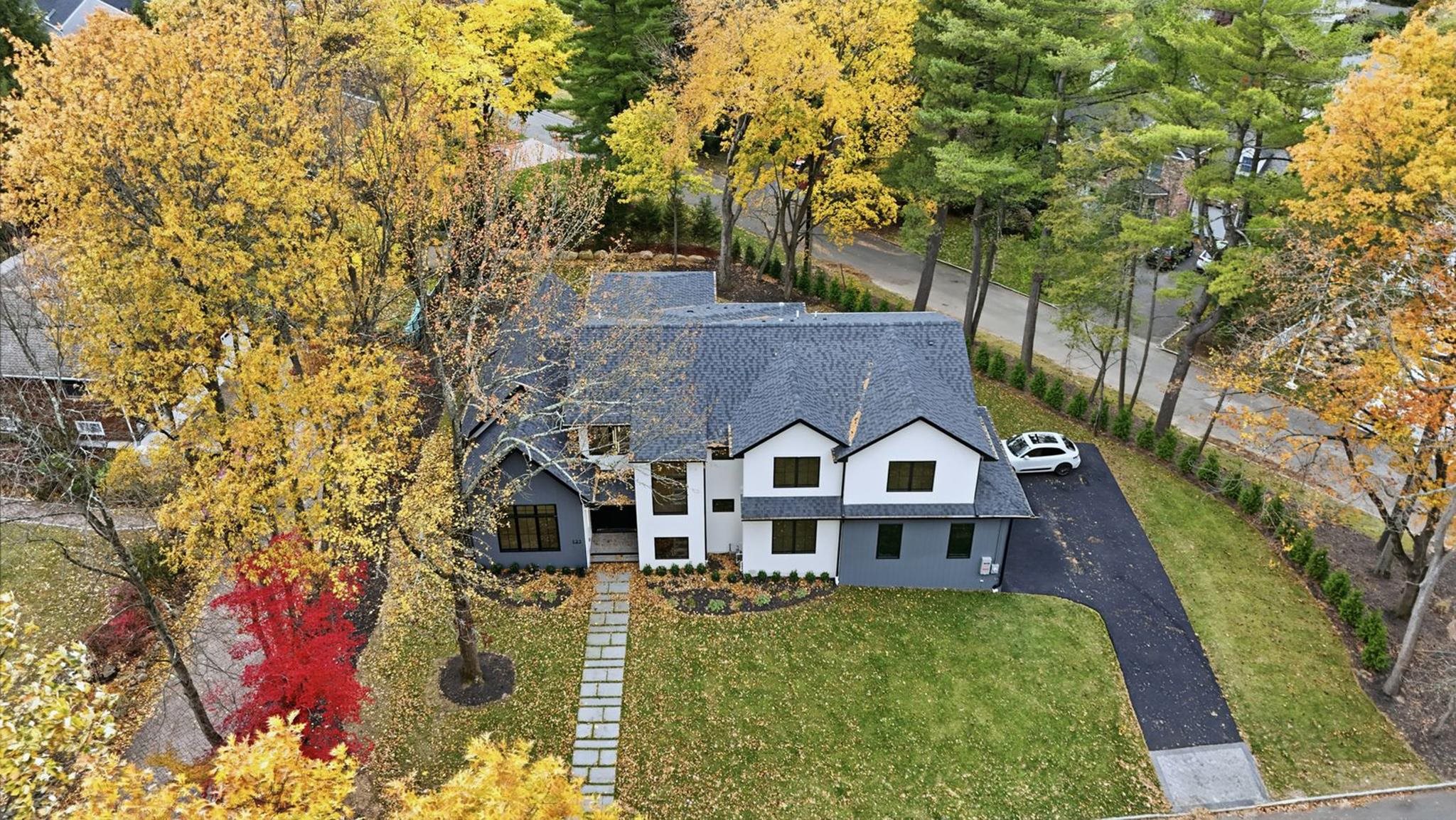 Luxury takes center stage in this remarkable new custom home offering over 6700 sq ft of beautifully finished living space on 0.35 acres. Dramatic one and a half story ceilings elevate the dining room, living room, and family room, complemented by oversized windows and high end designer finishes throughout, creating an atmosphere ideal for elevated daily living and entertaining. The chefs kitchen serves as the homes centerpiece, featuring custom cabinetry, quartz countertops, professional stainless steel appliances, and a large island with seating. The main level also includes a first floor guest suite, mudroom, and powder room. Upstairs, four spacious bedrooms feature nine foot tray ceilings, including a luxurious primary suite with two custom walk-in closets and a spa-like bath with soaking tub and double vanity. Additional highlights include oak floors throughout, radiant heat in all bathrooms except the basement, a central vacuum system, and extensive custom millwork. The fully finished lower level provides flexible living with a rec room, gym area, ensuite bedroom, dedicated wine storage with glass door, and pre wired home theater. Enjoy an oversized heated three car garage, generator, multi zone HVAC, full landscaping package, outdoor gas hookup on the covered porch, and a ten year home warranty. A rare opportunity to own new construction in a prime location, move in ready luxury with every detail thoughtfully crafted.