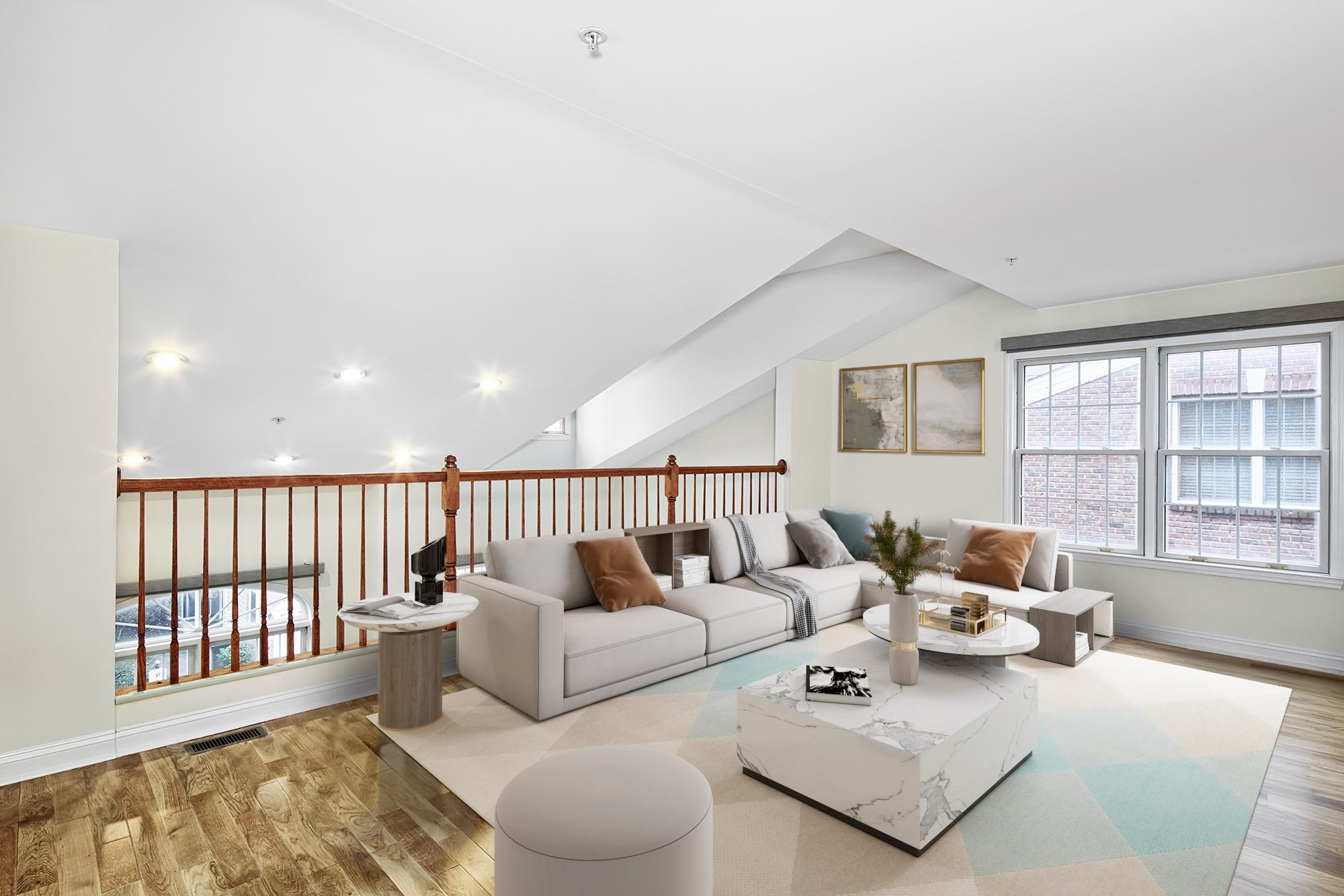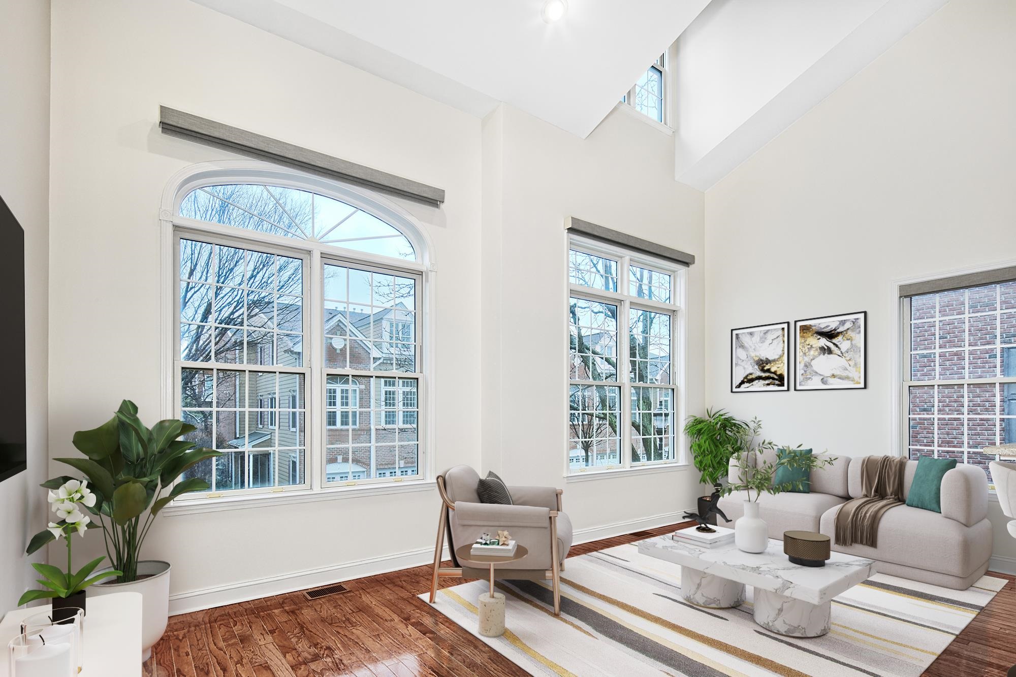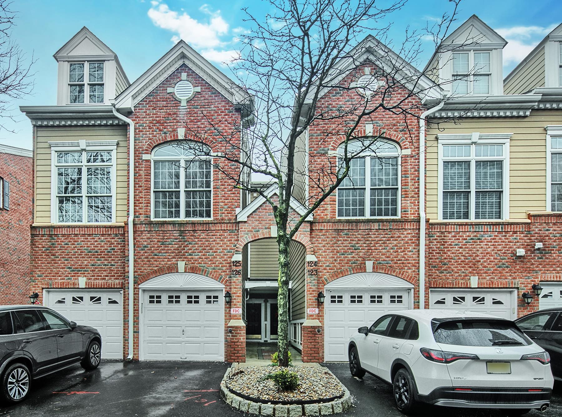 Sought after Chatham style home!! Corner unit, so extra windows. Flooded with natural sun light. Located on a quiet cul-de-sac. Two bedrooms plus spacious loft area that could be used as third bedroom. Fabulous vaulted ceilings. Renovated kitchen. Renovated powder room. Continuing the opulence is a loft which provides dramatic views of the room below. Laundry room on same level as bedrooms. Sumptuous master suite with vaulted ceilings, oversized renovated master bathroom with soaking tub and custom fixtures, walk-in closet and balcony. Second bedroom. Second renovated full bathroom. Custom painted, custom lighting. Parking for two cars; one in private garage and one in driveway. Community features two pools with Jacuzzis, tot lot, waterfront promenade and free shuttle to NY Waterway Ferry and Light Rail. Steps to 158 bus to NYC. Close to restaurants and shopping. A real gem!!