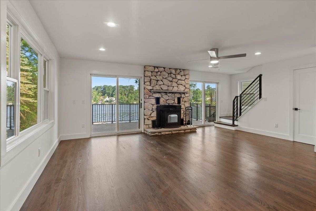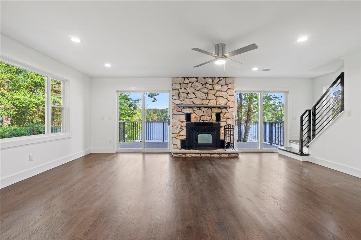 Welcome to this stunning custom lakefront home offering serene water views and a peaceful natural setting. This 3 bedroom, 2 bathroom residence boasts hardwood flooring and recessed lighting throughout, creating a warm and inviting ambiance in every room. Enjoy cozy evenings in the spacious living room with a charming wood burning fireplace, or cook up your favorite meals in the eat in kitchen featuring stainless steel appliances. The primary suite offers a walk in closet and an en suite bath complete with a soaking tub and stall shower. Skylights in the bedrooms bathe the rooms in natural light. A versatile bonus room provides the perfect space for a home office, hobby room, or guest retreat, giving you even more flexibility to suit your lifestyle. Step outside onto the deck overlooking the tranquil lake, perfect for morning coffee or sunset relaxation. The full unfinished walkout basement provides excellent storage or future living space potential, and a generous driveway offers ample parking for guests. Just minutes to Wawayanda State Park, the Appalachian Trail, downtown Warwick, local wineries, a drive in theater, and more. This is lakeside living at its best whether you’re entertaining, relaxing, or exploring the outdoors, this home provides the perfect backdrop for it all.