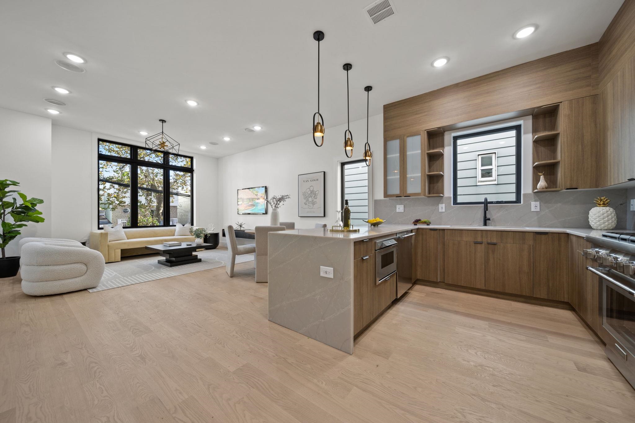 Welcome to 13 Lienau Place Unit 1—a brand new 3-bedroom, 3-bathroom duplex by Medna Developers, offering 1900 sq ft of thoughtfully designed living space and side by side garage parking in Jersey City Heights. The main floor provides an open concept living area with 10-ft ceilings and oversized Andersen windows that fill the space with natural light. The chef’s kitchen features premium Thermador appliances, waterfall quartz countertops, custom built hood vent, custom wood and glass cabinetry. Your Primary Bedroom offers a custom floor to ceiling wood tone accent wall, walk-in closet with custom built ins, accent pendant lighting, private balcony, and a luxurious ensuite bathroom with floor to ceiling large format tile and top line shower fixtures. Completing your main floor are 2 additional large bedrooms with built in closets, accompanied by a full bath, laundry, and linen closets for additional storage. The ground floor extends your living space with a versatile recreation area ideal for entertaining, complete with a wet bar, full bathroom, and direct access to both the backyard and garage as well as a private side entrance. Garage offers RARE SIDE BY SIDE parking with EV charging capability. Located on a quiet block near shops and restaurants, Pershing Field Park, major NYC transit and PATH and Hoboken. 13 Lienau delivers modern design and convenience in the heart of the Heights. Property comes with 10-year Builder Warranty and may qualify for a 5-year tax abatement. Please note sqft is approximate.