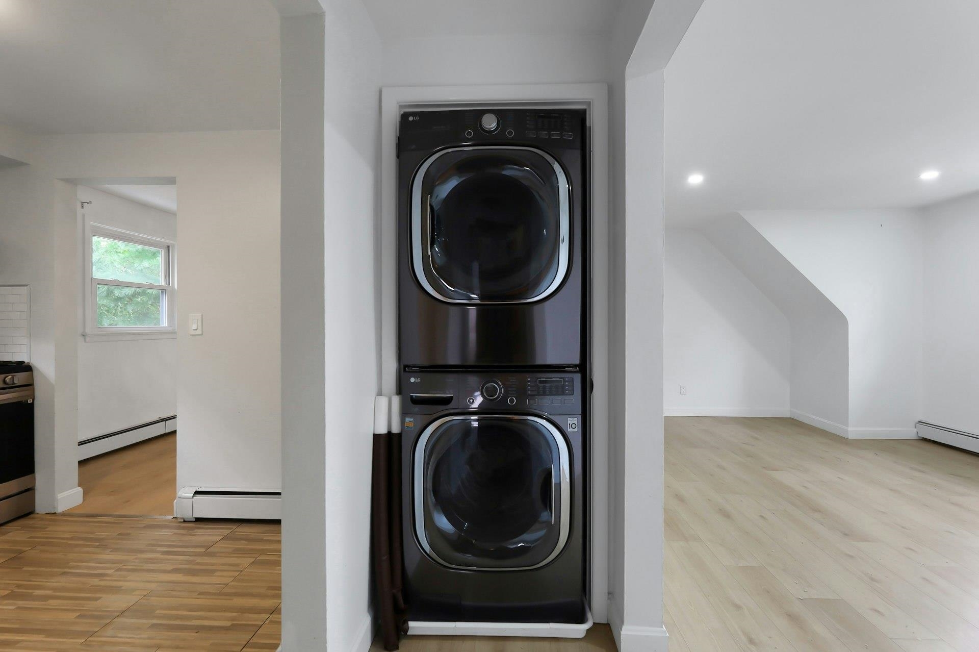 Welcome to 130 Mt Vernon in the heart of Ridgefield Park. This bright and freshly renovated 2-bedroom, 1-bath home offers a warm and functional layout with a separate dining room, perfect for entertaining or a cozy work-from-home space. The open living area features updated flooring and abundant natural light, while the modern kitchen includes sleek countertops and stainless-steel appliances. Enjoy the convenience of your own in-unit washer and dryer plus a newly refreshed bath with contemporary fixtures. Ideally located near shopping, dining, parks, schools, and easy NYC commuting—this move-in-ready home blends comfort, style, and convenience.