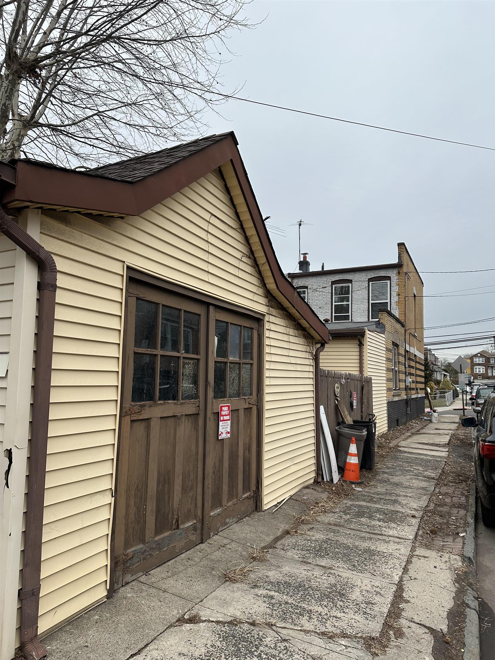 Attention Investors and Builders, Original Solid Brick home nestled on a large corner 16 x 100 lot with large garage and lot on a quiet end street. Three floors include 3 bedrooms and full bath. Property has the potential to be converted into a 2 family or a mix used. Original hardwood floors can be restored along with other original accents throughout. Property is being sold in as is condition and in need of full reno.