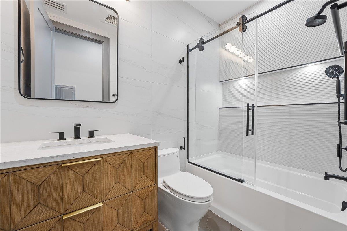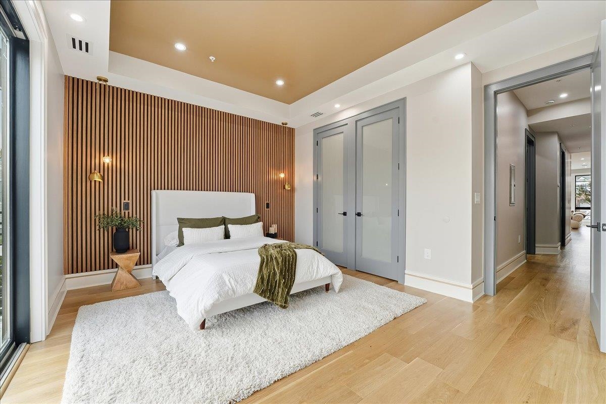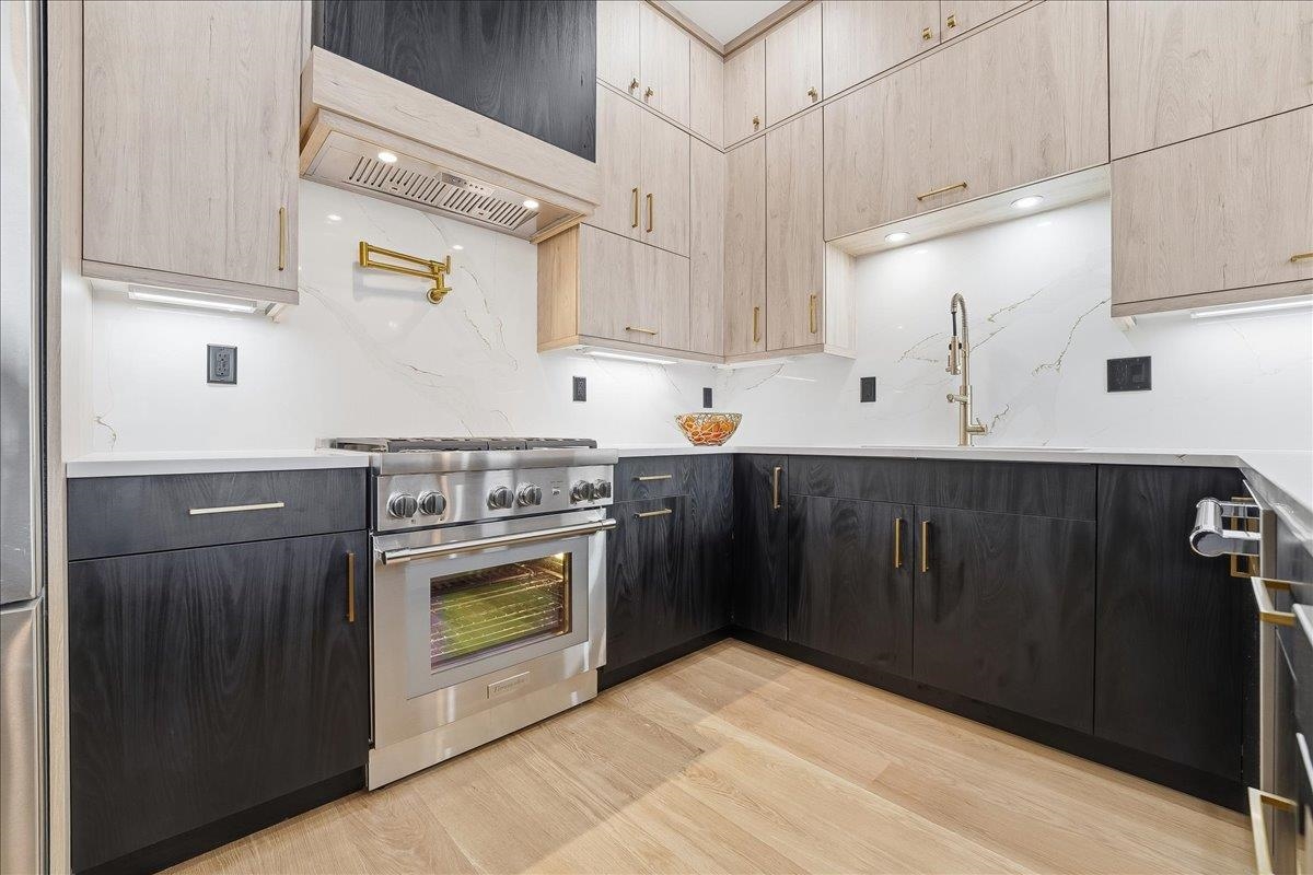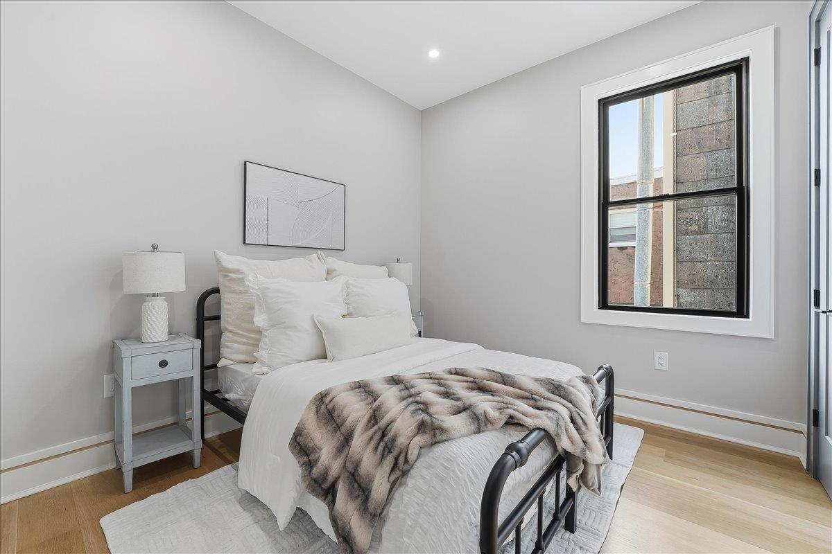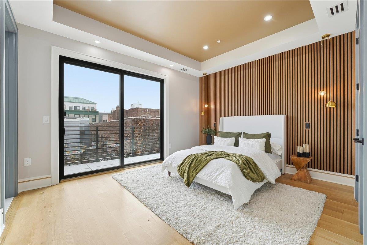 High design meets everyday ease in this brand new home in The Heights. The impeccably styled 3 bed, 2 bath layout, features a private balcony, and is nestled in a coveted pocket of Jersey City Heights with access to shops, parks and NYC transport. Inside, the living area stuns with a wood-paneled fireplace feature wall, prepped for your oversized flatscreen. Tray ceilings provide intrigue above while sun-drenched light oak floors give continuity throughout. The eat-in kitchen is a masterclass in contrast where crisp white quartz counters and backsplash meet matte black lower cabinets and light oak uppers. Top-tier Thermador appliances including a custom hood and microwave drawer create a chef-worthy space, while an added wine fridge and brass fixtures give the finishing touch. Serenity awaits in the primary ensuite, where a paneled statement wall, nightstand sconces, and sliding glass doors to the backyard create a true retreat. Step outside to the private balcony for treetop views and daily serenity. Bathrooms elevate the everyday with gold rainhead fixtures, ribbon tile to the ceiling, a double vanity, and a lit wall niche for the glass shower or soaker tub. The thoughtfully appointed walk-in closet with custom built-ins completes the space. Set just two blocks from the buzz of Central Avenue, this location brings the best of The Heights with boutique shops and cafés, Riverview Fisk Park with cinematic skyline views, and Washington Park’s sports facilities, farmer’s markets and community events. The 9th Street elevator and Light Rail offer a direct line to Hoboken, NYC ferries, and PATH connections. Featuring a 10-year builder’s warranty, this home is modern, move-in ready and made for urban luxury dwellers.