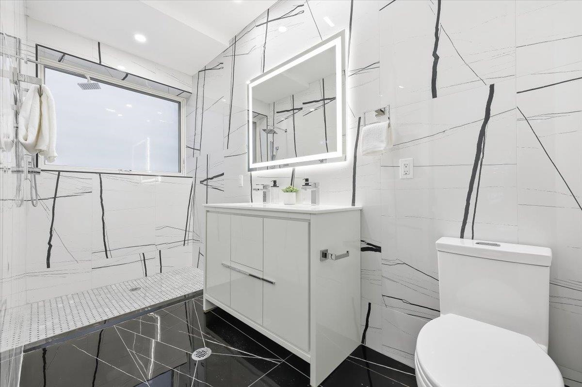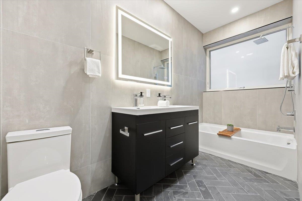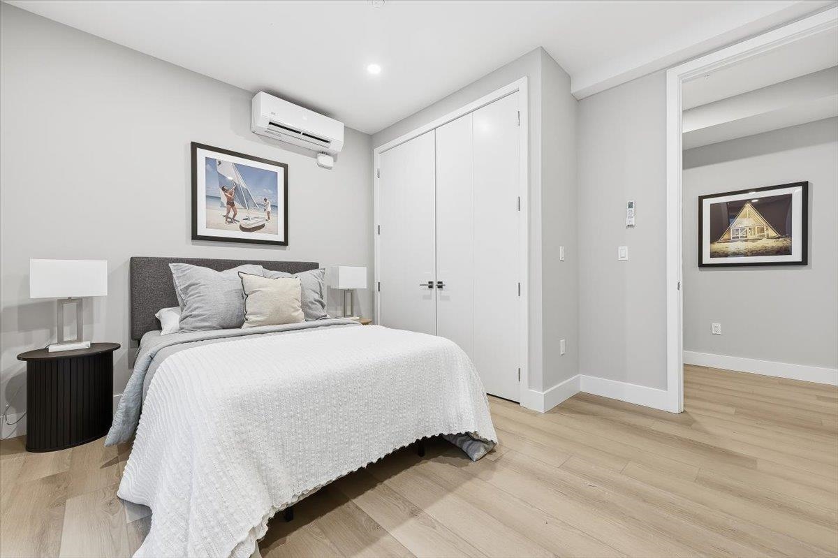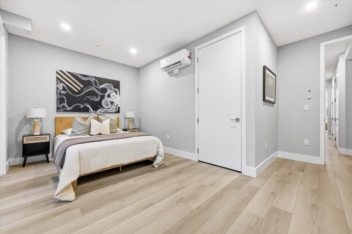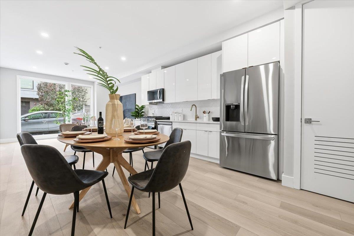 Designed for both serenity and sophistication, this elevated home offers modern finishes, tree-top views and an unbeatable Heights location just 1 block to 2nd Street stairs and Lightrail station. A hidden haven in the Heights, this beautifully crafted 2 bed, 2 bath residence blends bespoke finishes with semi-private garden access for a rare retreat. Wide plank floors ground the space, while natural light floods through the floor-to-ceiling windows illuminating the modern finishes and open floorplan. The kitchen offers clean lines and contemporary flair with modern white cabinetry, gleaming quartz countertops, herringbone tile backsplash, sleek brass-accented fixtures and stainless steel appliances. Both bathrooms are beautifully finished with floor-to-ceiling porcelain tile, herringbone floors, and luxurious rainhead multi-spray shower systems and soaking tub. One bedroom is shielded with privacy glass giving both sunshine and seclusion, while the primary ensuite opens directly to the garden through a full wall of glass, and an effortless flow to the backyard. Top it off with a brand new stacking LG washer and dryer for everyday ease and convenience. Situated just one block from the 2nd Street Light Rail station, this home not only provides direct access to Hoboken and NYC connections, but also Riverview Fisk and Pershing Field Park and Reservoir. Jersey City Heights is known for its vibrant community, excellent parks and schools, boutique shops and restaurants and close proximity to NYC and surrounding areas.