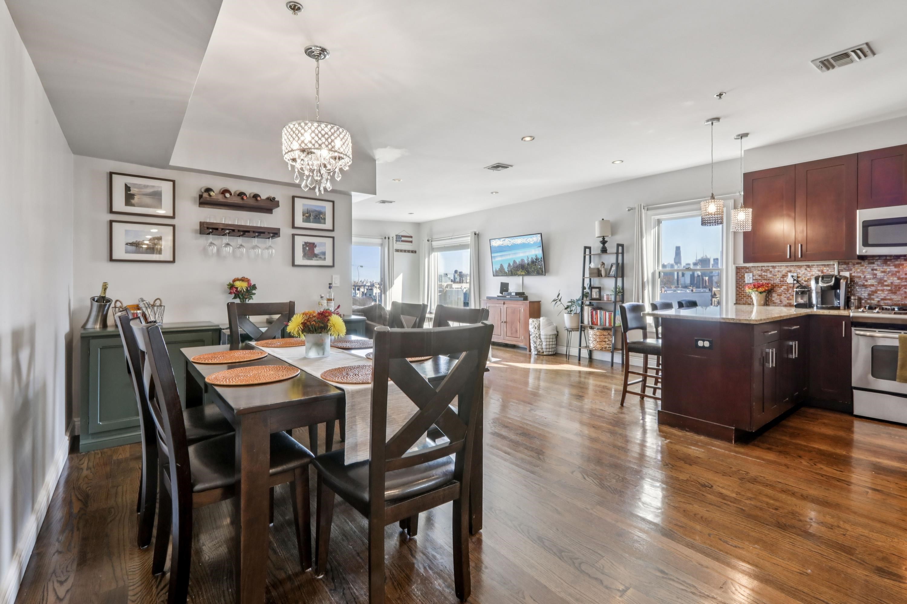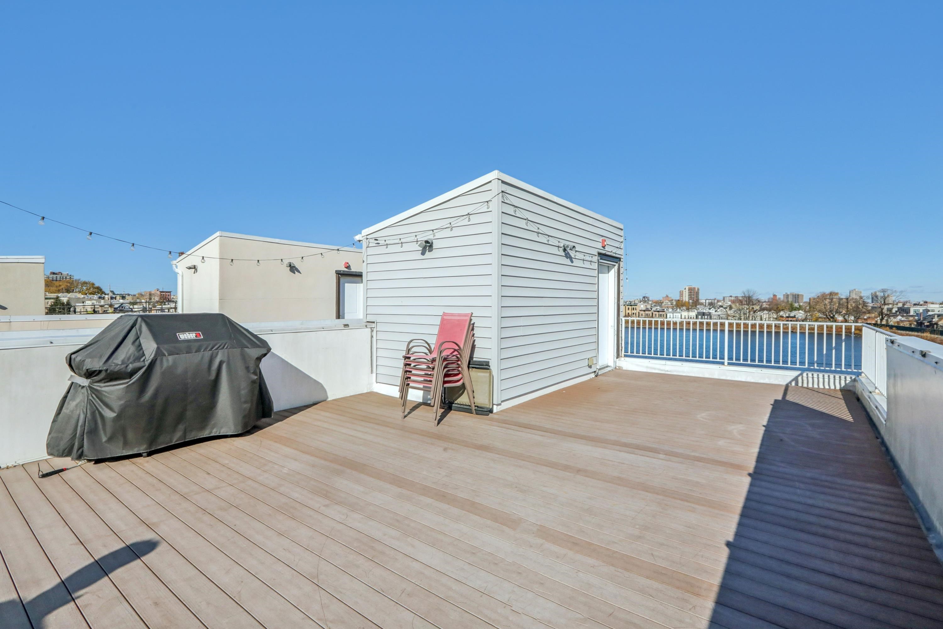 Experience stunning views of New York City from every room of this incredible penthouse, spanning over 1,700 SQFT in one of Union City’s most sought-after neighborhoods! Nestled atop a boutique condominium overlooking the Weehawken Reservoir Park, this residence is a true gem, blending modern elegance with thoughtful design. The extremely spacious open concept layout is filled with natural light and features two spacious bedrooms, each with en-suite baths and walk-in closets, a gourmet kitchen with granite countertops, custom mosaic backsplash, and hardwood floors throughout. Additional highlights include a private terrace, a stylish powder room, an in-unit laundry room, two garage parking spaces, and a rooftop deck with unobstructed skyline views! Ultimate convenience just moments from transportation to NYC via bus, ferry, or car, and access to restaurants, cafes, parks, and shops. Bordering Weehawken, Jersey City Heights and Hoboken, your dream home along New Jersey’s Gold Coast awaits!