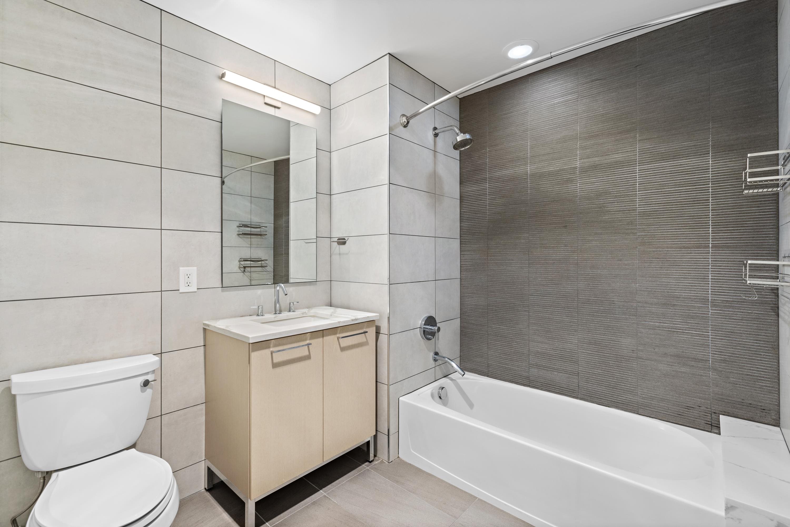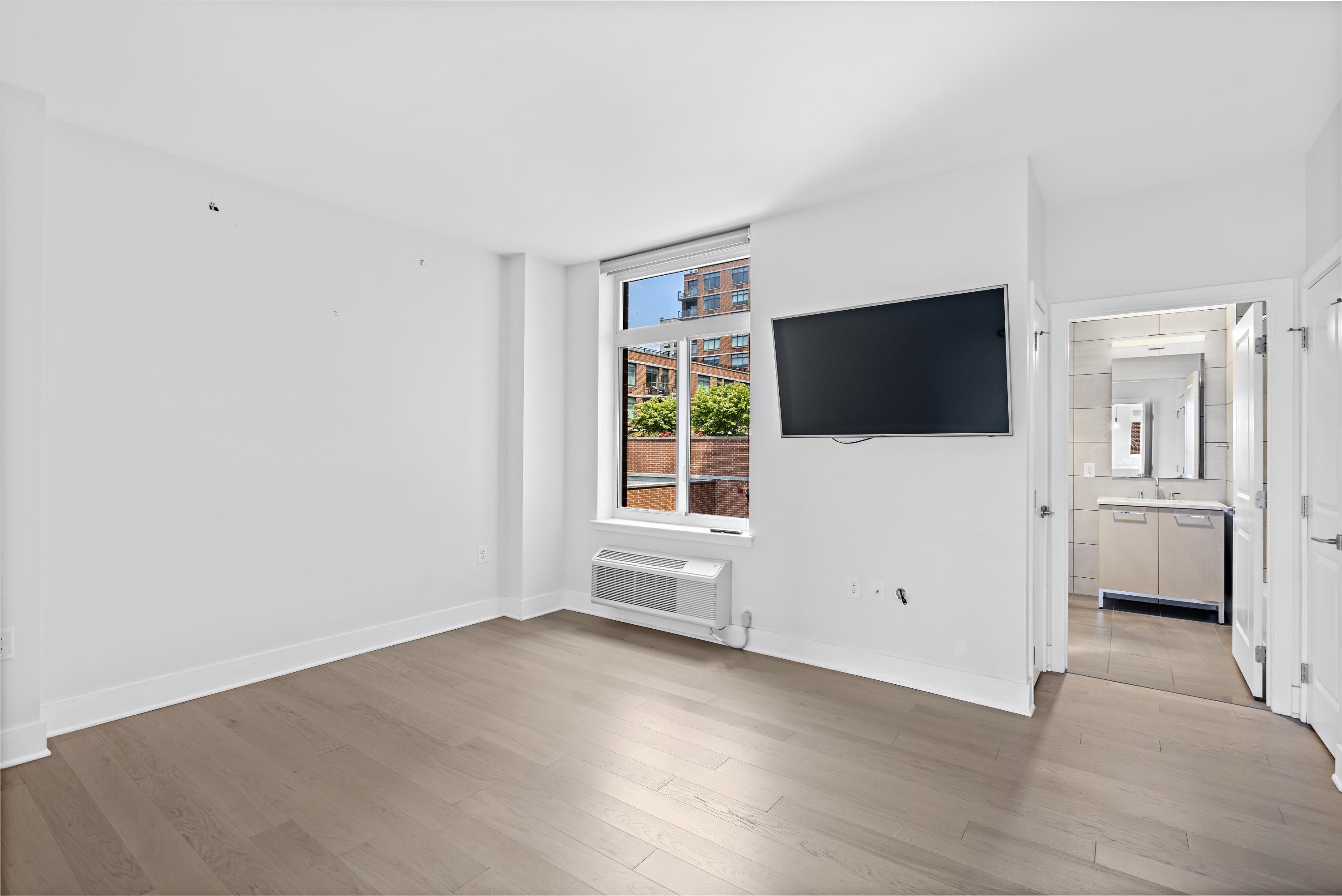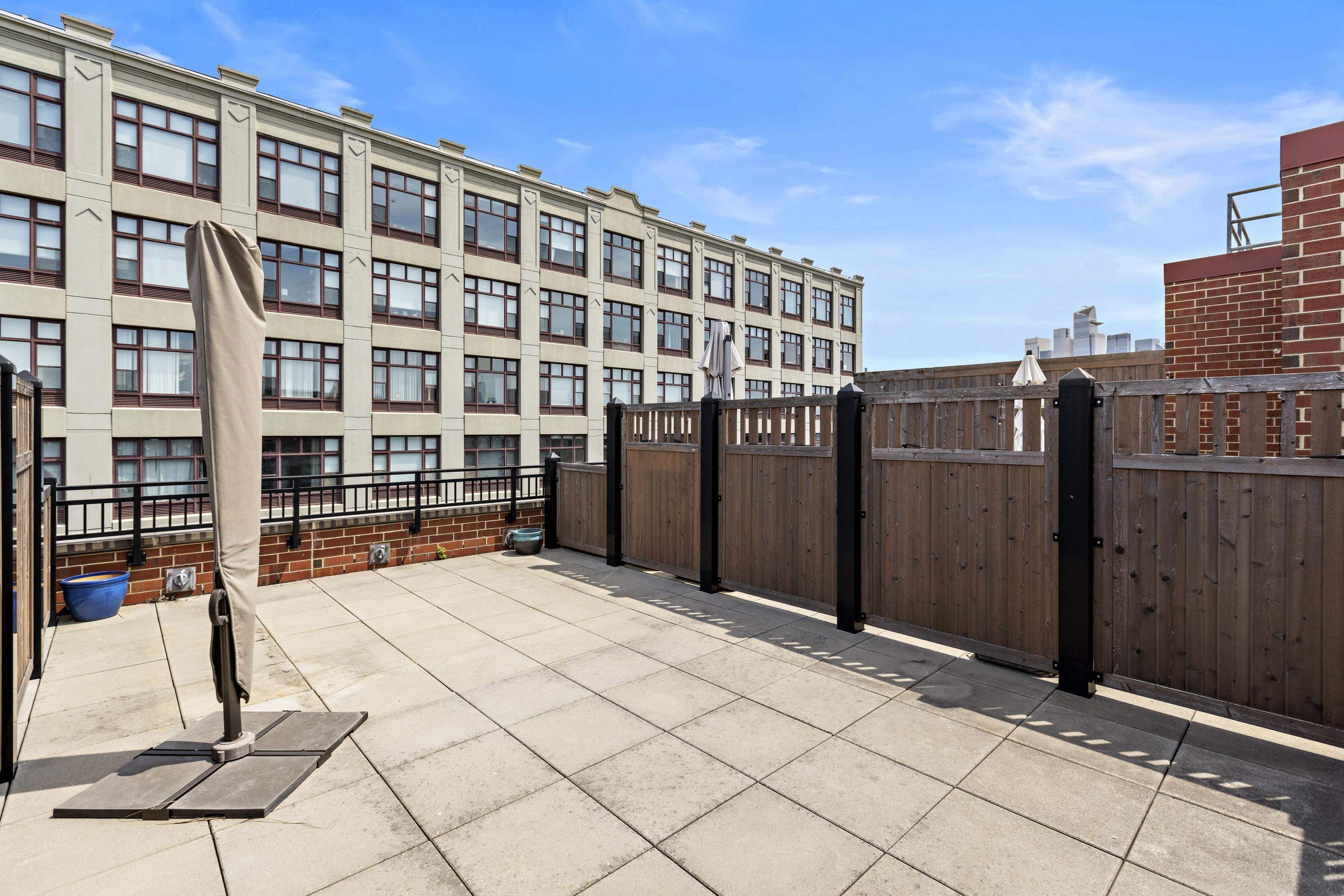 Move into this rare South-facing 900 sqft, 1 bedroom, 1.5 bathroom home in the Luxury Waterfront Building, 1400 Hudson! This home comes with a deeded private rooftop terrace featuring stunning NYC views. Home features oak hardwood floors throughout, tons of natural light, and ample closet space. Spacious open concept kitchen with quartz counter tops, Bosch ss microwave, Thermador refrigerator, & oven/range gas. Building has world-class amenities including two gyms, game room, pool, resident’s lounge, 24 hour concierge, children’s playroom, and rooftop terrace with outdoors BBQ and TV. Washer/Dryer included in the unit. Easy commute to NYC with shuttle service to the path and steps away from both the NJ Transit bus and NY Waterway Ferry. Close to Trader Joe’s located 3 blocks away. Move-in Date: 4/1/26