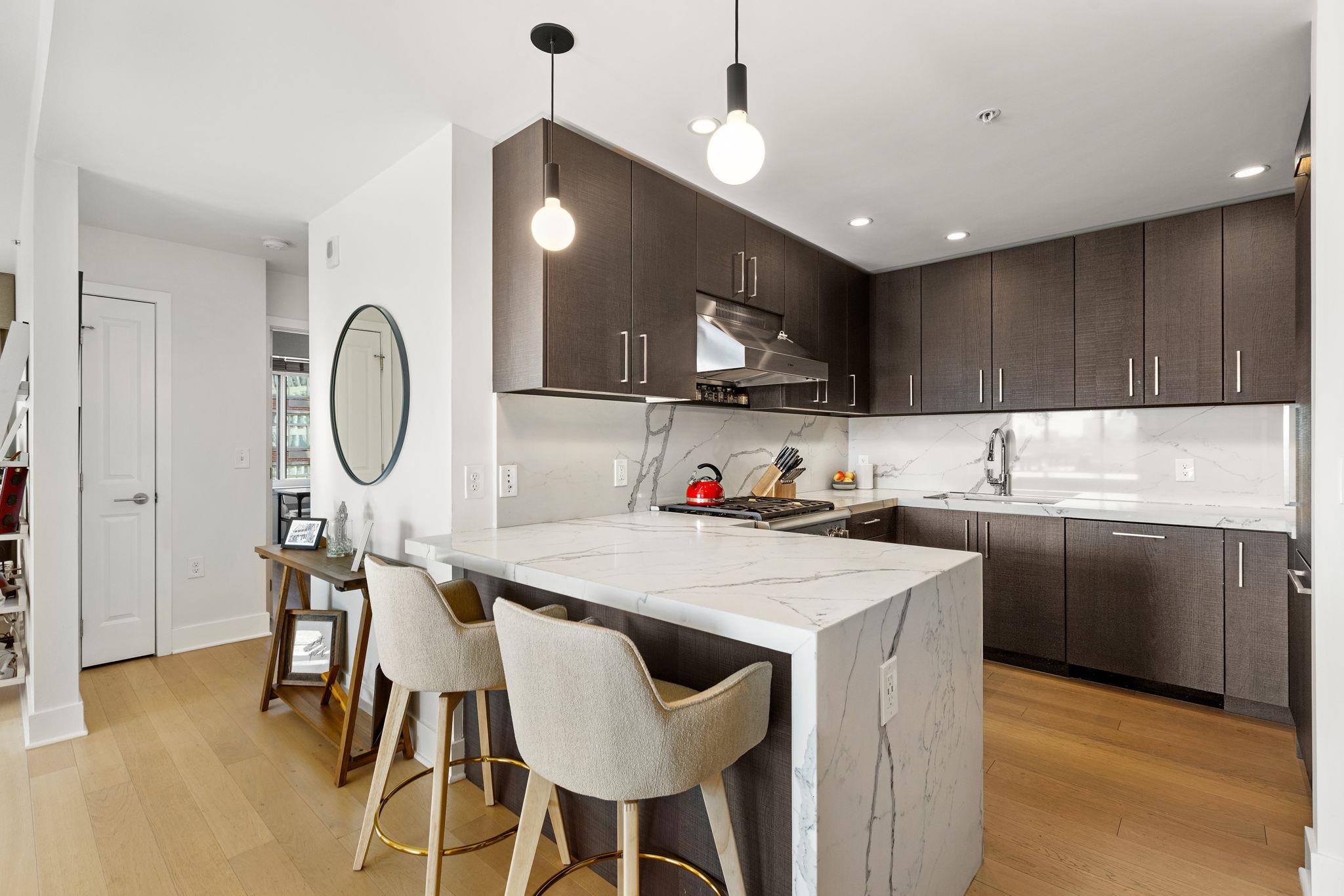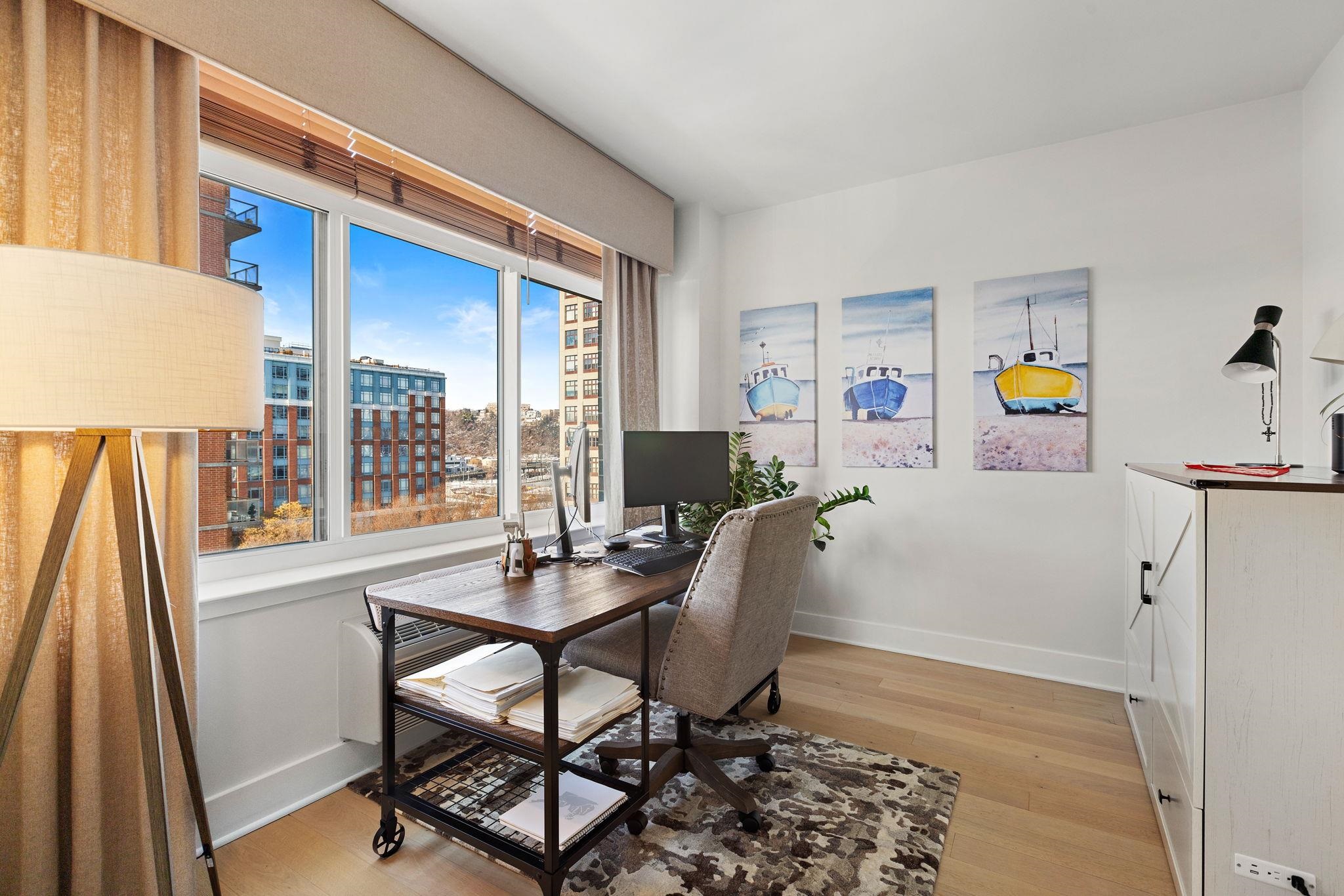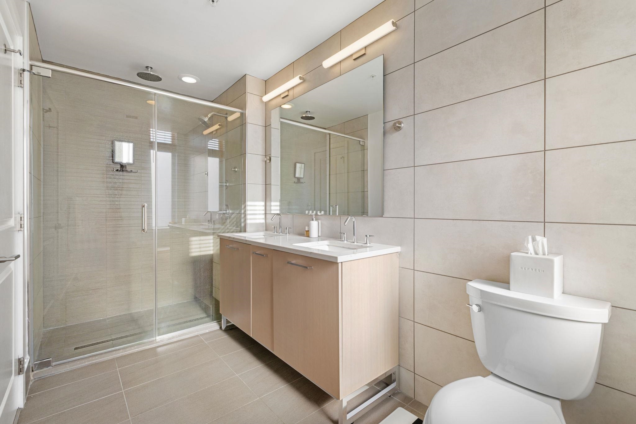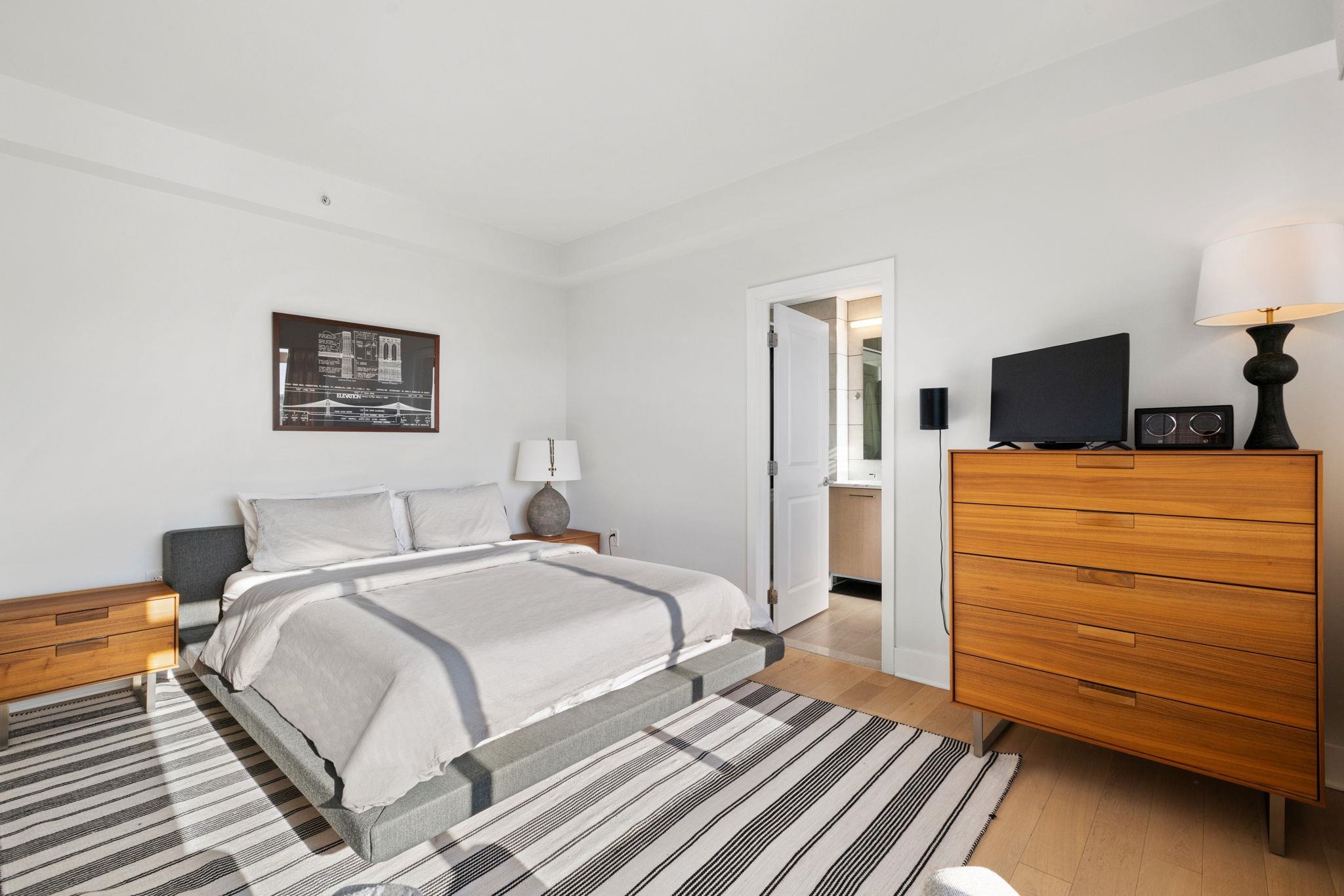 Rare 2 bed, 2 bath corner apartment with a private balcony in the luxury community of 1400 Hudson. The modern chef’s kitchen features Bosch & Thermador appliances, quartz countertops, and a breakfast bar. The expansive open floor plan has designated dining and living spaces and is filled with light all day long. Step out onto the updated balcony with custom wooden slat flooring and bask in beautiful south views of the WTC and Jersey City skyline. The spacious primary bedroom has a walk-in closet and ensuite bathroom with dual vanity. The second bedroom also has a walk-in closet. This home also includes wide-plank hardwood flooring, custom California closets in both bedrooms, living room, and the linen closet, custom window treatments, Nest thermostat, in-unit Whirlpool washer/dryer, and deeded parking spot #87. Building amenities include 24/7 concierge, yoga room, cardio gym, weight room, rooftop pool, residents lounge, billiards lounge, courtyard, several rooftops with firepits, BBQ grills, children’s playroom, and shuttle to and from the Path train. Located near shops, restaurants, the ferry and bus to NYC, and everything uptown Hoboken has to offer.