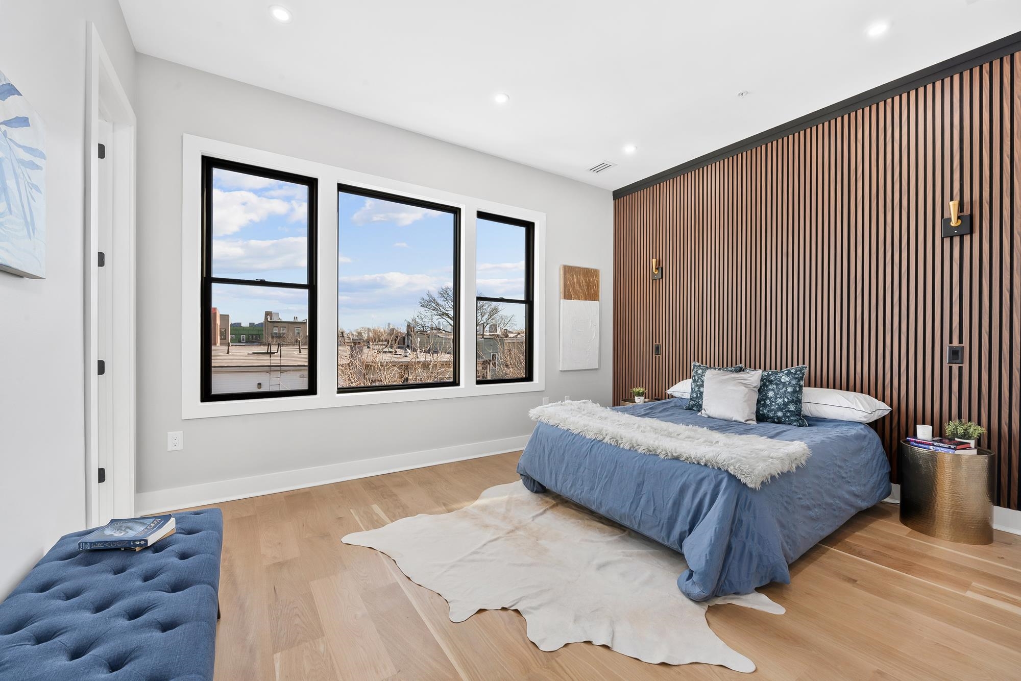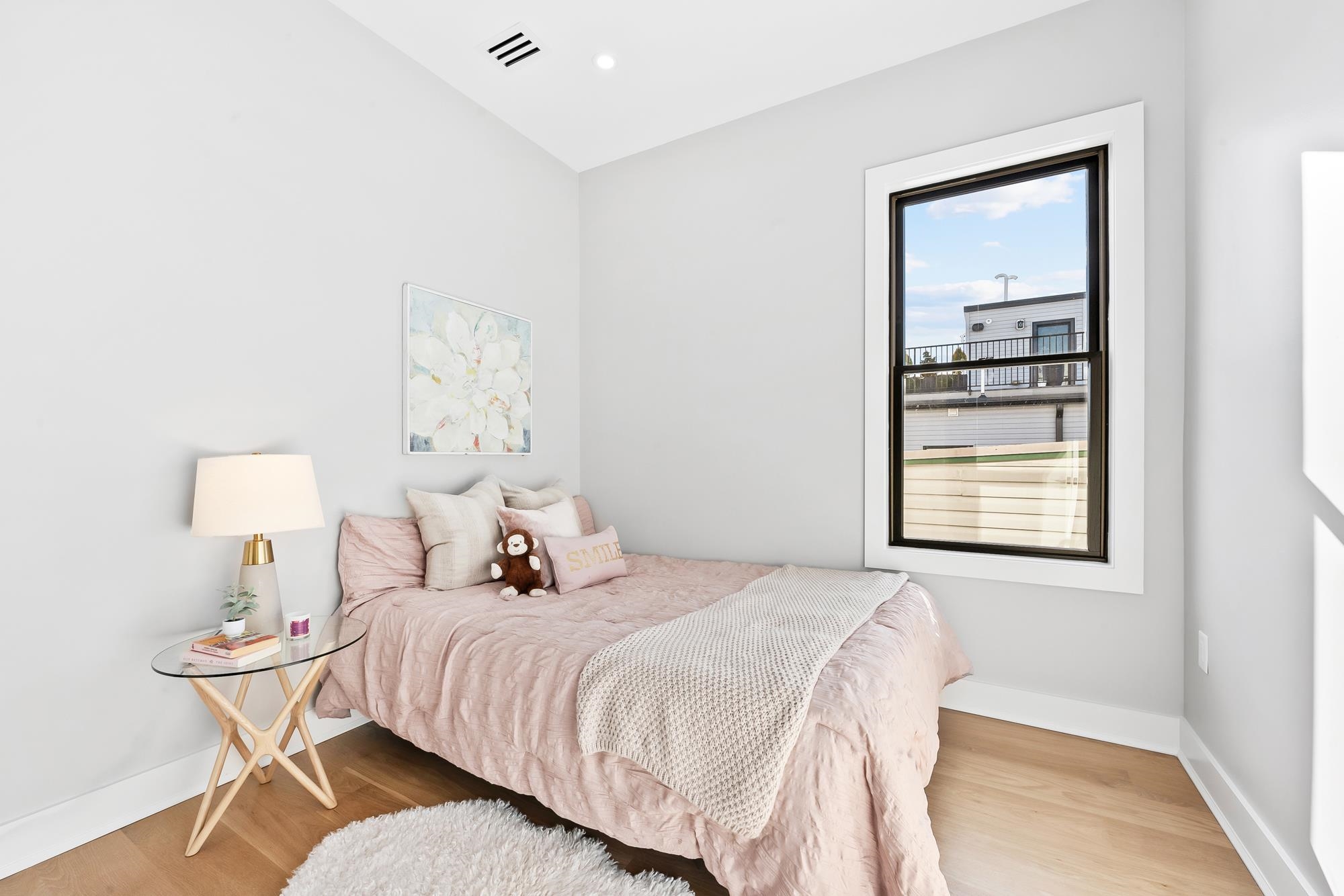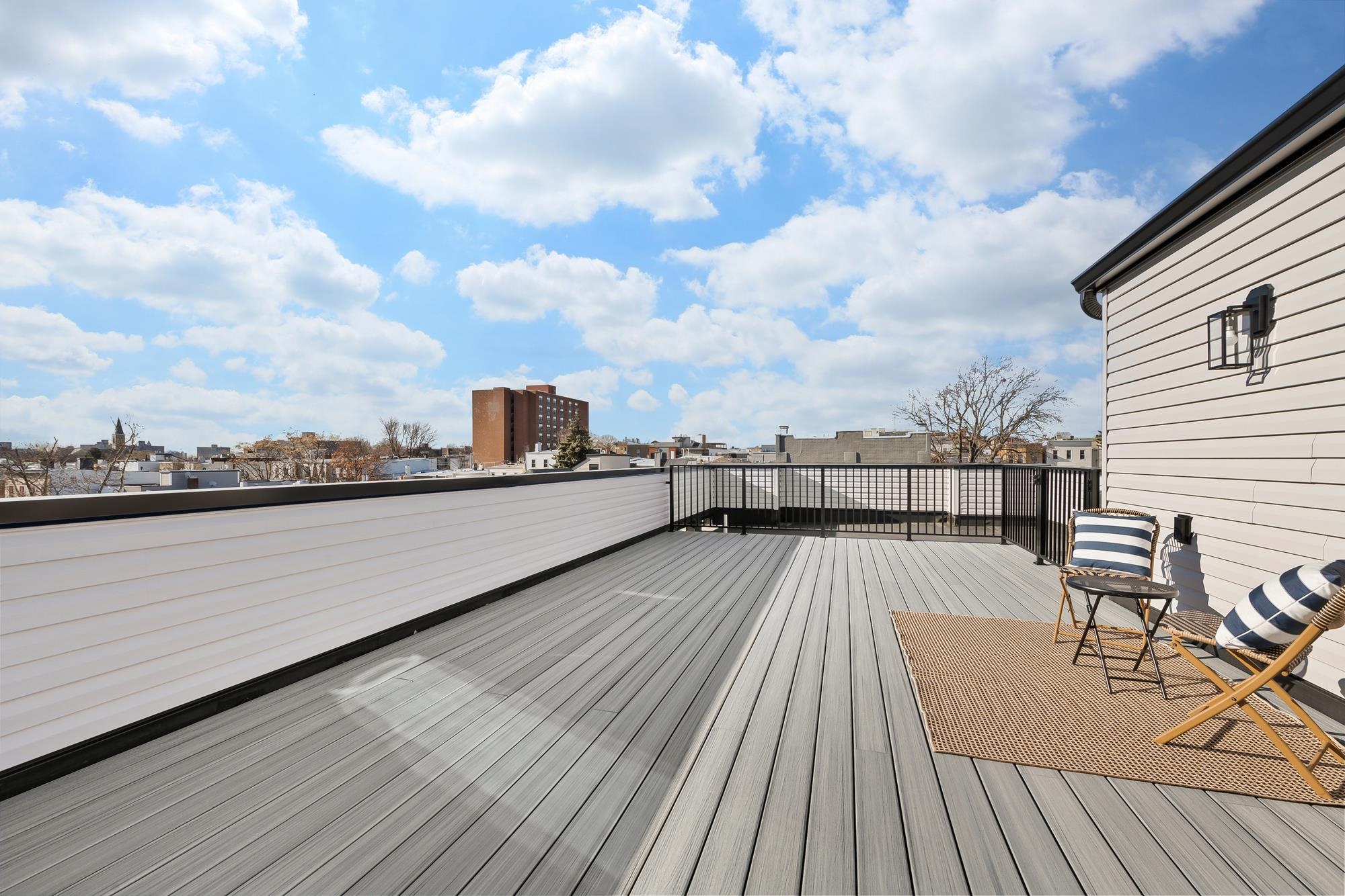 Welcome to 146 Sherman Ave, Unit 3, an elevated 3-bed, 2-bath condo crowned with a private rooftop deck showcasing breathtaking NYC skyline views. This top-floor residence offers an airy, sun-filled layout with hardwood floors, oversized windows, and a seamless open-concept design perfect for modern living. The contemporary kitchen features sleek cabinetry, quartz countertops, and stainless steel appliances, creating the ideal space for cooking, hosting, and gathering. The primary suite includes a beautifully finished en-suite bathroom with a soaking tub and generous custom built closet space, while two additional bedrooms provide versatility for guests, a home office, or a nursery. Both bathrooms are outfitted with high-end fixtures and stylish tilework for a clean, modern aesthetic. The standout feature of Unit 3 is the exclusive private roof deck, a rare retreat with panoramic views of the Manhattan skyline. Perfect for summer lounging, outdoor dining, or hosting unforgettable gatherings, this rooftop oasis elevates your lifestyle in every way. Situated in the heart of Jersey City Heights, you’re moments from Central Avenue’s vibrant shops and eateries, local parks, and convenient transportation to NYC. Experience luxury living with unmatched skyline views. Unit 3 at 146 Sherman Ave is truly one of a kind.