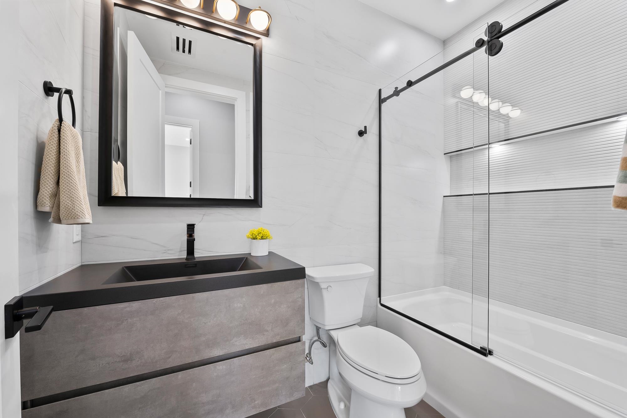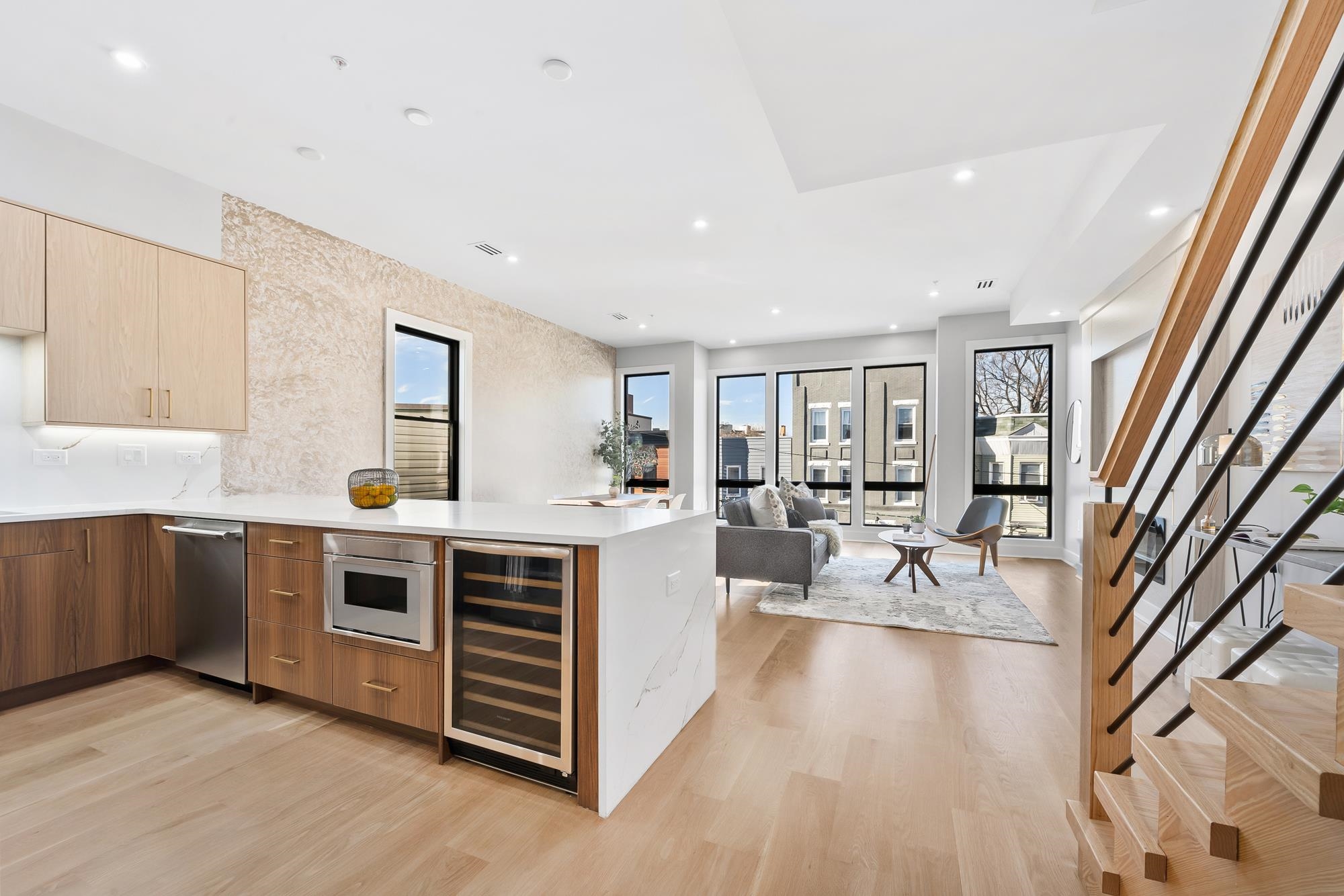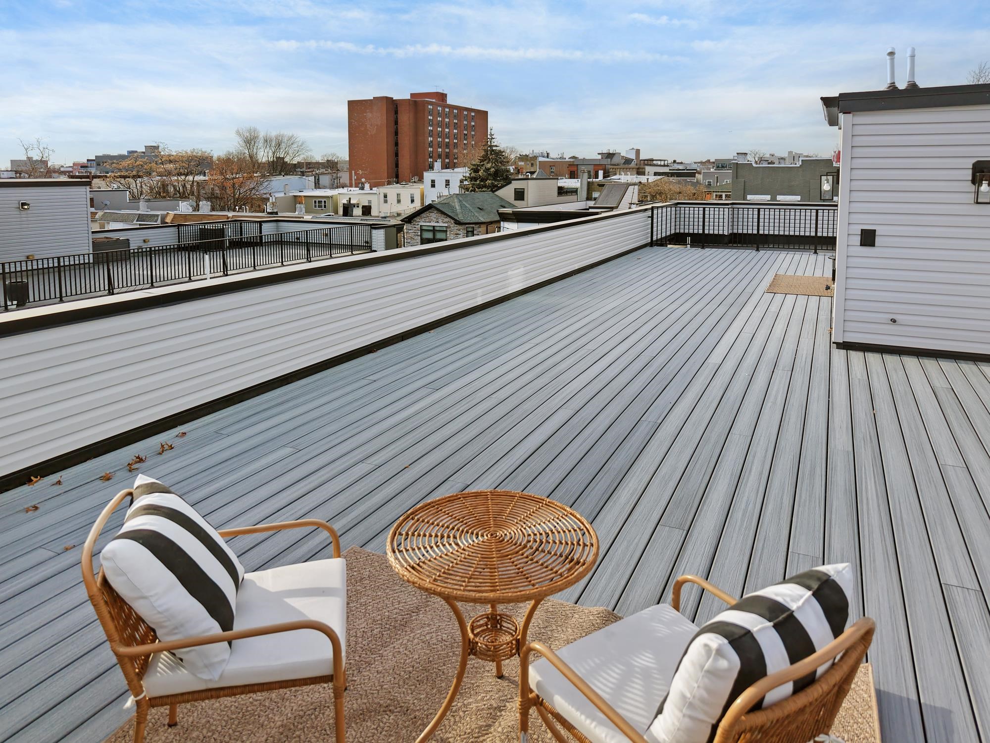 Welcome to 146 Sherman Ave, Unit 3, an elevated 3-bed, 2-bath condo crowned with a private rooftop deck showcasing breathtaking NYC skyline views. This top-floor residence offers an airy, sun-filled layout with hardwood floors, oversized windows, and a seamless open-concept design perfect for modern living. The contemporary kitchen features sleek cabinetry, quartz countertops, and stainless steel appliances, creating the ideal space for cooking, hosting, and gathering. The primary suite includes a beautifully finished en-suite bathroom with a soaking tub and generous custom built closet space, while two additional bedrooms provide versatility for guests, a home office, or a nursery. Both bathrooms are outfitted with high-end fixtures and stylish tilework for a clean, modern aesthetic. The standout feature of Unit 3 is the exclusive private roof deck, a rare retreat with panoramic views of the Manhattan skyline. Perfect for summer lounging, outdoor dining, or hosting unforgettable gatherings, this rooftop oasis elevates your lifestyle in every way. Situated in the heart of Jersey City Heights, you’re moments from Central Avenue’s vibrant shops and eateries, local parks, and convenient transportation to NYC. Experience luxury living with unmatched skyline views. Unit 3 at 146 Sherman Ave is truly one of a kind.