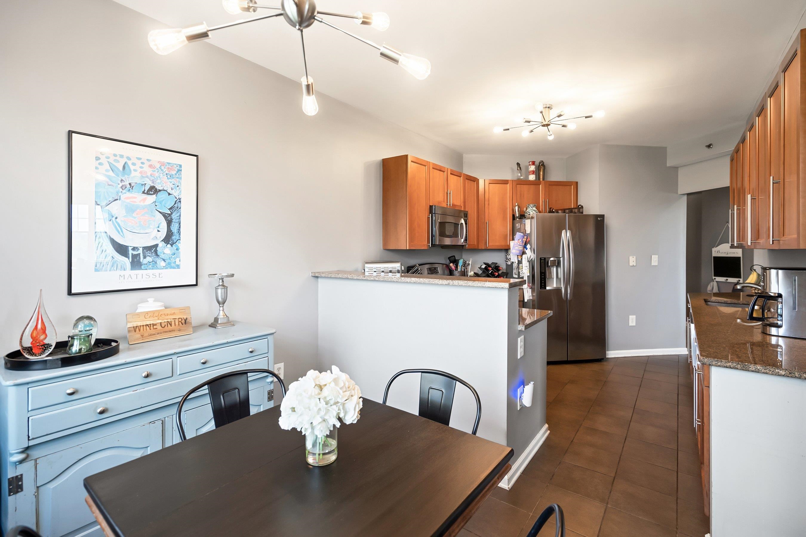 JUST LISTED!!! – Modern Urban Elegance! – Corner condo with open floor plan allows free flowing use of space. The sunlight is terrific in this home! Formal entryway with gleaming wood flooring leading to generous living/dining space. The turret adds architectural detail to the room and French door leads to your own private balcony. Large eat-in kitchen with granite counters, gas cooking, ss appliances, tasteful lighting and tons of cabinet space. Luxurious primary suite with walk-in closet. Primary bath with soaking tub, separate shower and double sink vanity. Guest bedroom is on the opposite side of the home with use of the hallway guest bath. Guest bath offers subway tile, granite countertop, accent marble wall and 2 linen closets in the hallway. Owner is offering a $10,000 credit at closing for the replacement of the flooring. This is with an acceptable offer. Completing this lifestyle are security systems and full Port Liberte amenity package including 24 hour peace of mind gated security, professional style fitness facility, two outdoor pools, tennis, basketball, fenced dog run, tot lot, garage parking, waterfront promenades and so much more! Easy NYC commute via on-site high speed ferry or on-site Shuttle to the Grove St PATH. Just minutes to all major highways and Newark Liberty Airport. A Must See!