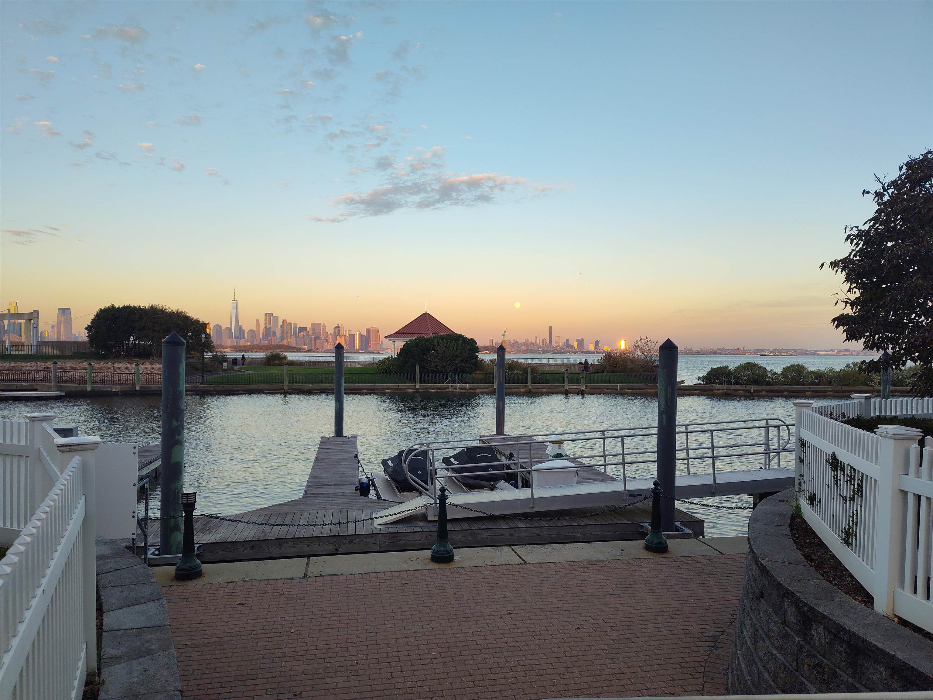 Privacy with golf course and city views from this top floor, 795 sq. ft, one bed, one bath, with balcony. Located on a quiet cul de sac in the private gated waterfront community of the Port Liberté condominium complex. Conveniences include washer/dryer in unit and smart lights & blinds. Onsite ferry to Wall Street and shuttle to Grove Steet PATH station. Assigned parking for one vehicle and ample street parking. Cooking gas and water included. Port Liberté condominium membership includes 24-hour on-site gated security, fitness center, swimming pools, tennis courts, basketball court, parks, clubhouse, dog park, playground and canal with boat slips for hire/rent. Photos taken previously.