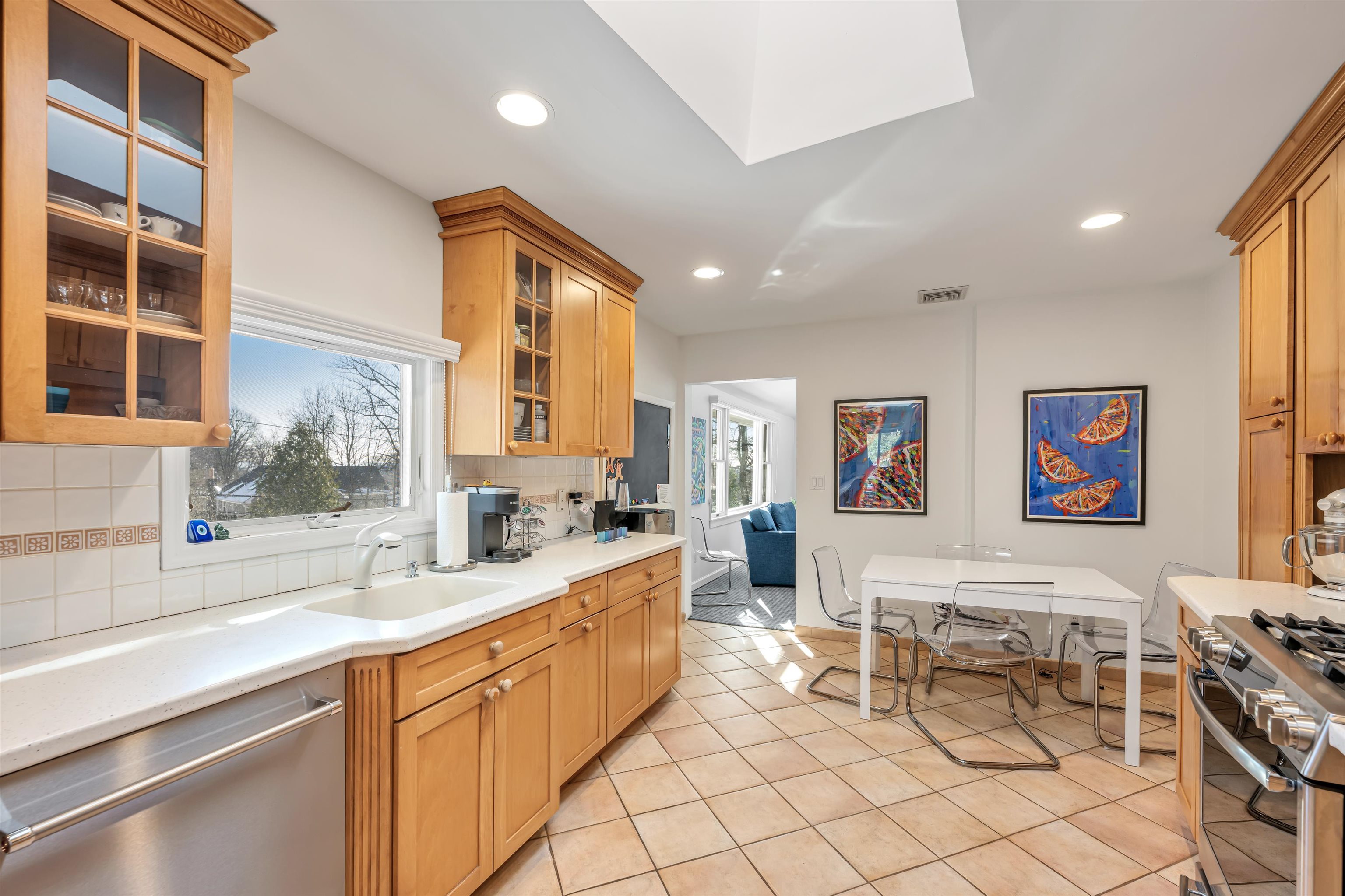 Opportunity Knocks! Welcome to this elegant and expansive ranch offering 4 bedrooms, 2 full baths, and 2 half baths, ideally situated on the Woodcliff Lake/Hillsdale border. Offering refined single-level living with a beautifully finished walk-out lower level, this home seamlessly blends comfort, style, and versatility. A gracious entry foyer opens to sun-filled interiors, including a formal living room with fireplace and sliding doors to an oversized deck—perfect for indoor/outdoor entertaining. An exquisite formal dining room and an eat-in kitchen highlighted by rich wood cabinetry complete the main living spaces. The inviting family room is a standout, featuring soaring ceilings and custom built-ins, creating an exceptional setting for both relaxed everyday living and elevated entertaining. A discreet powder room adds convenience. The primary suite serves as a private retreat with an en-suite bath and walk-in closet. Three additional generously sized bedrooms and a full bath provide flexibility and comfort, along with a versatile sitting area or home office. The fully finished walk-out lower level expands the living space and includes a bar, home theater with seating, half bath, dedicated laundry area, and abundant storage. Additional highlights include a two-car garage, a lovely patio, and a beautifully scaled yard with a basketball court—ideal for recreation and outdoor enjoyment. Owner’s will require a lease back for 60 days. BEST AND FINAL DUE WEDNESDAY AT 5PM