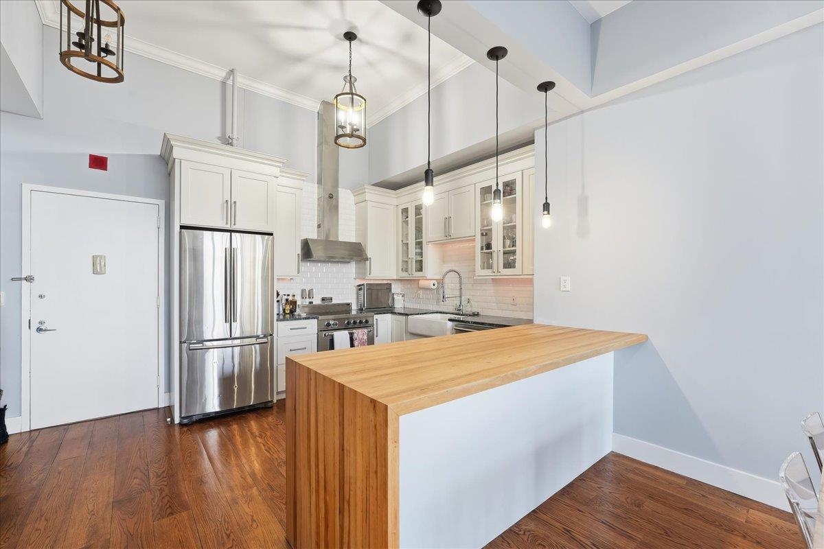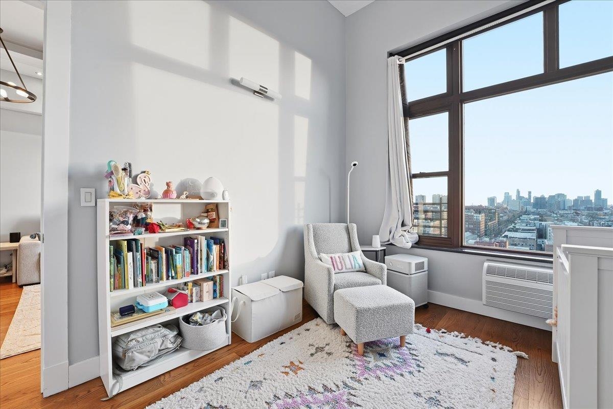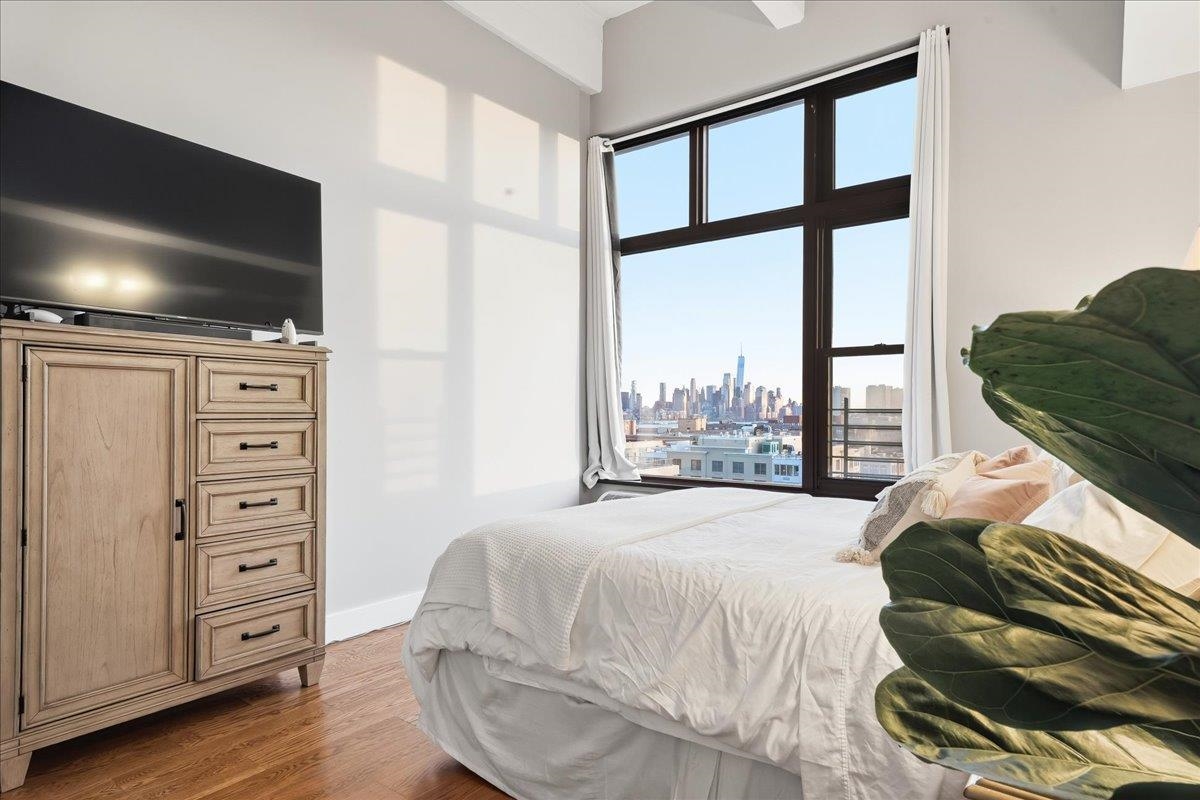 Residence 11M, generously upgraded from every inch, is a truly remarkable sundrenched South-facing 2 bed + den/office, 2 full bath home, perched high atop the iconic Hudson Tea Building on the banks of the Hudson River with breathtaking views of the Downtown Manhattan skyline, from your plentiful walls of 10 foot picture windows, outfitted with custom Shade Store blinds throughout. Upon entry, the striking, open concept chef’s kitchen will blow you away with its unique vaulted ceiling, Soapstone counters, butcher block peninsula with waterfall edge & pendants overlooking the dining area, Bertazzoni range/hood, Electrolux dishwasher, Sharp undercounter microwave, Built-in 2-zone 28 bottle Wine fridge, Kohler Farmhouse sink & fixtures. This spacious and thoughtfully designed “M Line” residence is like none you’ve seen before with its split bedroom layout and rarely available, designated private office/WFH space, not 1 but 3 massive overhead storage lofts, stunning 5″ wide plank white oak hardwood floors, & stately 8 foot tall doors. The private, king sized primary suite is outfitted with an unparalleled, massive custom TCS walk through closet leading to your truly spa-like ensuite bath with double sink vanity, washlet system, linen closet, glass enclosed 3-mode custom shower in master bath with Hansgrohe rain head, handheld, and body sprays, heat lamps and upgraded ventilation. The second bedroom also has plenty of room for a king or queen bed, a double custom Elfa closet system, and incredible panoramic views and the 2nd bath is thoughtfully upgraded to include a chic floating double farmhouse sink & penny tile flooring! Rounding out this generously sized loft is full-sized, front loading laundry in-unit, recessed lighting fixtures throughout, and covered parking space included at the 1450 Laz Garage conveniently located across the street! The luxe amenities of Hudson Tea, offering a full suite of services including a 24-hour concierge, nearly 3000 sqft gym with Pelotons and included fitness classes, stunning resident’s lounge with private dining room offering Midtown views, a new free WFH space, redesigned kid’s playroom, 3 high-speed elevators, free shuttle to/from PATH, dry cleaner, Choc O Pain French cafe & fromagerie onsite, and resident’s courtyard with fire pit perfect for alfresco dining. Additional amenities include bike & add’l on site resident’s storage. Located directly on the Uptown Hudson River waterfront, enjoy proximity to neighboring Harborside & Maxwell Parks, boutique shopping, outdoor eateries, Soul Cycle, Pilates, spas, Cork Wine shop, and easy access to transportation including the Direct 14th St Ferry to Midtown & WFC. With Trader Joe’s, Whole Foods, farmer’s market, and Urban Market groceries now open, every convenience is at your doorstep.