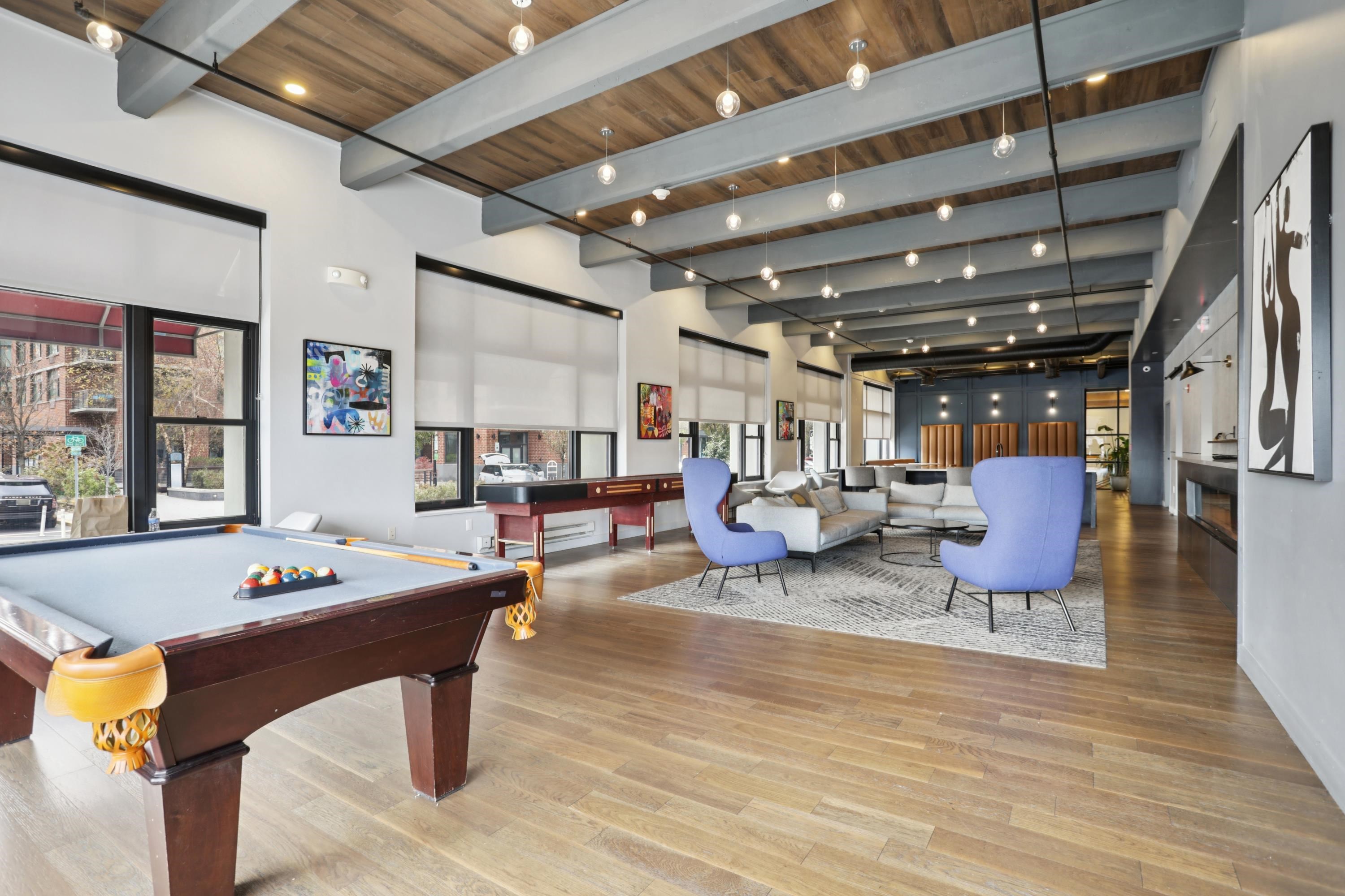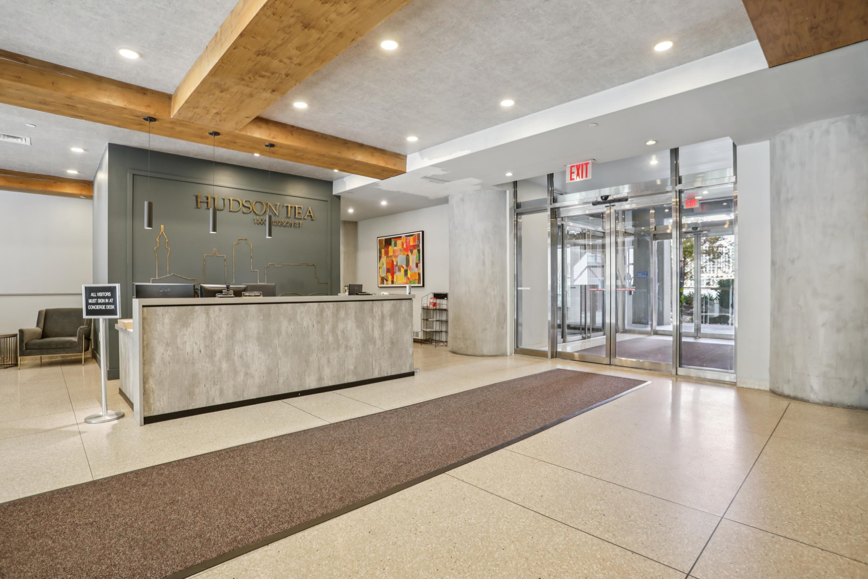 Experience elevated living at its finest in this uptown 1-bedroom residence at the highly coveted Hudson Tea Building, one of Hoboken’s most sought-after waterfront properties. Perched on one of the top floors, this spacious unit boasts soaring ceilings, rich dark wood floors, laundry in-unit, and oversized windows enhanced with brand-new custom motorized blinds, creating a bright, airy, and sophisticated atmosphere throughout. Residents of Hudson Tea enjoy an unmatched suite of amenities, including an attentive 24/7 concierge, large fitness center, a stylish resident lounge with pool table, flat-screen TVs, a full kitchen and bar, a kids’ playroom, designated work-from-home area, and a beautifully designed outdoor courtyard with firepits and ample seating. On-site conveniences continue with the beloved Choc-O-Pain Café just downstairs and a dry-cleaning service, while a free private shuttle to and from the PATH and close proximity to the Uptown Ferry make commuting a breeze. Outside your door, you’ll find every neighborhood luxury – a pilates studio, spa, cafés, and the Urban Market grocery – right across the street. Offering the best of both comfort and location, this well-kept space stands out as a premier opportunity in one of Hoboken’s top full-service buildings.
