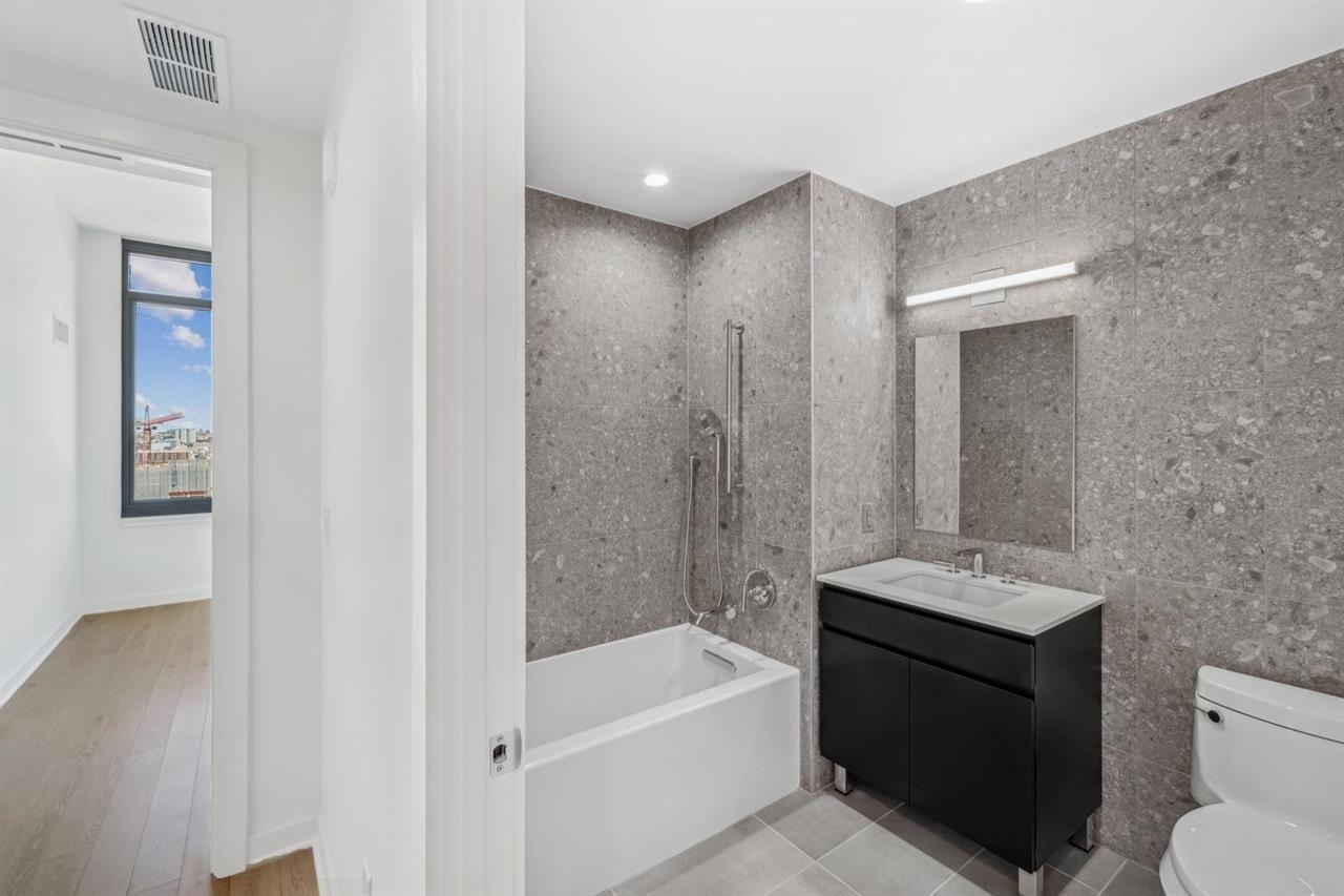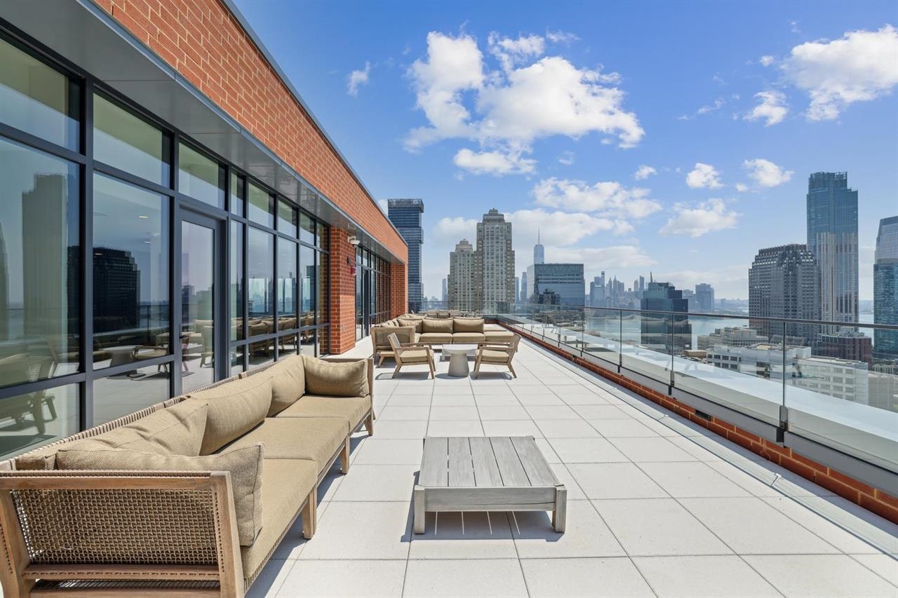 Experience elevated city living in this beautifully designed one-bedroom residence located in a premier luxury high-rise building, 151 Bay Street by Toll Brothers. This light-filled apartment features large picture windows with stunning city views, an open-concept layout, and high-end finishes throughout. The modern kitchen is equipped with premium Bosch stainless steel appliances, quartz countertops, and custom cabinetry, seamlessly flowing into the spacious living and dining area – perfect for entertaining or relaxing at home. The generously sized bedroom offers excellent closet space and a serene retreat, while the spa-inspired bathroom showcases a large soaking tub, designer fixtures and elegant tilework. Hardwood flooring and in unit washer/dryer punctuate this incredible condo. Residents enjoy access to an exceptional suite of amenities, including a state-of-the-art fitness center, 24-hour concierge, sky lounge, rooftop terrace, fitness center, sundeck & pool, children’s playroom, and game room. Ideally located near top dining and shopping, this residence combines luxury, comfort, and convenience in one of Jersey City’s most sought-after buildings. Only a few blocks from the Grove Street PATH station, commuting into NYC is a breeze. Welcome home!