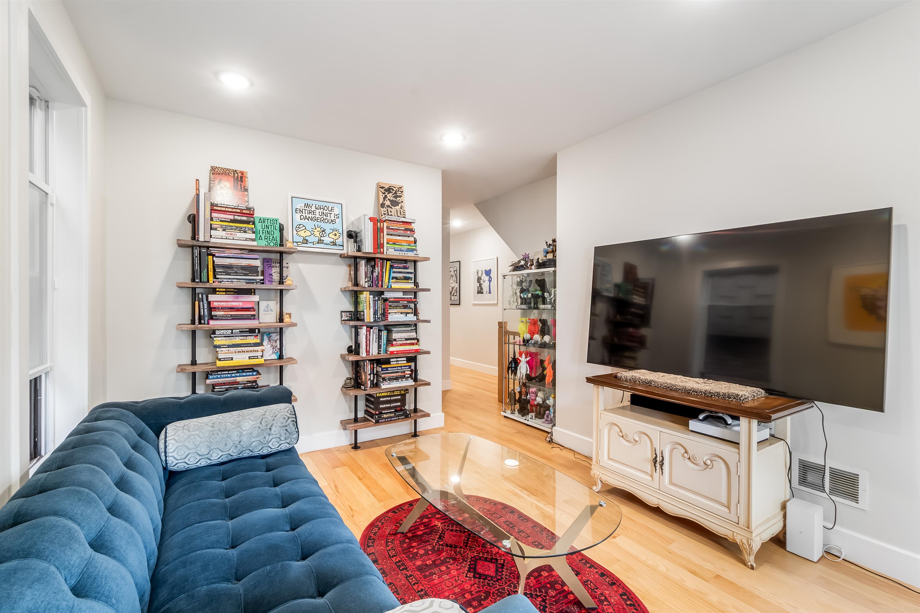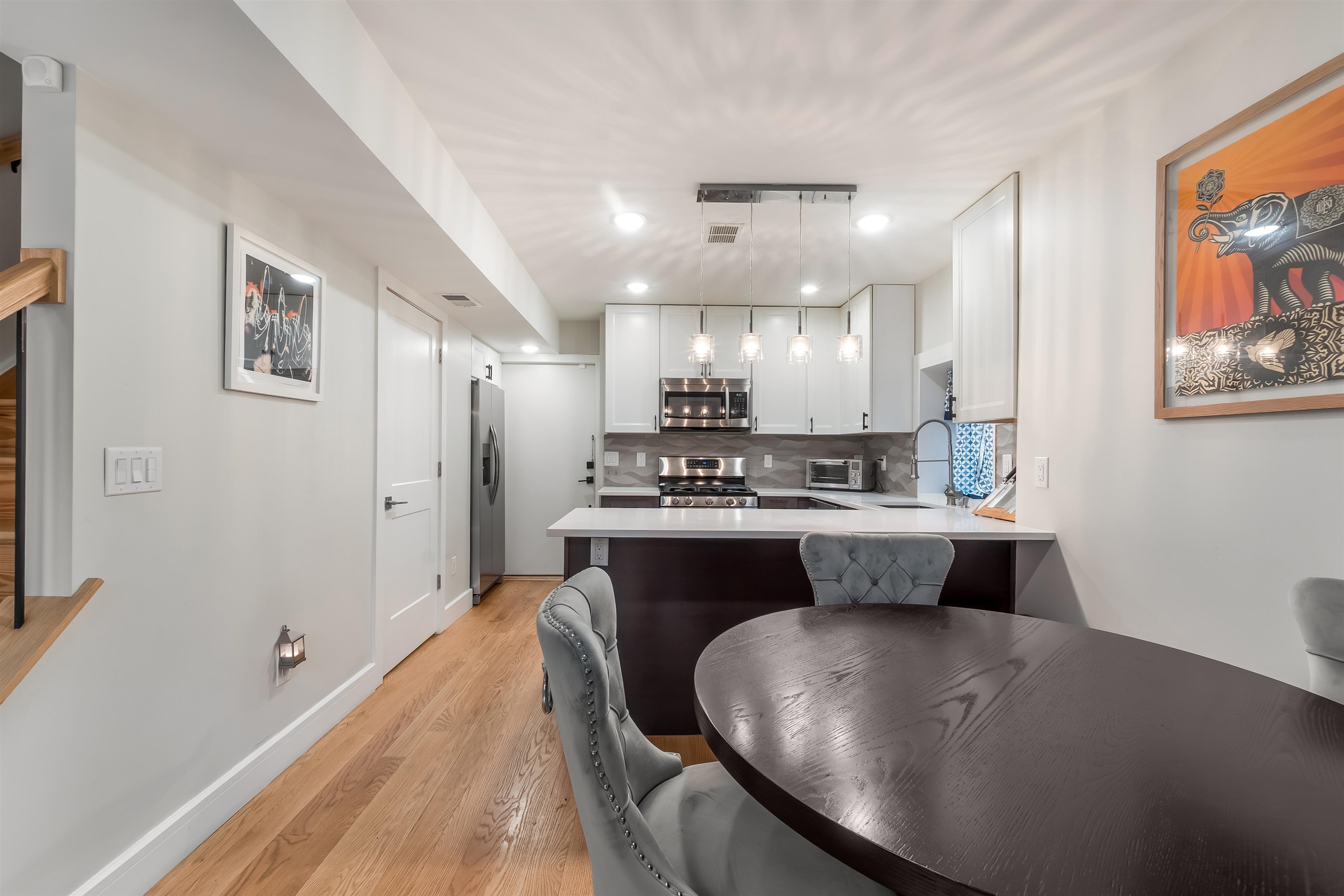 Welcome to 152 Beach Street, Unit 1, in the heart of Jersey City Heights, where contemporary flair harmonizes with cozy comfort, adding a dash of charisma to create your personal retreat. This 3-bedroom, 2.5-bathroom duplex condo is more than just a home; it’s a lifestyle. Step into the expansive chef’s kitchen featuring sleek quartz countertops and custom wood cabinetry that could inspire your next masterpiece. Equipped with stainless-steel appliances, cooking becomes a breeze, and you can savor your creations al fresco in your private two-tier backyard. Venture upstairs to find three inviting bedrooms. The primary suite is a haven of modern luxury, boasting a chic en-suite bathroom with a floating vanity, double sink, and step-in shower, alongside his and her walk-in closets. The two additional bedrooms offer ample space for rest and relaxation, each thoughtfully designed with custom-built closets featuring organizational systems. The open living area, adorned with Red Oak floors and a charming Juliet balcony, invites abundant sunlight, creating the perfect ambiance for both relaxation and entertaining. Not to be overlooked, this home is equipped with central air conditioning and heating, an in-unit washer and dryer, and a tandem garage parking spot with extra storage closets. Conveniently situated near parks, local shops, and culinary delights, and with easy access to highways and the Holland Tunnel, your commute will be as smooth as your morning coffee. Welcome home!