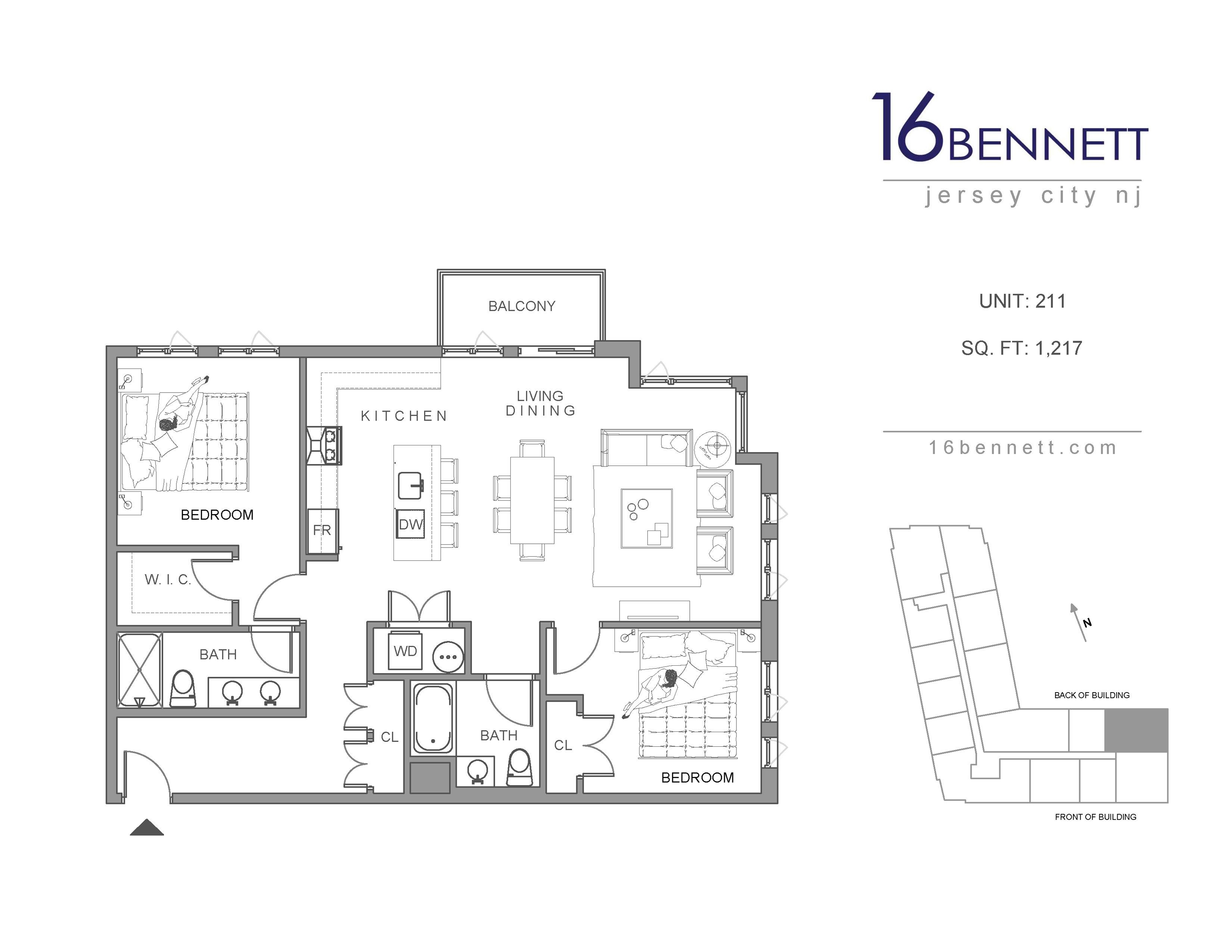 *Pictures are of a similar unit. Come and see this gorgeous and modern two bedroom, two bathroom apartment PLUS balcony, located at 16 Bennett St. in Jersey City! The building offers keyless entry, a luxurious roof deck that offers panoramic views of New York City, West New Jersey, and the Hackensack River. Also included are a communal gym and back yard with gas grills and a fire pit. The units have massive living spaces to match with high end finishes. The apartments boast large walk in closets, and include full size washer and dryers. With sprawling hardwood floors throughout and high end stainless steel appliances, no detail has been spared in creating the perfect rental apartment living experience. 16 Bennett offers free shuttle service to the JSQ PATH Station. Starbucks is available in front of the building, and parking is available for an additional monthly fee.
