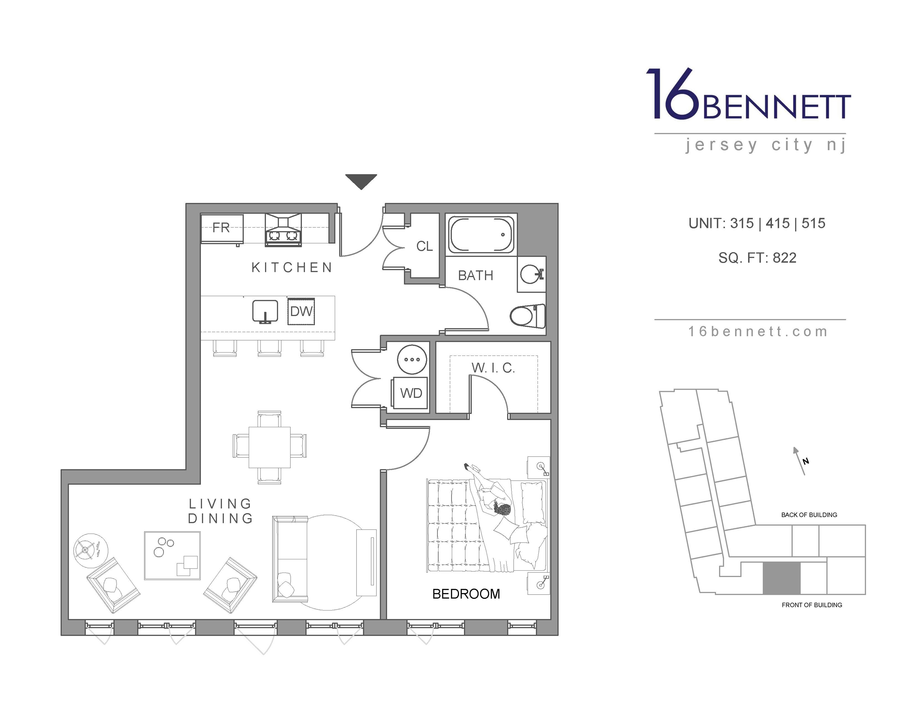 Come check out this gorgeous and modern one bedroom apartment located at 16 Bennett St. in Jersey City! The building offers keyless entry, a luxurious roof deck that offers panoramic views of New York City, West New Jersey, and the Hackensack river. Also included are a communal gym and back yard with gas grills and a fire pit. The units have massive living spaces to match with high end finishes. The apartments boast large walk in closets, and include full size washer and dryers. With sprawling hardwood floors throughout and high end stainless steel appliances, no detail has been spared in creating the perfect rental apartment living experience. 16 Bennett offers free shuttle service to the JSQ PATH Station. Starbucks is available in front of the building, and parking is available for an additional monthly fee.