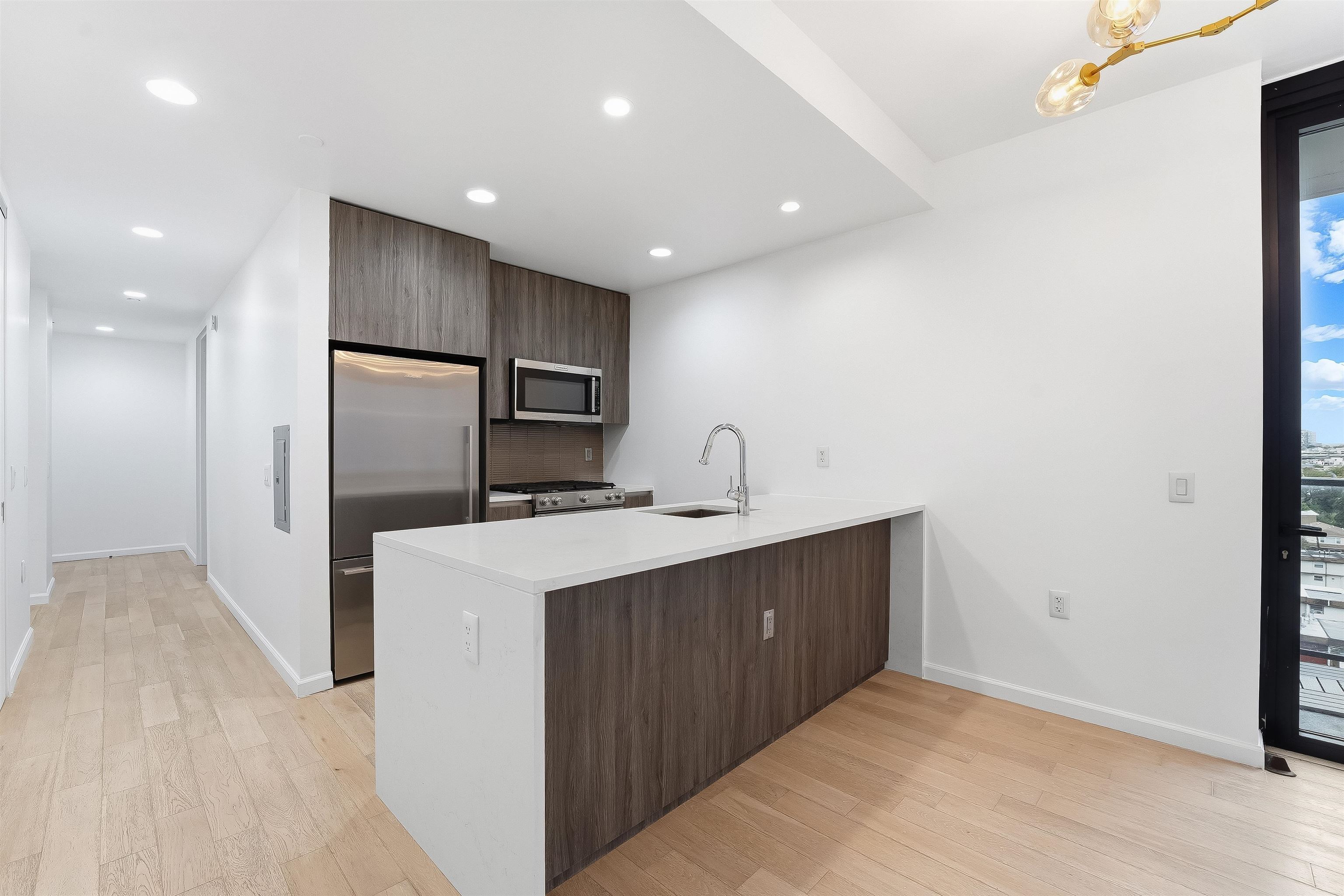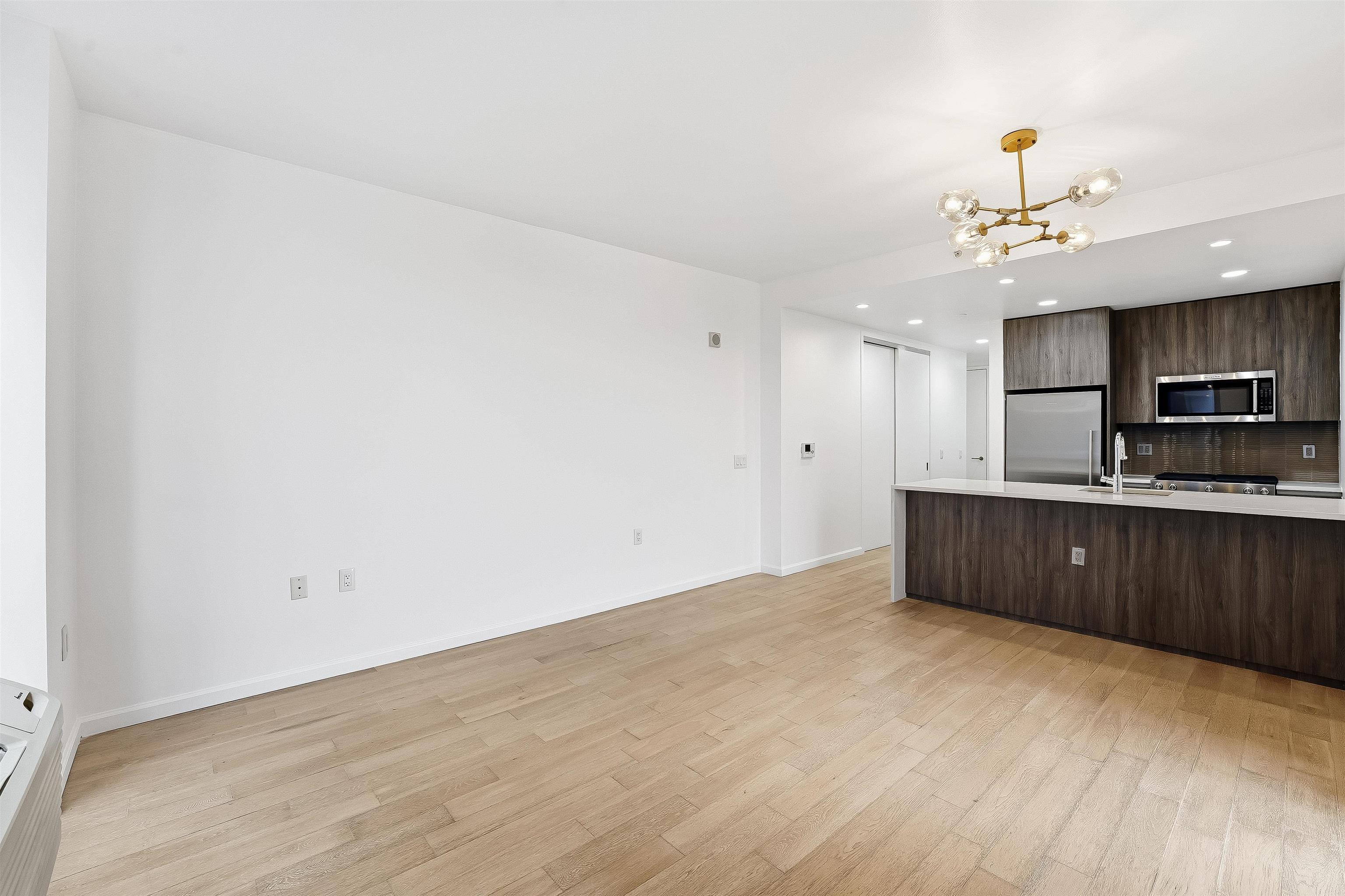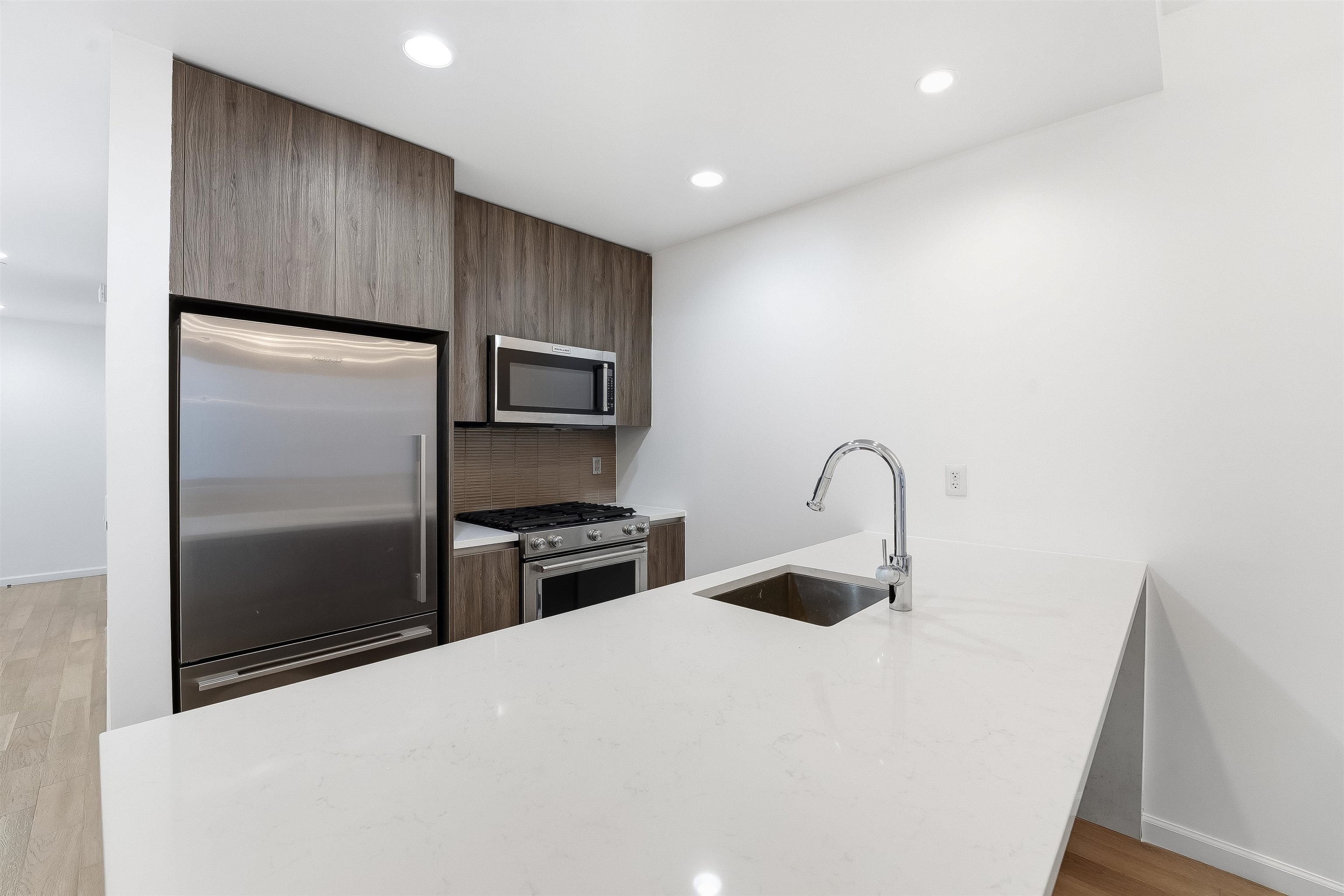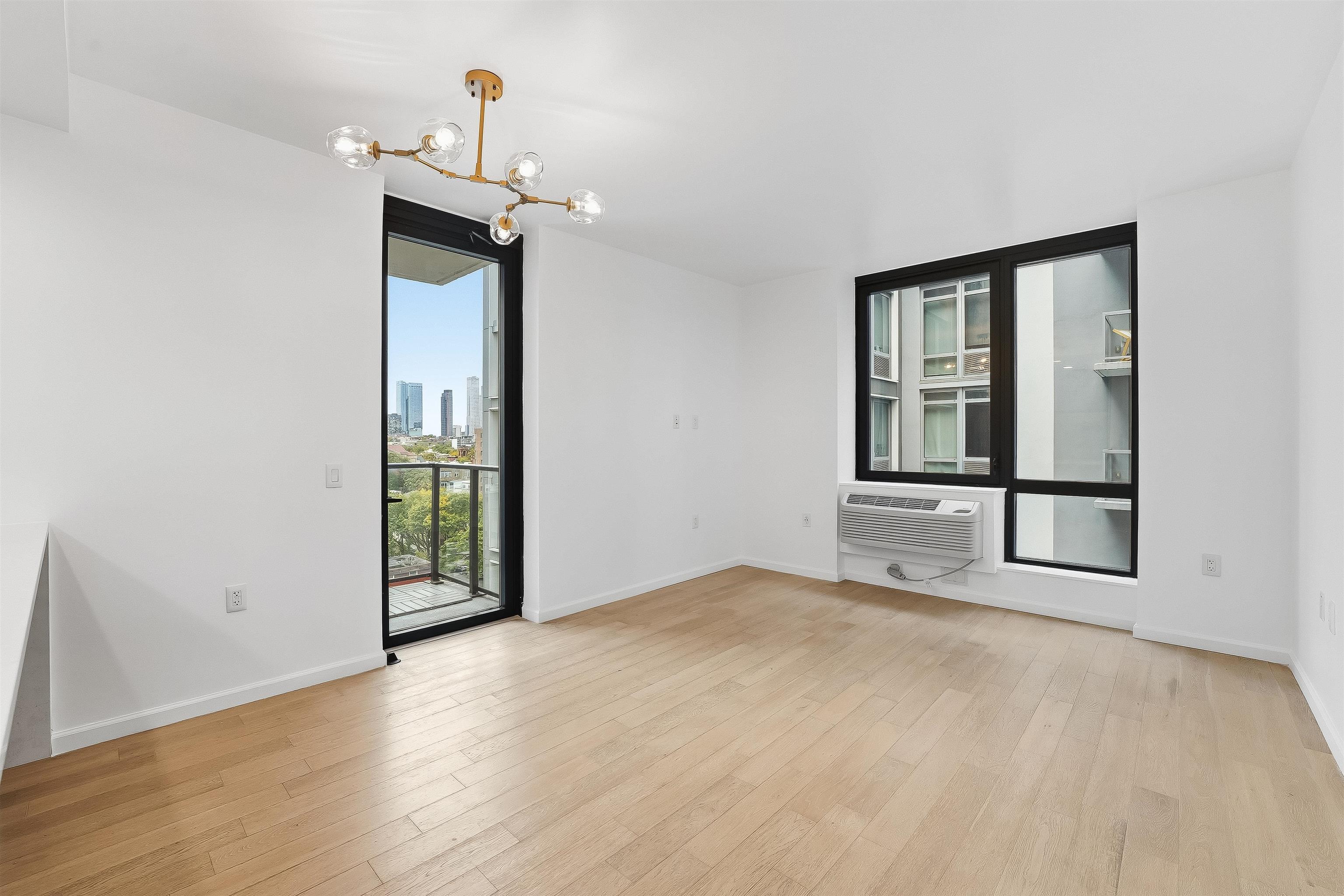Experience refined urban living in this stunning NW corner home with the largest 1 bedroom layout with private terrace in The Oakman, one of Downtown Jersey City’s most sought-after full-service condominiums. Fully equipped Chef’s kitchen showcases Italian Pedini cabinetry, stone countertops, and premium appliances by Bosch, Miele, and Bertazzoni, complemented by luxurious Kohler and Hansgrohe fixtures.Thoughtfully designed, this home features 9’ ceilings, and 5” wide brushed white oak floors. Sunlight floods the space through oversized windows, highlighting the seamless blend of comfort and style. Step onto your expansive private terrace to take in scenic city views—perfect for relaxing or entertaining. Residents of The Oakman enjoy an exceptional suite of amenities, including a rooftop pool, BBQ grills, outdoor fireplace, fitness center, children’s playroom, resident lounge, library, pet spa, bike and cold storage, 24-hour concierge, and on-site rental garage parking (additional fee). Ideally located in the heart of Downtown Jersey City, The Oakman is just three blocks from the Grove Street PATH, providing a quick seven-minute commute to NYC, with premier dining, shopping, and entertainment right outside your door. This residence also benefits from one of Jersey City’s most favorable tax abatements through 2036, with exceptionally low carrying costs.