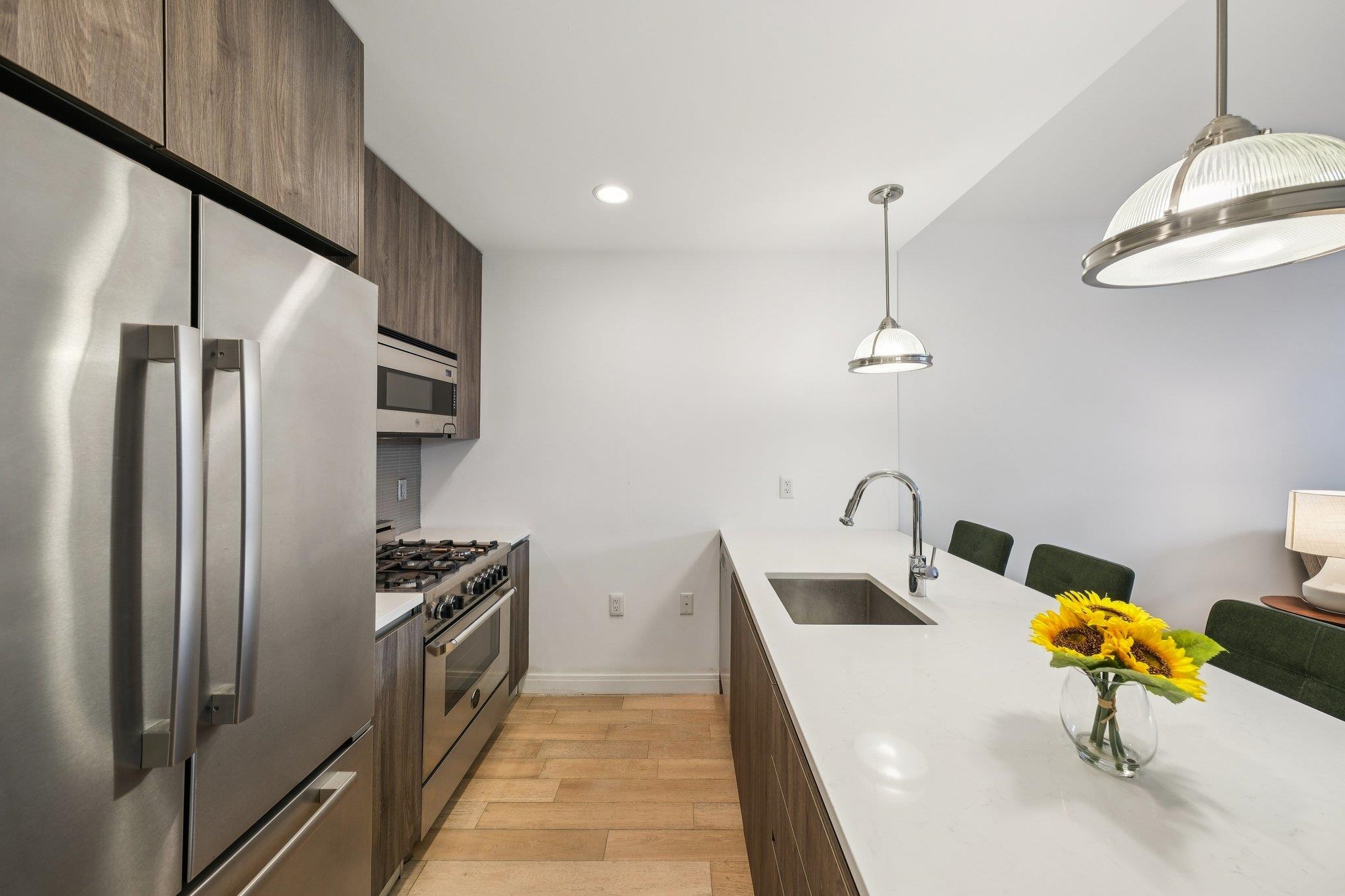 Discover sophisticated city living in this bright and spacious one-bedroom plus den residence at The Oakman, one of Downtown Jersey City’s premier luxury condominiums. A private terrace extends your living space outdoors, offering the perfect retreat for morning coffee. Inside, every detail has been thoughtfully crafted, from the wide-plank white oak floors to the custom Italian Pedini cabinetry. The gourmet kitchen is equipped with high-end appliances by Bertazzoni, Bosch, and Miele, while sleek fixtures from Kohler and Hansgrohe add a refined touch. Oversized windows fill the home with natural light, creating an airy, comfortable atmosphere that feels both modern and welcoming. Residents of The Oakman enjoy resort-style amenities including a rooftop pool with BBQ grills, a state-of-the-art fitness center, children’s playroom, resident lounge with fireplace, library, and convenient bike and cold storage. A 24-hour concierge and on-site garage parking (available for a fee) complete the full-service experience. Located just three blocks from the Grove Street PATH, The Oakman offers an easy commute to Manhattan and immediate access to Jersey City’s best restaurants, cafés, and shops. With an abatement in place through 2036, this home combines luxury, convenience, and exceptional value in the heart of Downtown Jersey City.