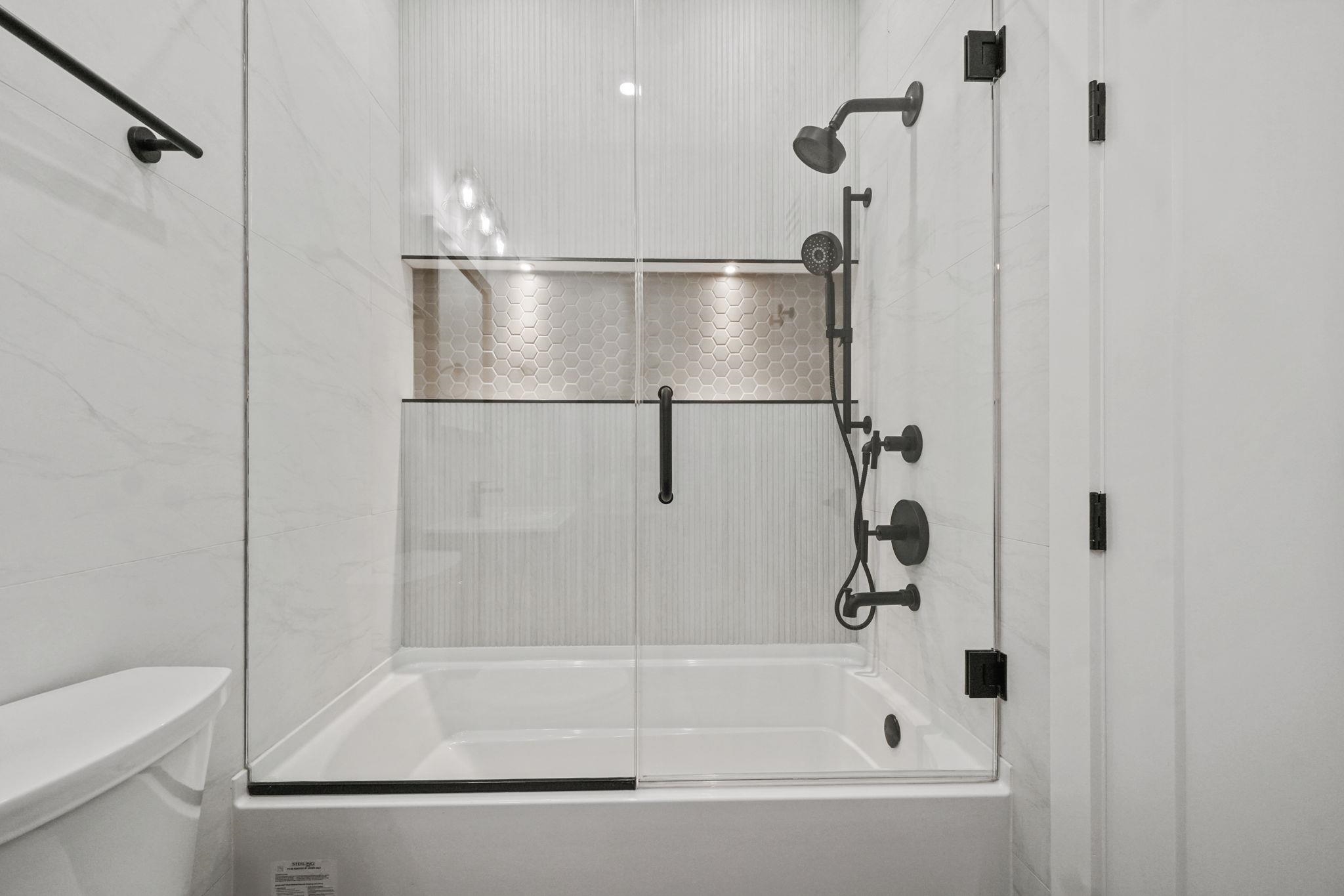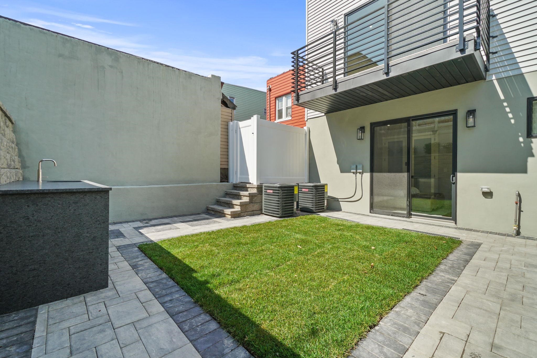 Seller offering up to 3 years of fenced in parking at 156 Central Ave! Welcome to 160 Central Ave Unit 1, a premier high-end new construction condo from NKAY Developers in the heart of Jersey City Heights, conveniently located across from Pershing Field Park. This first floor unit has a private entrance and features 3 bedrooms, 2 full baths, private backyard and secure rental parking just 2 doors down. Sleek kitchen is designed with top of the line stainless steel Bosch appliances, quartz waterfall counters and backsplash, oversized stainless steel sink, two-tone custom cabinetry, pot filler, stylish gold hardware and fixtures, and high-end pendant lighting. West facing living and dining room boast a fireplace framed with custom millwork, oversized Andersen windows, and a large closet under the stairs for additional storage. Main bedroom suite faces east and offers ample natural light with a sliding glass door, custom millwork accent wall with dual pendant lighting, walk-in closet with high-end custom built-in shelving and cabinets. Ensuite bathroom offers an oversized double vanity, floor-to-ceiling large format tiles, dramatic warm accent lighting, and a top of the line waterfall shower, sprayer, and jets. Each of the additional 2 bedrooms feature high end custom built-in closets. Washer/dryer in unit add to the convenience of the home. Private professionally landscaped backyard features grass surrounded by a paver patio and boasts a stainless steel kitchen complete with sink and gas/ electric hookups. The home is equipped with a smart doorbell, keyless entry, Legrand smart dimmers, and energy-efficient Nest thermostats. The exterior facade has been designed with modern yet timeless features, exterior lighting, professional landscaping, and a fenced-in front yard. The property comes with a 10-year warranty. Please note that square footage is approximate. Amazing location is just steps from tons of restaurants, shopping, transit options to the city, and the 13-acre park with a trail/path, reservoir, multiple sport fields, pool, ice rink, and much more!