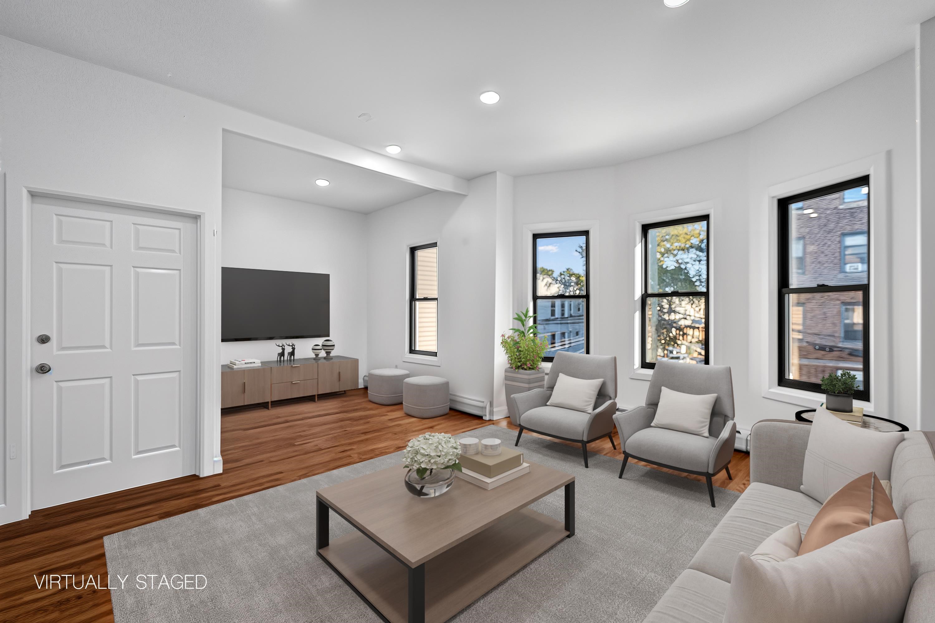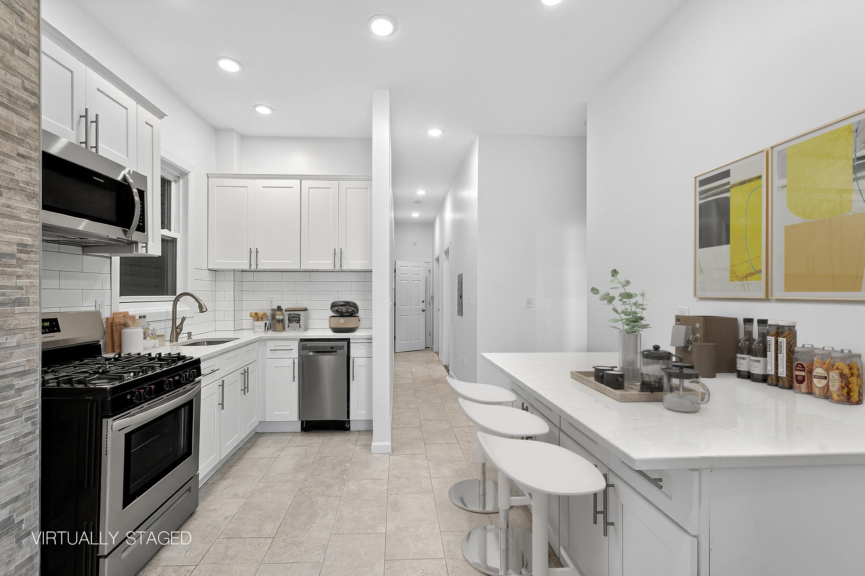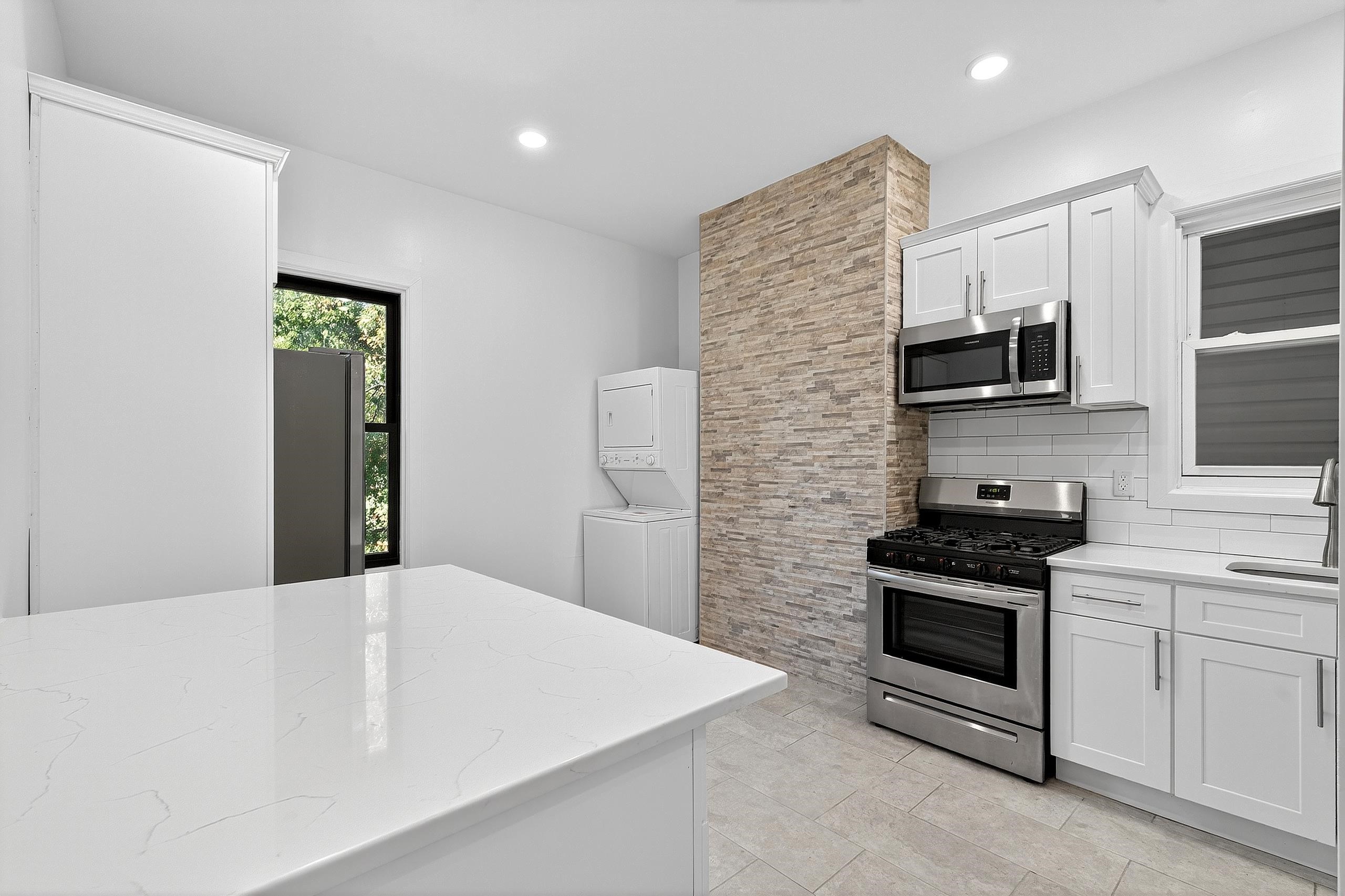Welcome to your new home! This newly renovated 3-bedroom, 1-bathroom apartment offers modern updates and convenient features throughout! Enjoy cooking in a brand new kitchen featuring beautiful cabinetry, stylish backsplash, and sleek stainless steel appliances, including a dishwasher, stove, refrigerator, and microwave. This unit includes its own washer and dryer for added convenience. Ideally situated near bus routes, the Light Rail, making commuting to NYC or other major highways a breeze. Some images are virtually staged.