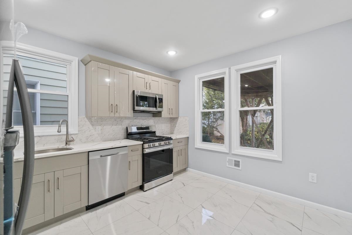 PARKING INCLUDED!! Welcome to this RARE 3 bedroom, 2 bath home situated on a tranquil dead-end street in Bayonne. This charming duplex offers 2 floors of living space (1st fl and basement). First floor includes an eat in kitchen, living room, 3 bedrooms and a full bathroom. Basement area includes an a very spacious living area, an office/den, private washer/dryer hookup and a full bathroom. What sets this unit apart is the luxury of modern amenities such as stainless-steel appliances, Hardwood floors throughout, high ceilings, central and forced hot air, reserved parking space for a hassle-free parking experience, and an abundant of storage space ensuring a comfortable and convenient lifestyle. To top it off, a private backyard for this unit only which will provide a perfect space for relaxation or enjoying a peaceful moment. This space offers an ideal combination of comfort and convenience. The property is located just blocks from 8th Street Light Rail, making your daily commute to New York City and other nearby destinations effortless. relaxation or enjoying a peaceful moment. This space offers an ideal combination of comfort and convenience. The property is located just blocks from 8th Street Light Rail, making your daily commute to New York City and other nearby destinations effortless. Don’t miss out on the opportunity to call this delightful, brand-new construction property in Bayonne your new home.