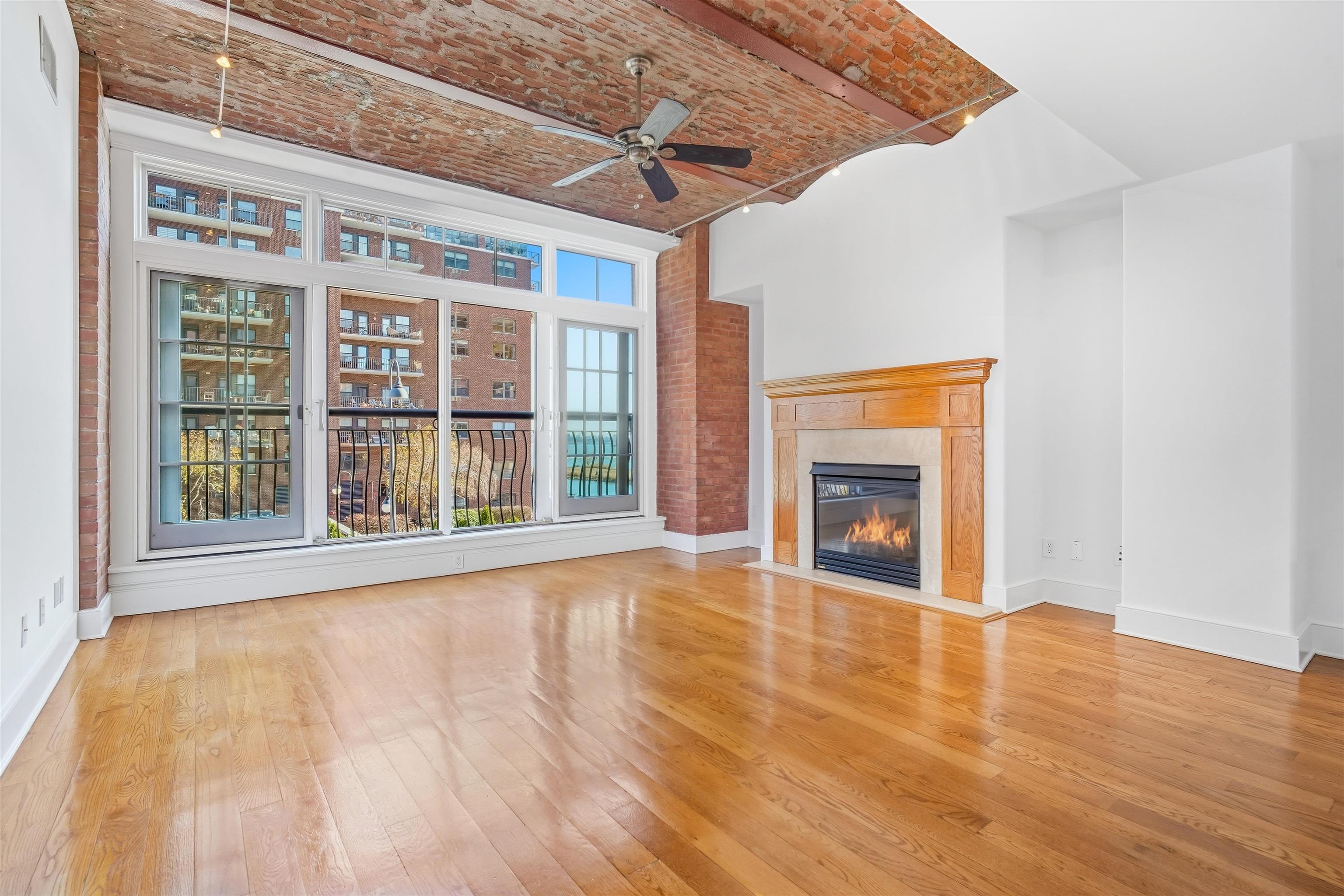 SUGAR HOUSE! Direct EAST facing 2 bed/2bath residence in JC’s most desirable building. Historic, barrel vaulted brick ceilings, gleaming hardwood floors, roaring gas fireplace, and massive glass wall of french sliders opening onto your private Juliette balcony overlooking the Hudson River. Chef’s kitchen with a full suite of Viking appliances including 6 burner range, vented range hood, oversized professional series refrigeration, cherry wood Ultracraft cabinetry. Massive primary suite with double California closets and tumbled marble bath with 2 person shower and soaking tub. Another beautiful spa bath and bedroom await on the opposite side of the residence for privacy. Want more? 1 garage parking space is included! The Paulus Hook icon, Sugar House, features 24-hour concierge/security, fully equipped gym with Pelotons, steam room, dry sauna, trainer changing rooms, lovely manicured resident outdoor terrace with mature plantings, professional grade bbq grills, lounge, dining, and play areas. Enjoy this magnificent neighborhood with the best dining, nightlife, shopping, parks, Hudson River promenade, and coveted PS16/Bradford school district. Minutes to NYC via 2 Path stations, NY Waterway, or auto. Hurry on this one!