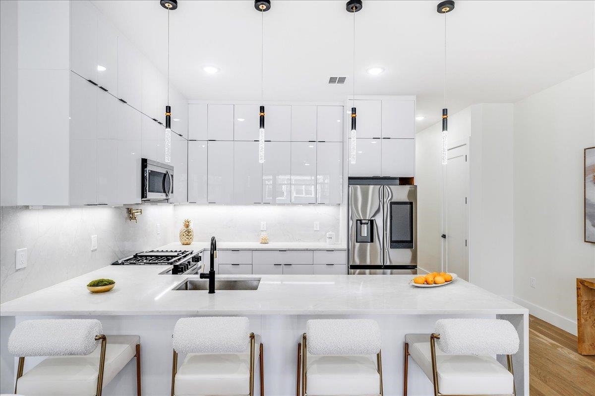 Brand-new 3-bedroom, 2.5-bathroom luxury condo duplex with 1 NON TANDEM PARKING SPOT option & LARGE PRIVATE BACKYARD , 177 Wilkinson sets a new standard for excellence, this residence boasts superior craftsmanship and attention to detail, making it truly stand out from the rest. From the moment you step inside, you’ll be captivated by the beautiful oak flooring that flows throughout and the thoughtfully designed open kitchen-living concept, perfect for entertaining or everyday living. The chef’s kitchen is nothing short of extraordinary, featuring exquisite marble countertops, a large peninsula with ample seating, high-end lighting, soaring ceilings, and Anderson windows that fill the space with natural light. The spacious master bedroom offers a true retreat, complete with a large private terrace, perfect for enjoying your morning coffee or unwinding in the evening. The lower level adds to the home’s appeal with a versatile recreation room and a convenient half bath, opening directly to a large, fenced-in private backyard—your own urban oasis. Unique to this property is the garage offering NON-TANDEM parking for one car plus a versatile bonus space, providing unparalleled convenience. With a 5-year tax abatement and a 10-year home builder’s warranty, this property offers unmatched value and peace of mind. Designed for those who demand nothing but the best, this is a rare opportunity to own a home that exceeds expectations.