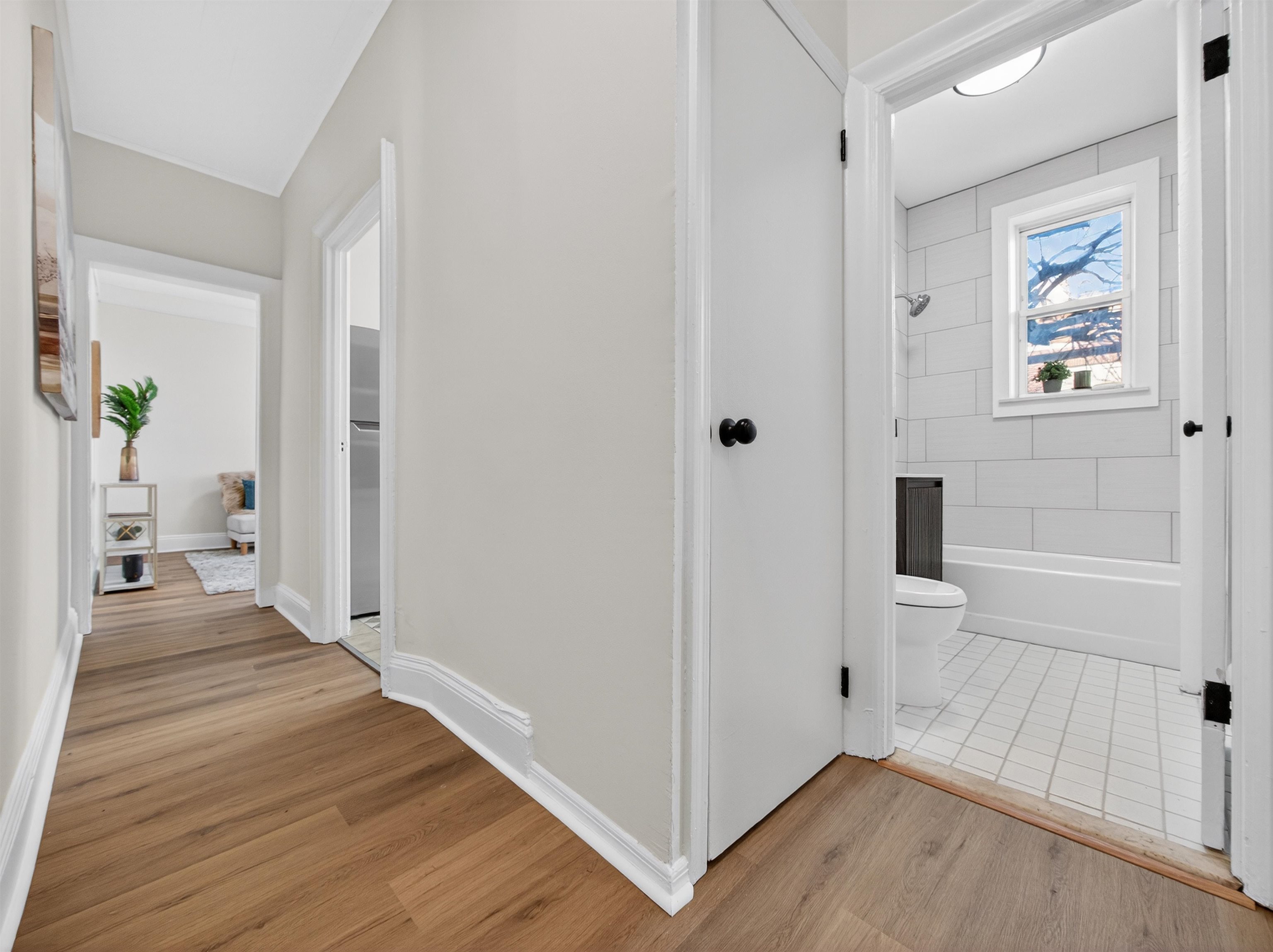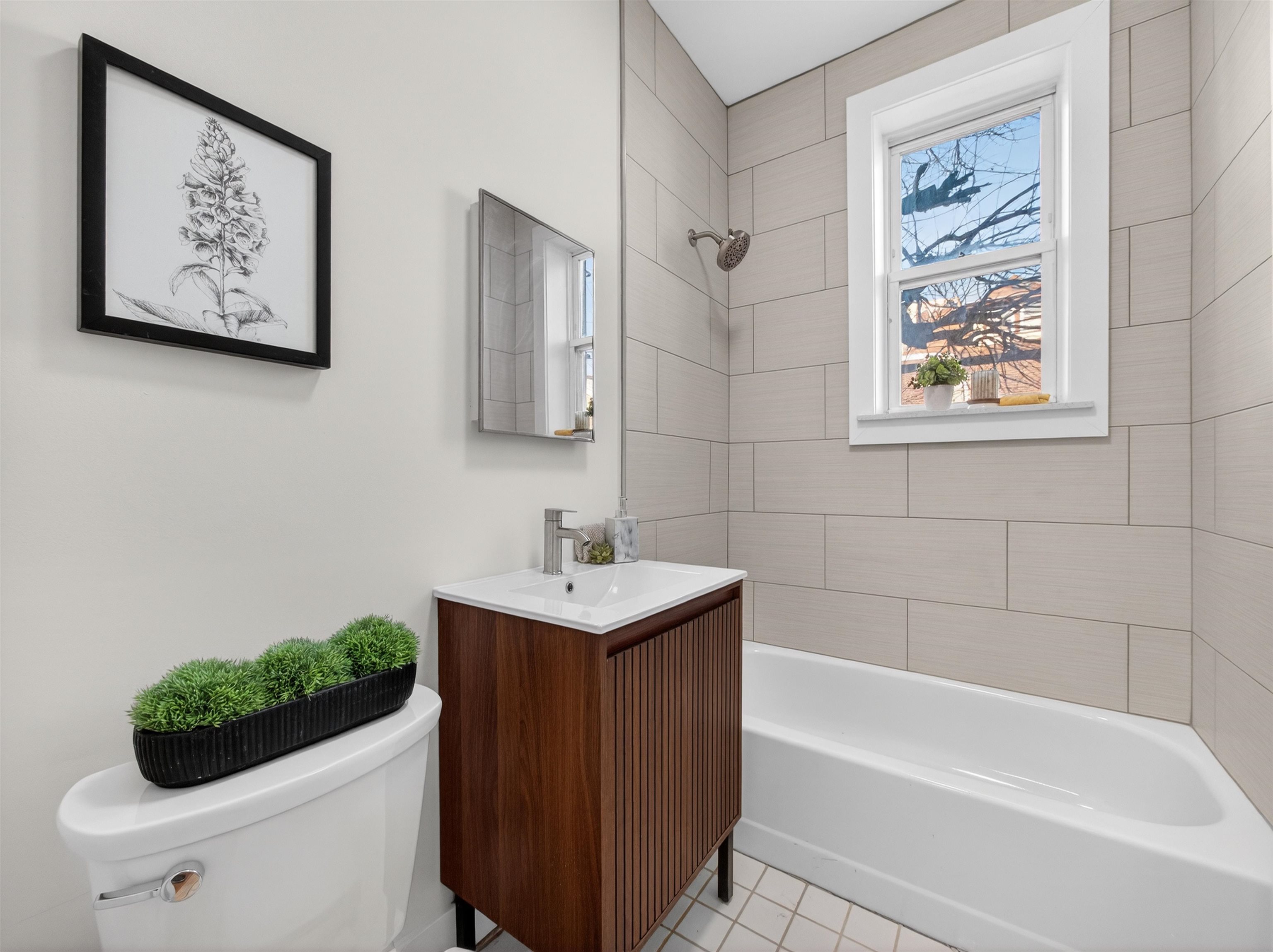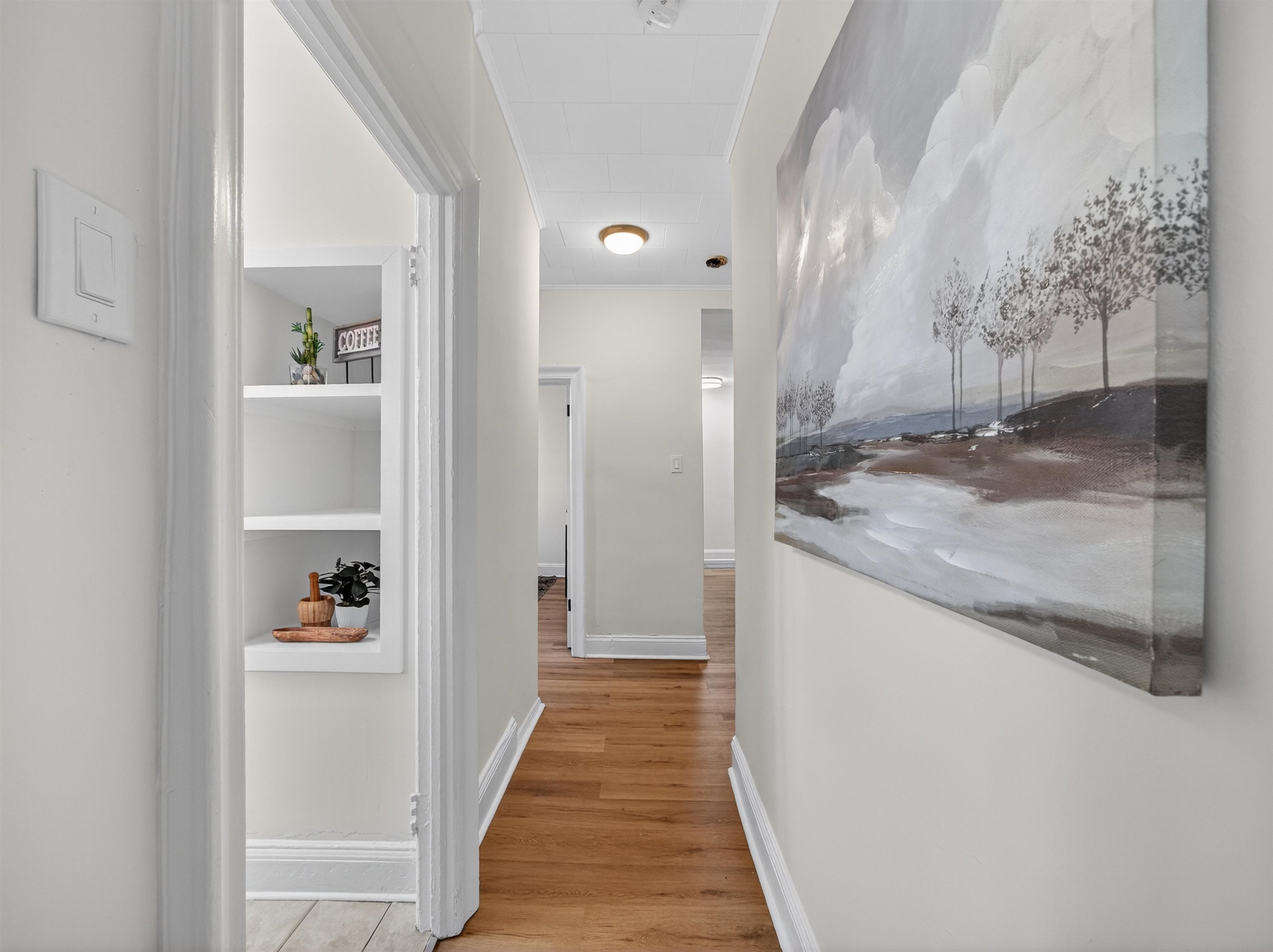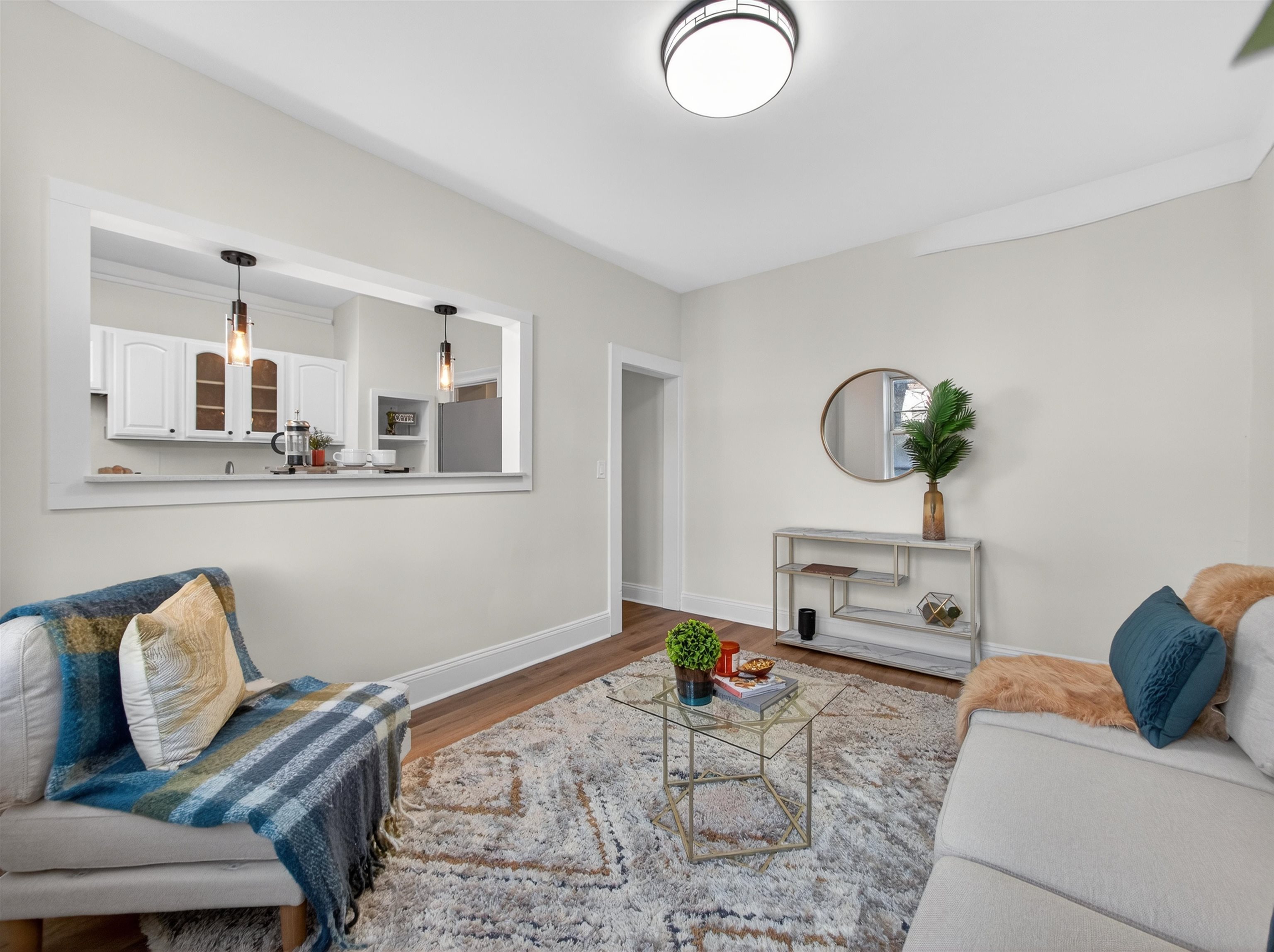 Incredible location, newly renovated unit, fantastic building with low HOAs – what more could you want? Welcome to your new home! This unit has been completely renovated with all new everything! Your bright and spacious living room features high ceilings, new LED light fixture, and a beautifully done pass-through to the kitchen for an open-concept feel. The kitchen has all new stainless steel appliances, new quartz countertops, and the pass-through doubles as a bar-height eating area with pendant lighting. Brand new flooring runs throughout the unit and into your generously-sized bedroom with large windows, new remote-controlled ceiling fan, and closet. The bathroom has also been renovated, featuring a new toilet, vanity, retiled shower, and a new window surround with quartz matching the kitchen countertops. Down the hallway you’ll find two closets for storage and a welcoming entryway with new, bright, LED lighting. The immaculately maintained building boasts a laundry room and storage area in the basement, bike rack in the coutyard, on-site super, and adorable park with playground directly next door. Plus the views of the NYC skyline just outside are absolutely stunning. The Bus stop, mere steps from the front door, is served by NJ Transit routes 23, 84, 89, 128, 165, 166, and 168. All this is just a short walk from the James J. Braddock North Hudson County Park. This condo has it all! Stop paying rent and call today about this phenomenal opportunity!