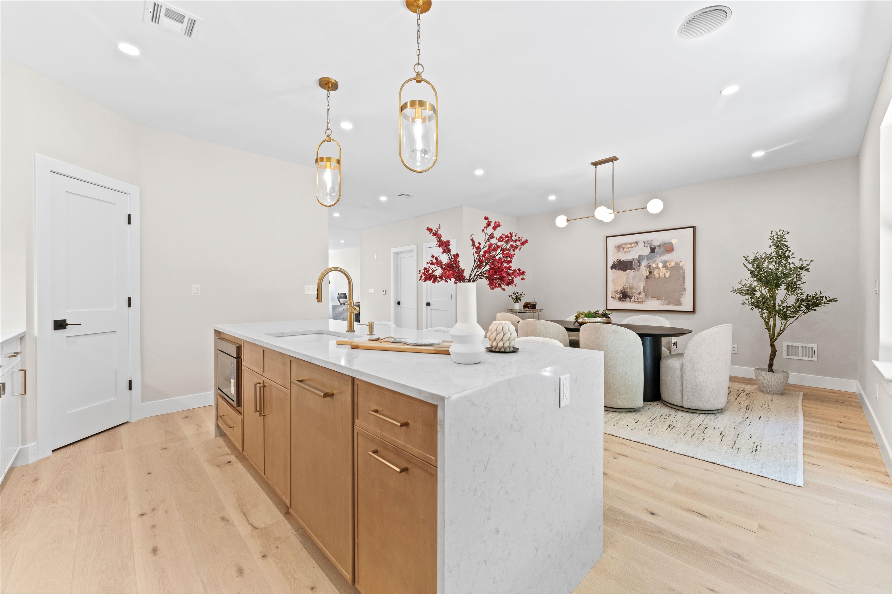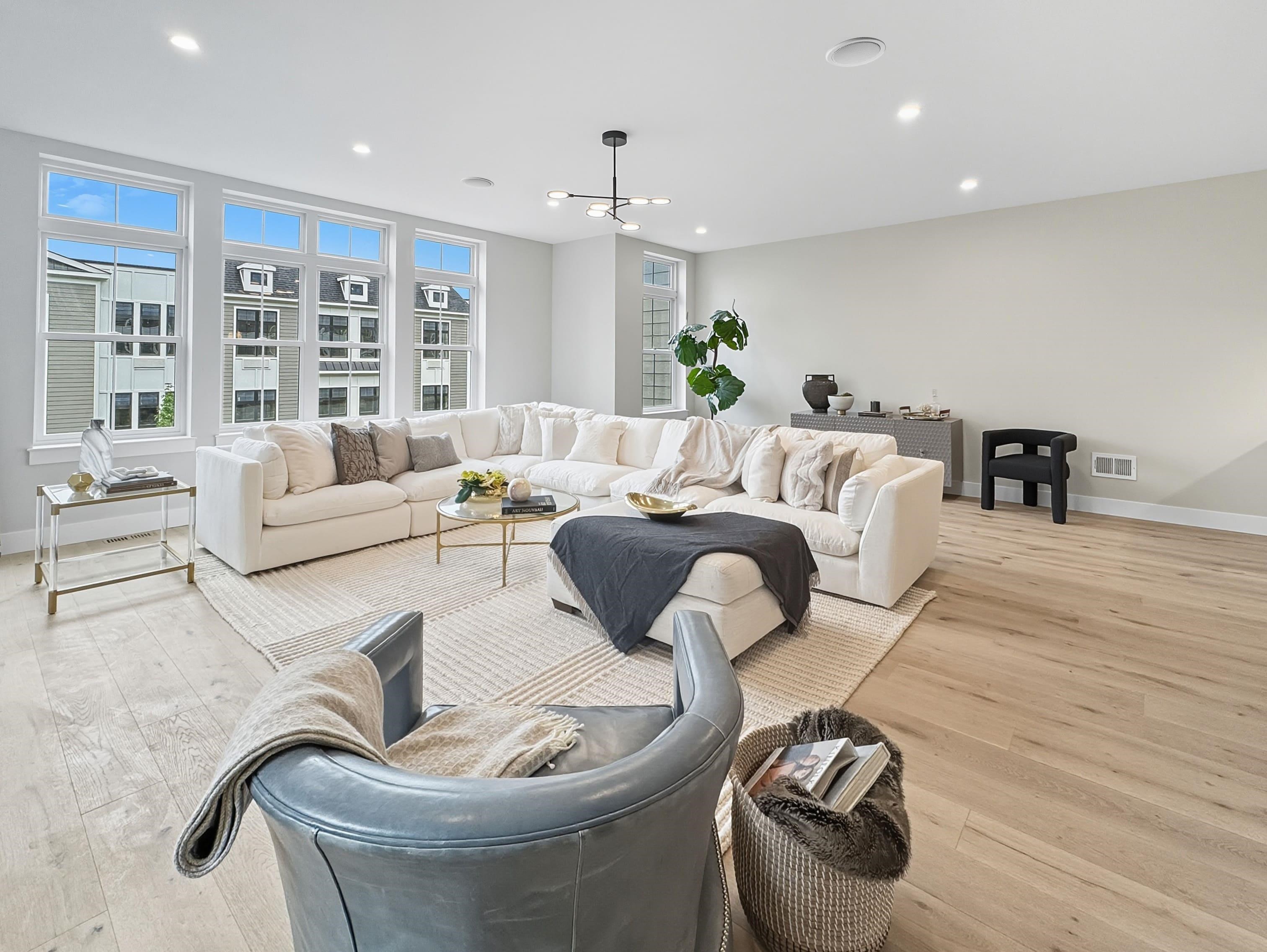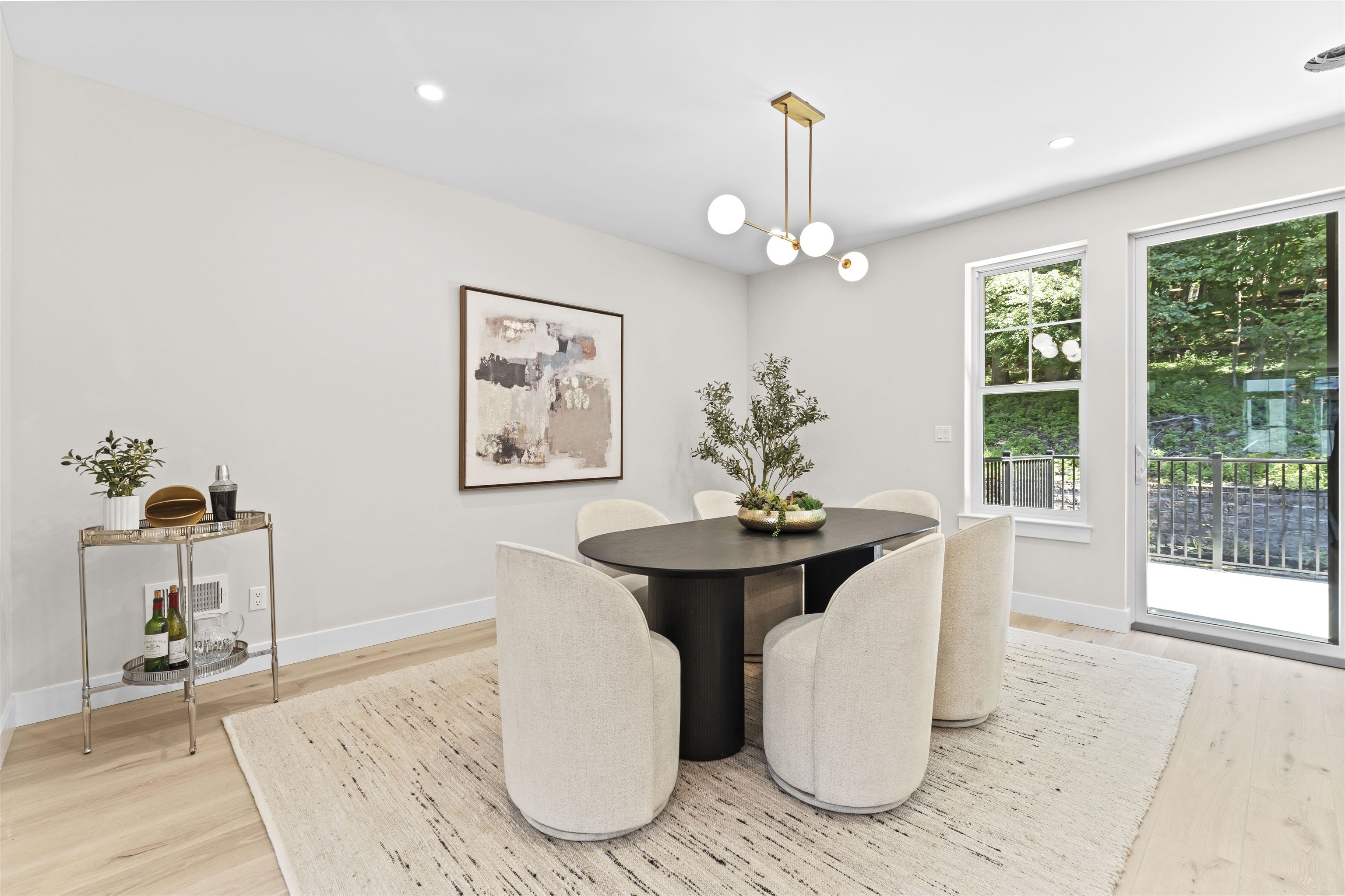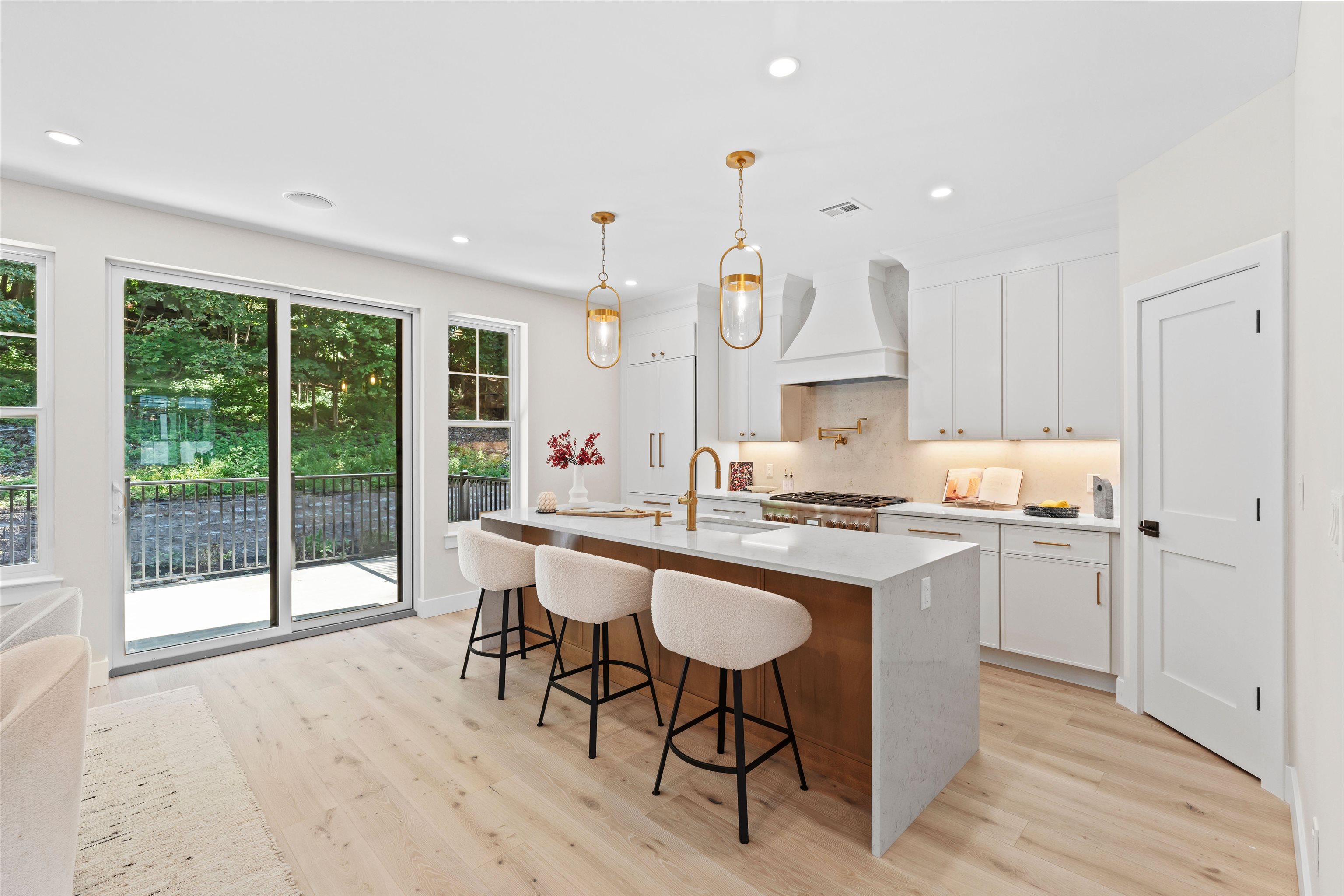 A rare 5 year tax abatement offers approximately $75,000 in savings. Buyers do not pay full taxes for the first five years, making Lexington on Broadway an exceptional opportunity. With only 9 residences in this boutique townhome community, ownership here is in high demand. The newly furnished model is now open, showcasing refined design, modern comfort, and easy living. Reduced HOA fees add long term value. All homes feature high end finishes including Thermador appliances, wide plank oak floors, and designer details throughout. This end unit townhome offers a private elevator to all levels, attached 2 car garage, 3 bedrooms, 2 full and 2 half baths, and abundant storage. Ground level has a recreation room and half bath with access to a covered patio. Main level includes a spacious living room with a gas fireplace and wet bar, dining room, powder room, and chef’s kitchen with waterfall quartz island and premium appliances opening to a private deck. Upstairs, the primary suite offers two walk in closets and a spa bath with soaking tub and oversized shower. Two additional bedrooms, a full bath, and laundry complete this level. Backing to a wooded area, the community offers rare privacy and seclusion. Ideally located across from the commuter train and in a top school district, Lexington on Broadway delivers privacy, low maintenance living, and timeless appeal.