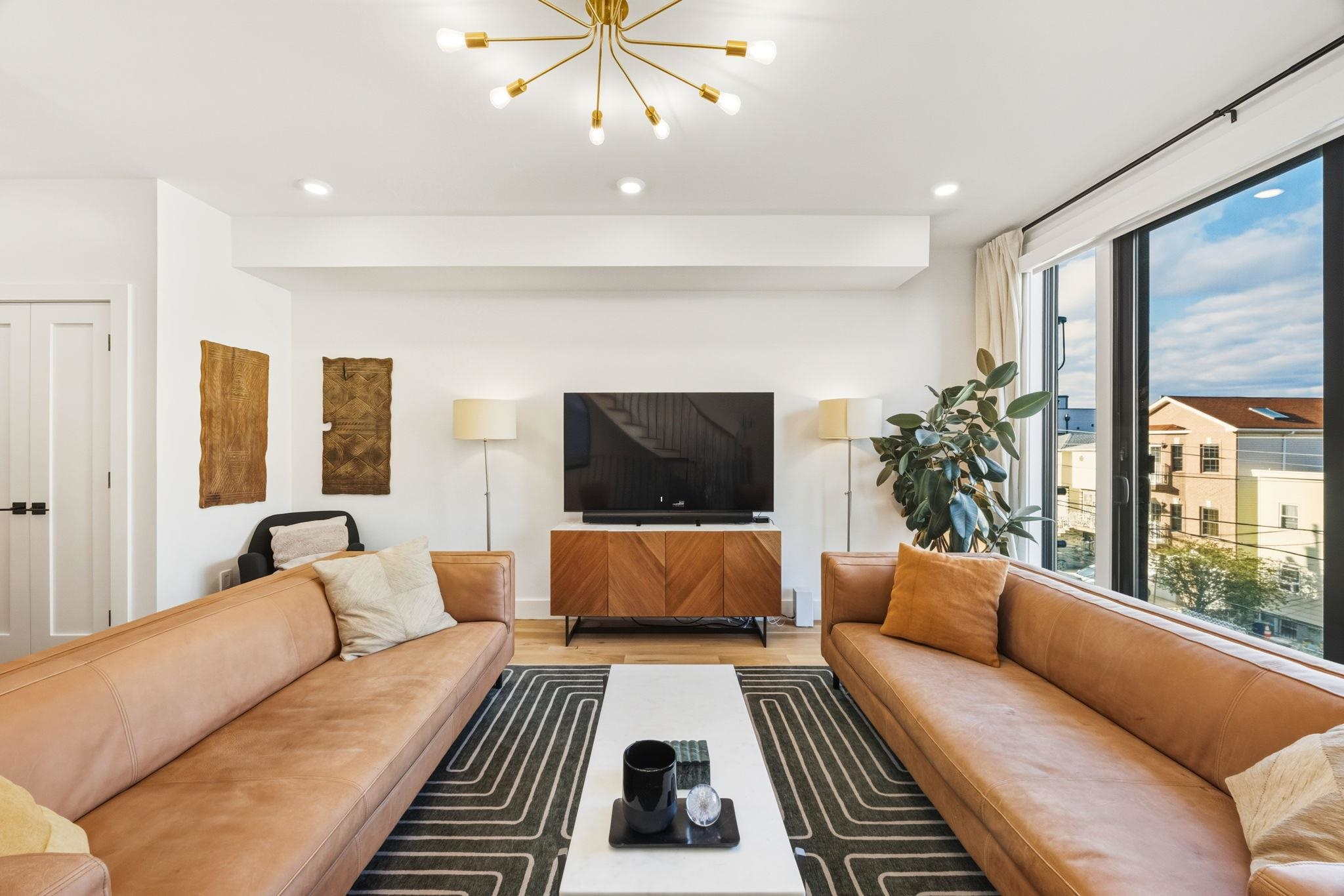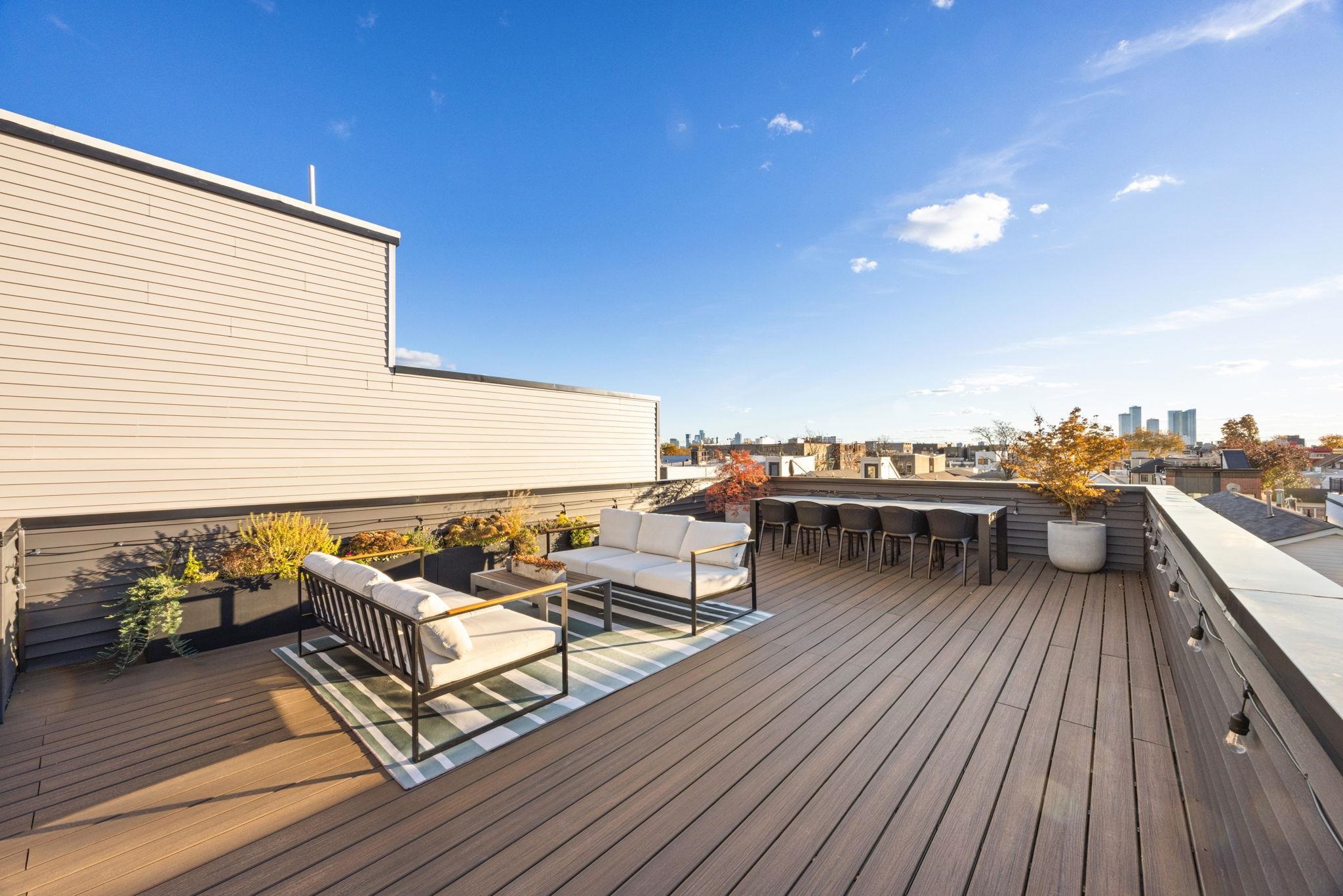 19 Leonard Street — A Turnkey Luxury Investment in Jersey City Heights Introducing 19 Leonard Street, an exceptional opportunity for investors and end-users seeking luxury, income, and long-term value in one of Jersey City’s most desirable areas. This beautifully restored, designer-finished two-residence property offers the perfect combination of high returns, low maintenance, and magazine-worthy interiors crafted with care by one of the Heights’ most trusted developers. Residence One– Which is amazing income producing unit Spanning 1,546 sq ft, this four-bedroom duplex (3 bedrooms + den) offers an open, sun-filled layout anchored by lush white-oak flooring and oversized bay windows that bathe the space in natural light. The chef’s kitchen is a showpiece, with sleek quartz countertops, an 8-foot island with statement lighting, custom cabinetry, and a Samsung appliance suite. Toward the rear, discover a stylish full bathroom, a spacious bedroom with a walk-in closet, and a flexible bonus room that opens through sliding doors to a covered Trex-deck patio and an expansive, landscaped private backyard, perfect for entertaining or a quiet evening under the stars. Upstairs, two additional ensuite bedrooms await, including a serene primary suite with double vanity sinks and generous closets. Residence Two. At 1,637 sq ft, this three-bedroom duplex is equally impressive. Its light-filled layout flows seamlessly from the open living area into a designer kitchen with quartz countertops, a peninsula breakfast bar, and a Samsung appliance package. On the second level, a massive bonus lounge creates the perfect media or family space, while the primary suite — complete with a travertine-porcelain bathroom — exudes boutique-hotel elegance. And for those who love to entertain, a private rooftop terrace of 1,000+ sq ft with Trex decking offers panoramic views — the ultimate spot for sunset cocktails or weekend gatherings. Situated steps from Washington Park, minutes to the Hoboken Light Rail, and surrounded by the restaurants, cafés, and energy of Central and Palisade Avenues, this address offers exceptional convenience and lifestyle appeal for tenants and owners alike. This is more than a beautifully designed home — it’s a strategic investment asset in a neighborhood experiencing continuous growth.