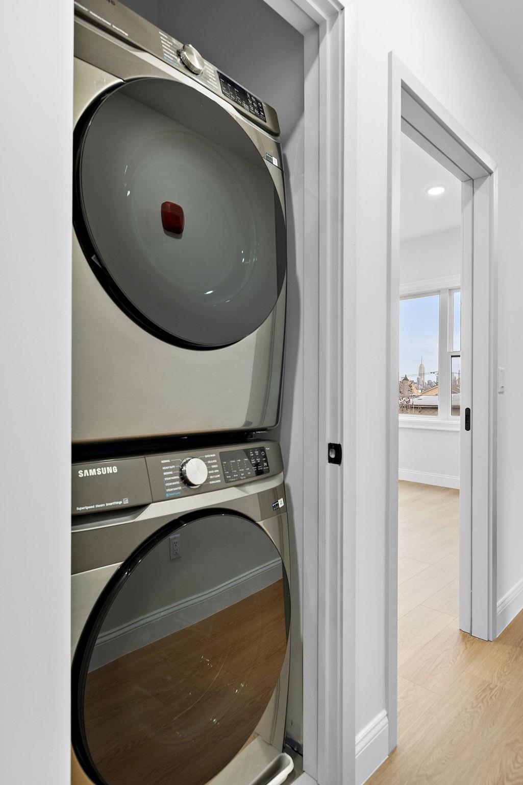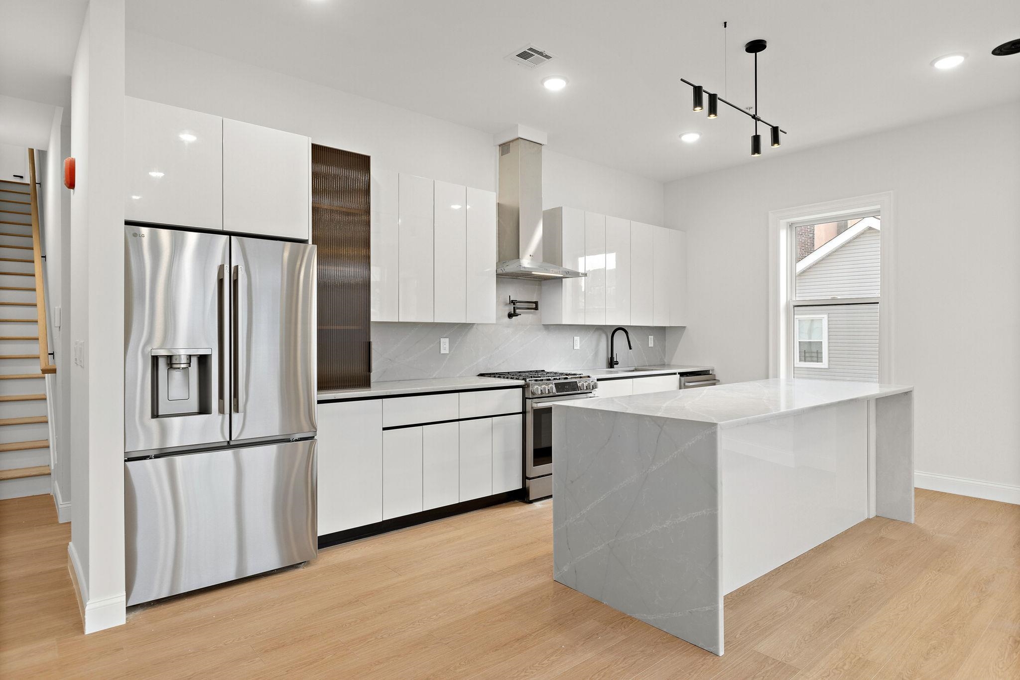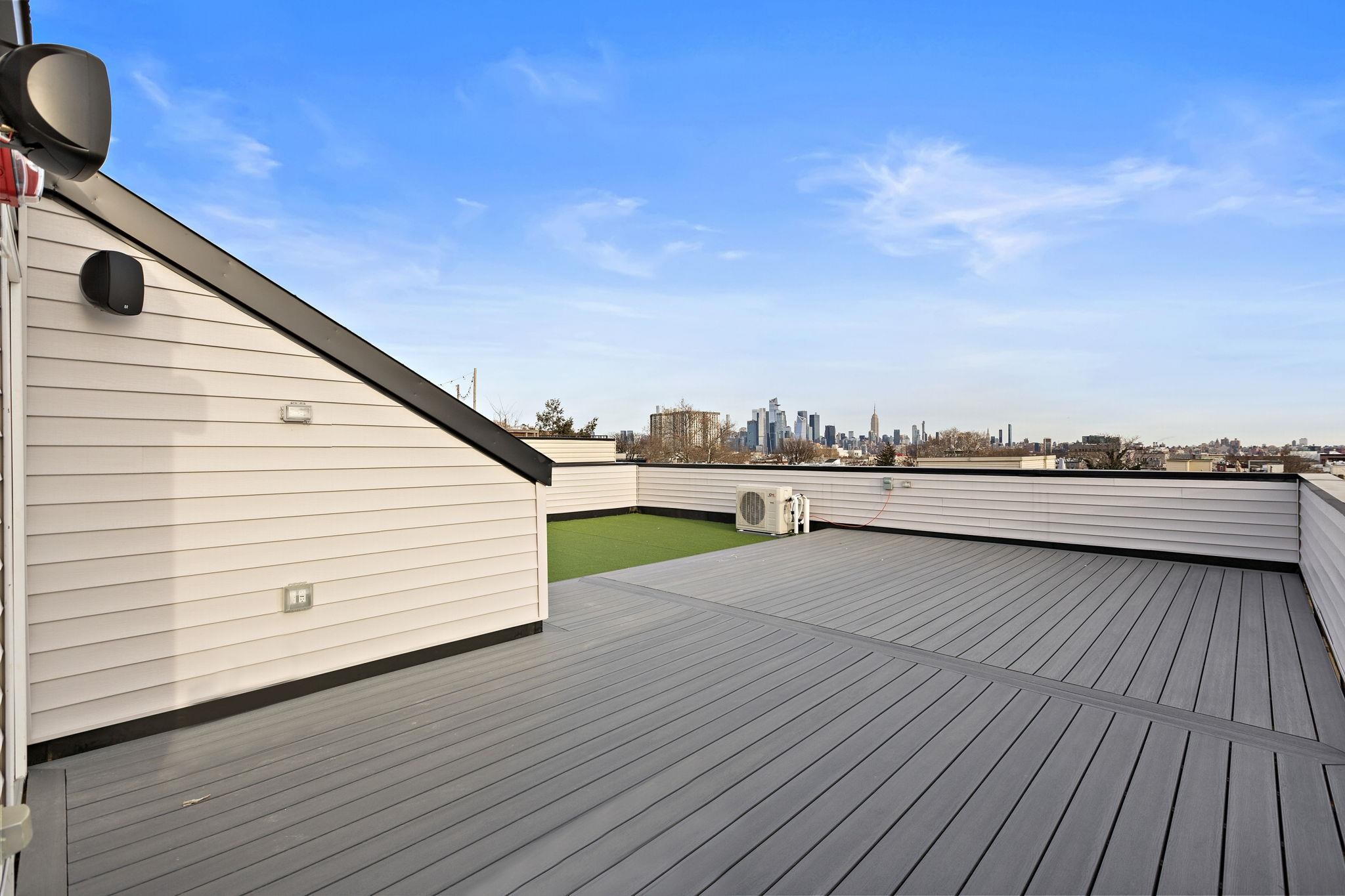 Five new-construction condominium homes redefine modern living in Jersey City Heights. Each home showcases a refined aesthetic and carefully curated details. Chef-inspired kitchens feature expansive Taj Mahal quartz islands, premium LG stainless appliances with gas range, a Frigidaire wine cooler, and Sharp built-in microwave. Primary baths offer a spa-like escape with porcelain and ceramic tiles, frameless glass showers, brushed gold hardware, Kohler fixtures, and natural teak vanities, while secondary baths boast sleek subway tiles, matte black channels, Moen fixtures, and LED mirrors. Wide-plank French oak flooring, soaring ceilings, custom lighting, and built-in electric fireplaces bring warmth and style throughout, creating homes that balance modern sophistication with everyday comfort. 192 Cambridge sits in prime location only one block to Washington Park and a few short blocks to The Arts District surrounding Riverview Park. Enjoy neighborhood cafés, Central Avenue shops, and vibrant restaurants, with the Congress Street Light Rail a short walk away, you’ll enjoy effortless access to Hoboken and Manhattan while keeping the Heights’ neighborhood charm at your doorstep. This home includes NYC views from unit and back half of rooftop with wet bar and direct sweeping NYC views. 1 garage parking space included with EV charging station. Ask about packaging this with unit 5 ADU in rear!