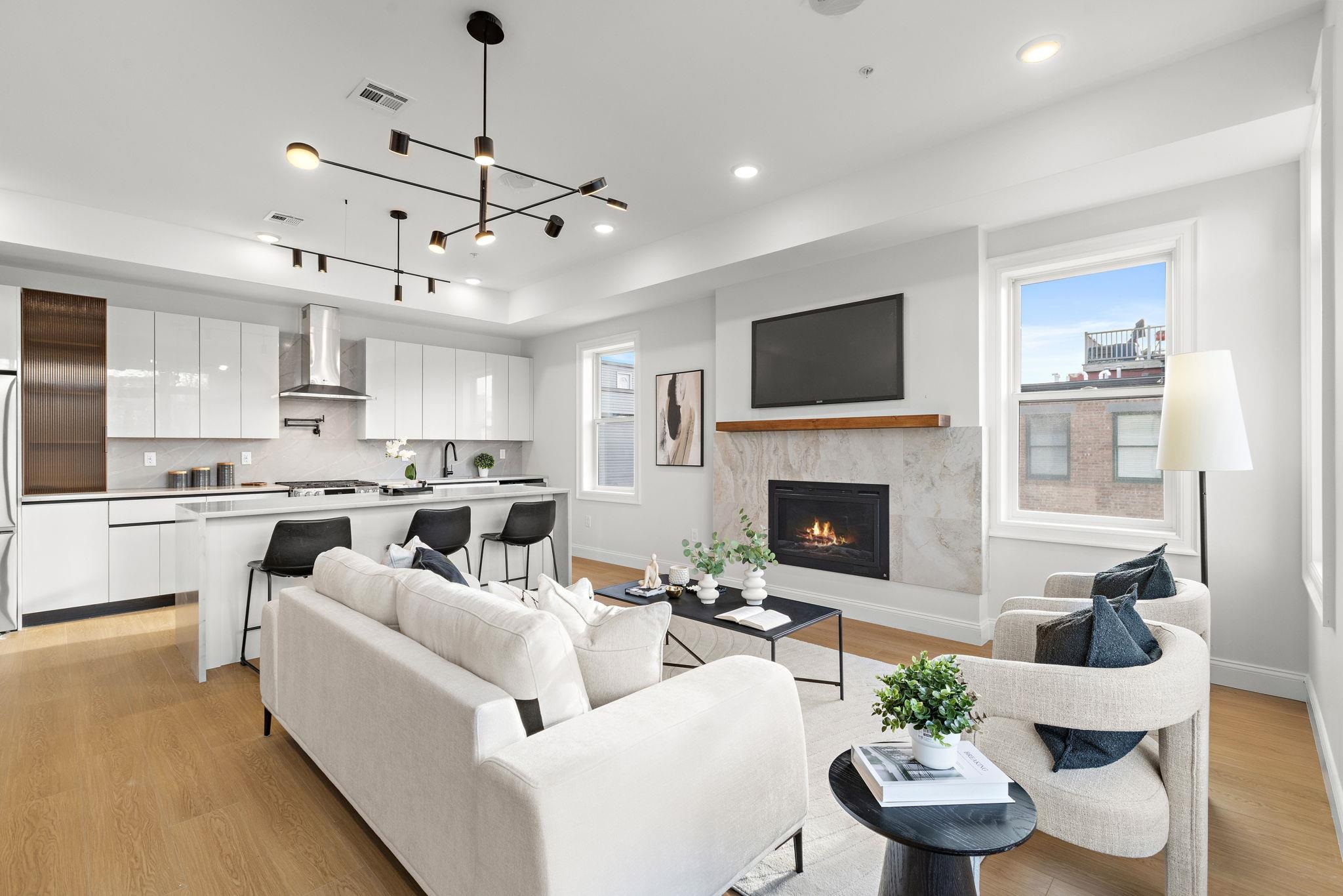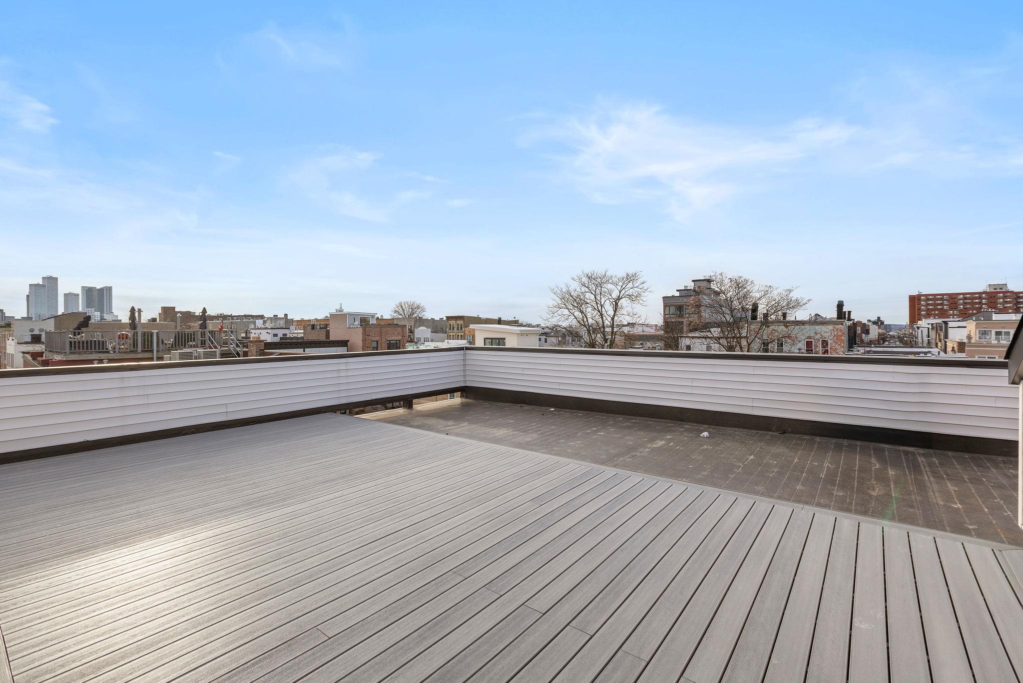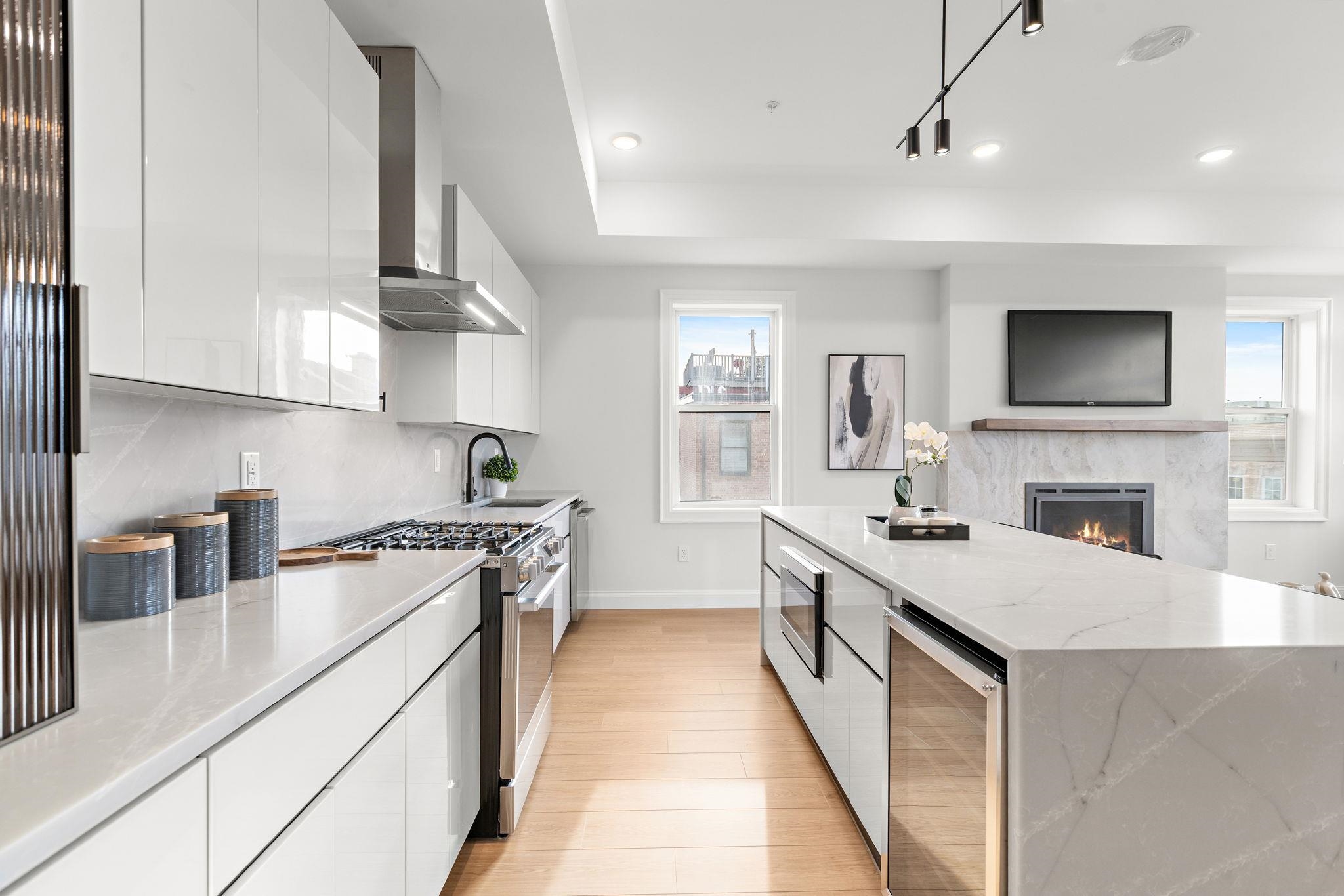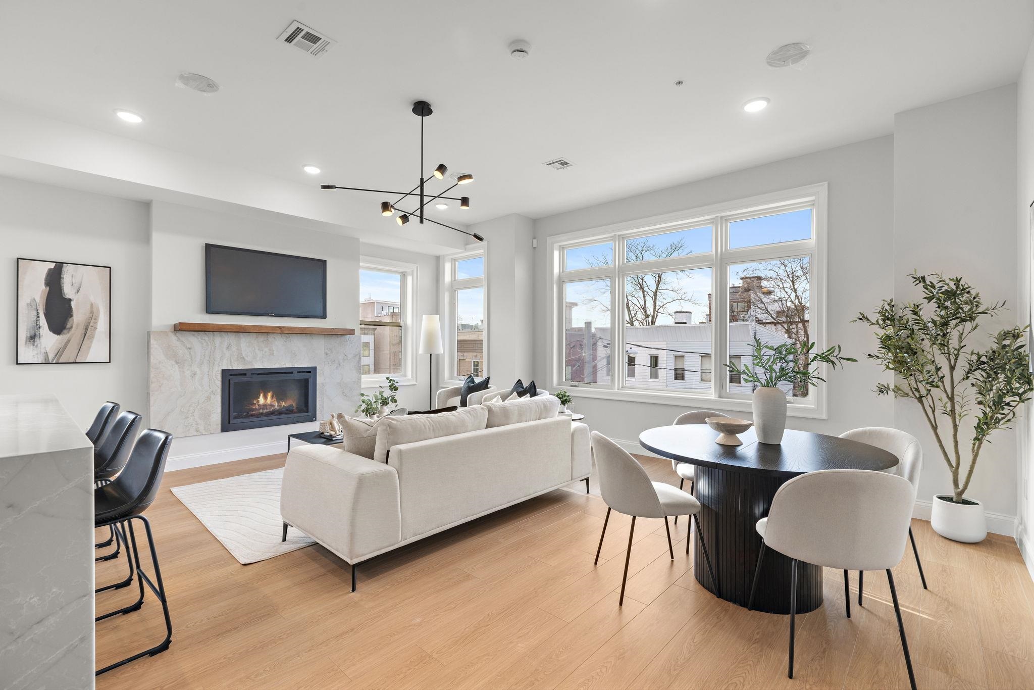 Five new-construction condominium homes redefine modern living in Jersey City Heights. Each home showcases a refined aesthetic and carefully curated details. Chef-inspired kitchens feature expansive Taj Mahal quartz islands, premium LG stainless appliances with gas range, a Frigidaire wine cooler, and Sharp built-in microwave. Primary baths offer a spa-like escape with porcelain and ceramic tiles, frameless glass showers, brushed gold hardware, Kohler fixtures, and natural teak vanities, while secondary baths boast sleek subway tiles, matte black channels, Moen fixtures, and LED mirrors. Wide-plank French oak flooring, soaring ceilings, custom lighting, and built-in electric fireplaces bring warmth and style throughout, creating homes that balance modern sophistication with everyday comfort. 192 Cambridge sits in prime location only one block to Washington Park and a few short blocks to The Arts District surrounding Riverview Park. Enjoy neighborhood cafés, Central Avenue shops, and vibrant restaurants, with the Congress Street Light Rail a short walk away, you’ll enjoy effortless access to Hoboken and Manhattan while keeping the Heights’ neighborhood charm at your doorstep. This home includes the front half of private rooftop with wet bar. 1 garage parking space included with EV charging station. Ask about packaging this with unit 5 ADU in rear!