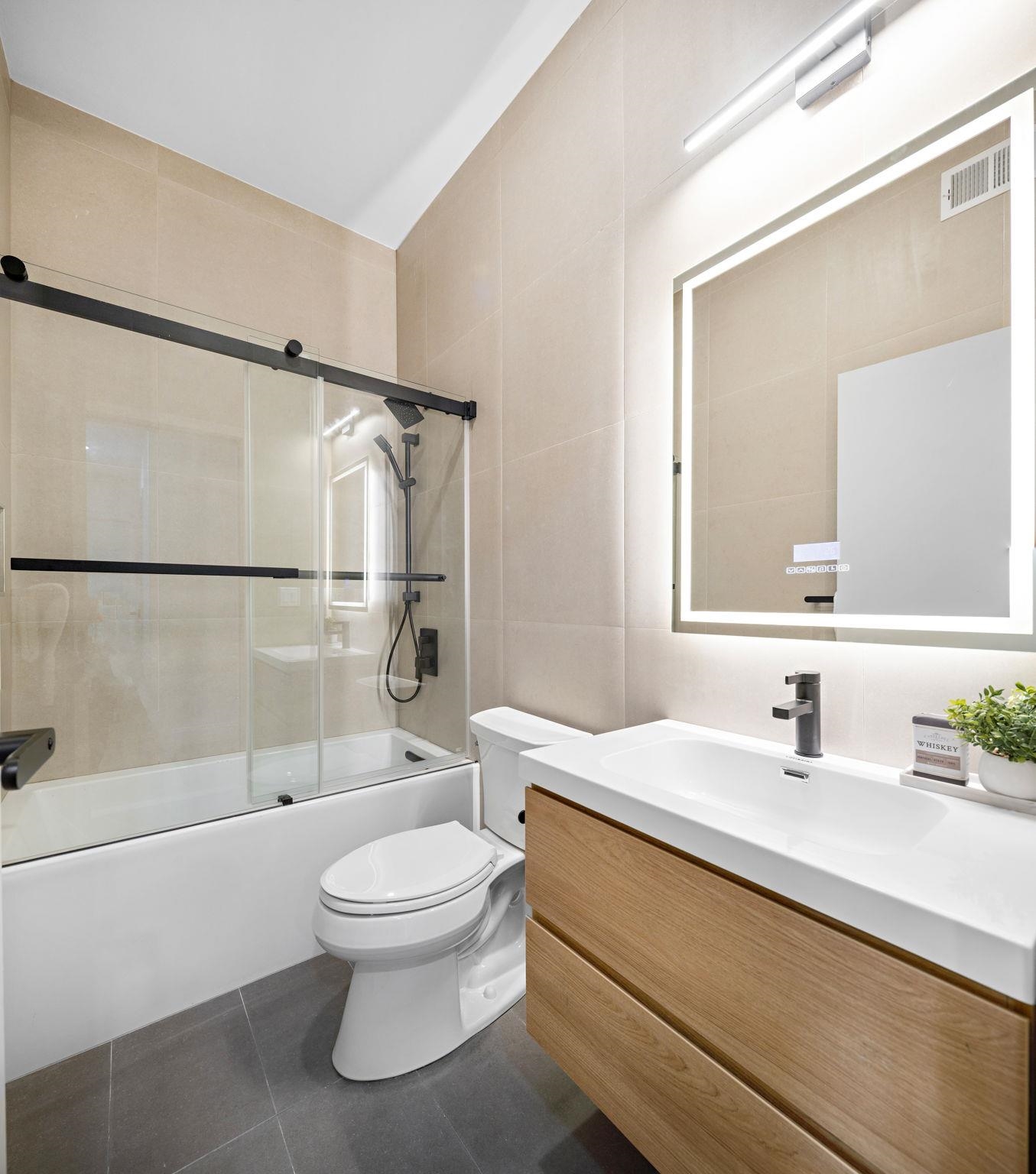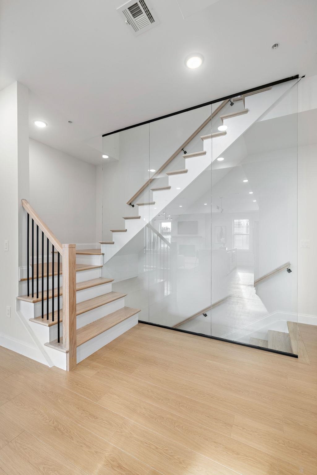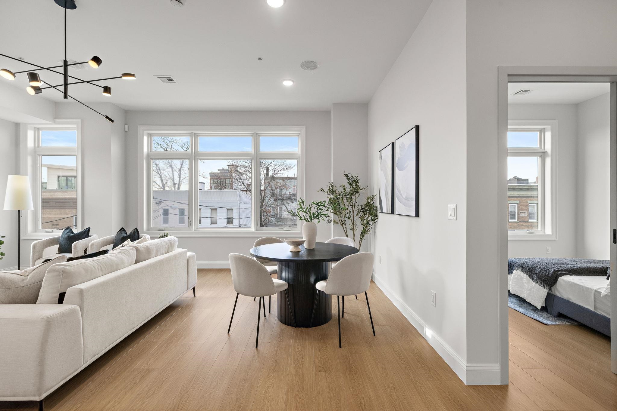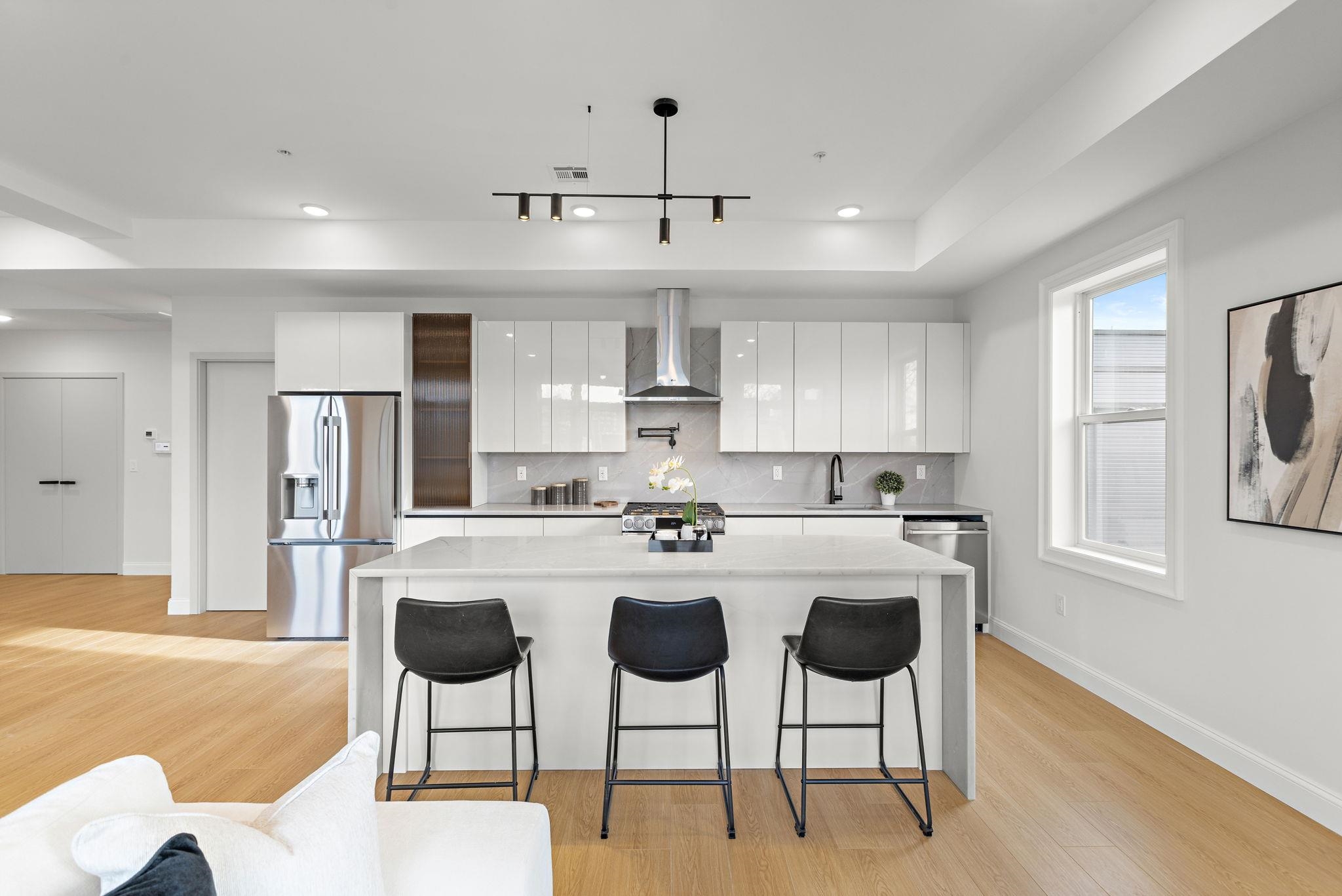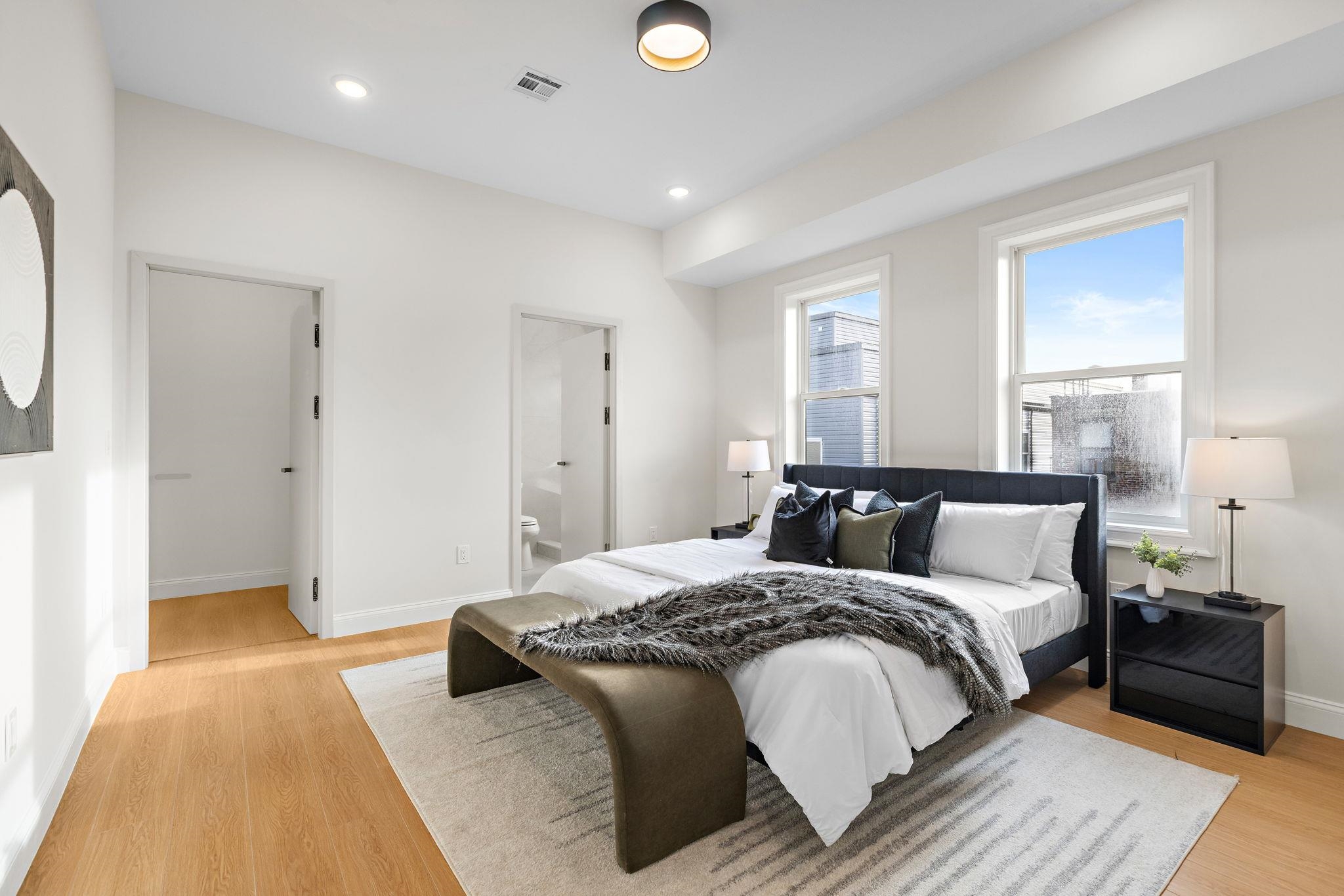 Five new-construction condominium homes redefine modern living in Jersey City Heights. Each home showcases a refined aesthetic and carefully curated details. Chef-inspired kitchens feature expansive Taj Mahal quartz islands, premium LG stainless appliances with gas range, a Frigidaire wine cooler, and Sharp built-in microwave. Primary baths offer a spa-like escape with porcelain and ceramic tiles, frameless glass showers, brushed gold hardware, Kohler fixtures, and natural teak vanities, while secondary baths boast sleek subway tiles, matte black channels, Moen fixtures, and LED mirrors. Wide-plank French oak flooring, soaring ceilings, custom lighting, and built-in electric fireplaces bring warmth and style throughout, creating homes that balance modern sophistication with everyday comfort. 192 Cambridge sits in prime location only one block to Washington Park and a few short blocks to The Arts District surrounding Riverview Park. Enjoy neighborhood cafés, Central Avenue shops, and vibrant restaurants, with the Congress Street Light Rail a short walk away, you’ll enjoy effortless access to Hoboken and Manhattan while keeping the Heights’ neighborhood charm at your doorstep. This home includes the front half of private rooftop with wet bar. 1 garage parking space included with EV charging station. Ask about packaging this with unit 5 ADU in rear!