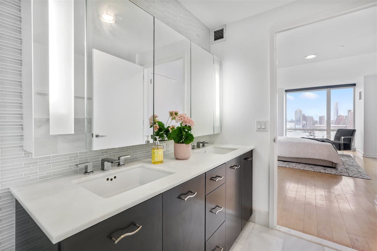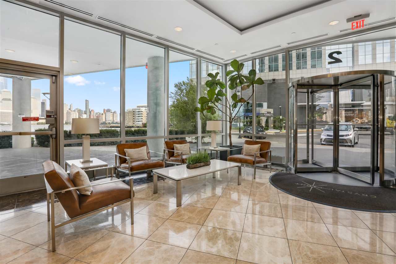 Jaw-dropping views! Welcome yourself to this amazing home, perched high above the city, on the 28th floor of the luxurious Crystal Point complex. Every inch of this home has been thoughtfully crafted to satisfy even the most discerning buyers. Experience the wonders of being located directly on the Hudson River waterfront, in this lavish home with floor to ceiling windows providing breathtaking views of NYC from every room. Sit inside and look out to the river, Downtown or Midtown Manhattan; or spend some outdoor time on your private terrace while marveling at the spectacular city. This unit features ultra sleek Kitchen with Pedini cabinets, glass accents, quartz countertops, tiled backsplash, breakfast bar and stainless steel appliances. The master bathroom features marble finishes throughout, double sink, ample storage and separate tub & shower.Additional features include gleaming hardwood floors, laundry closet & valet parking. Light Rail, PATH & ferry all in close proximity.Building features 24-hr concierge, pool, spa, fitness room, community room, outdoor deck with BBQ grills, kids play area & much more! *** PHOTOS ARE OF SIMILAR UNIT**