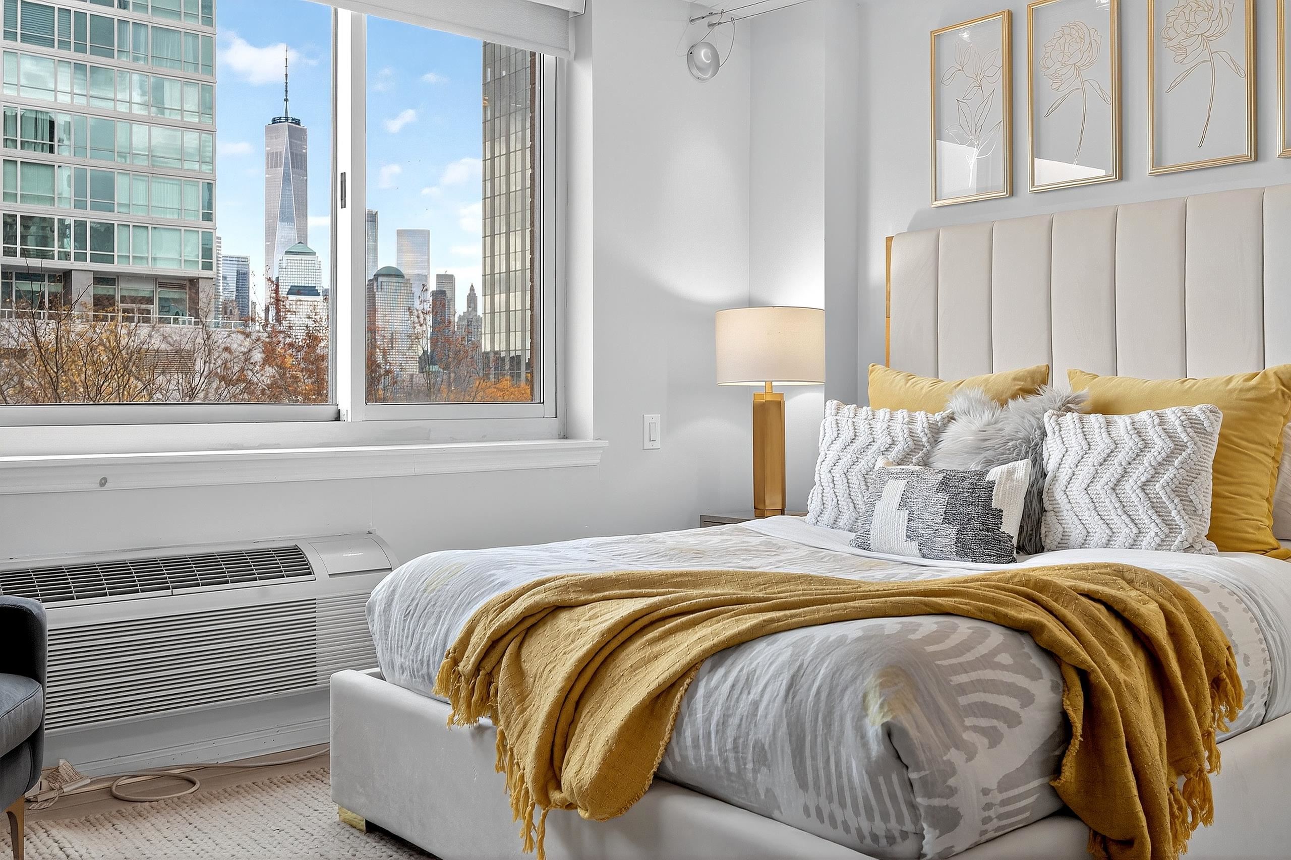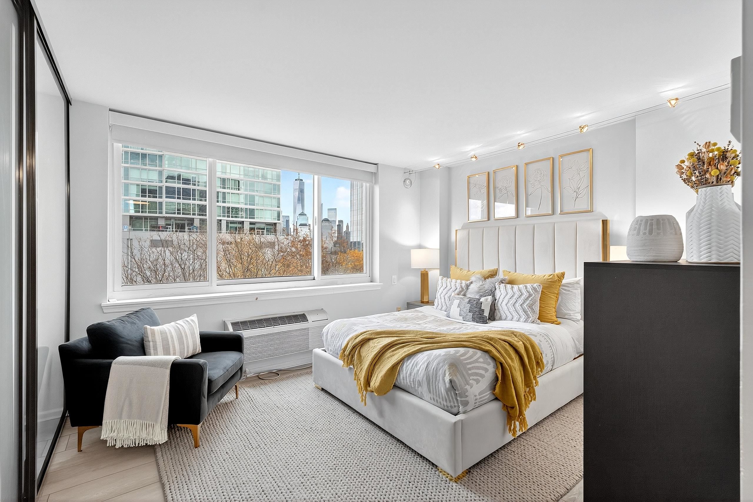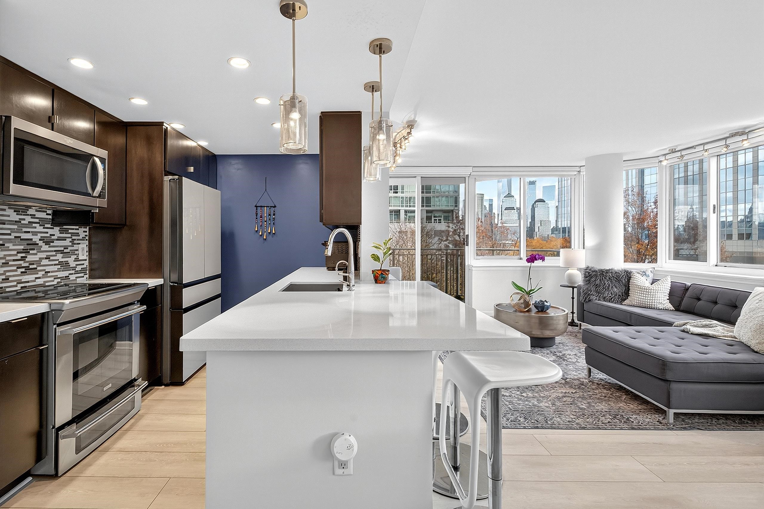 Sophisticated living on the waterfront with this renovated & expansive 3 bedroom, 2 bathroom condo in Mandalay on the Hudson, one of Jersey City’s premier waterfront buildings. The coveted 09 line, with its picturesque glass windows and prime south & east exposure, is flooded with sunlight all day long. This 1,456 sq. ft. luxurious home is well appointed will contemporary lighting, closet organizational systems, built in Murphy beds in one of the bedrooms & custom window treatments throughout the home. A key feature of the home is the open-concept kitchen with stainless appliances, a brand new Samsung Bespoke Refrigerator, quartz countertops, breakfast bar, contemporary finishes & water filtration system. The sleek and contemporary bathrooms embodies this home’s lavish aesthetic with large format porcelain tile, floating vanities, Glass shower enclosures and heated towel bar. A river-facing balcony, in-unit washer/dryer & deeded garage parking spot helps to complete a picture perfect home! Enjoy the resort-like amenities at The Mandalay, including fitness center, BBQ area, private park, children’s playground, and the largest outdoor pool in Jersey City. All of this and only minutes walk to the lightrail, Exchange Place & Newport PATH, and the Harborside ferry makes for a quick and easy commute to the city. Renderings are of new lobby under construction.